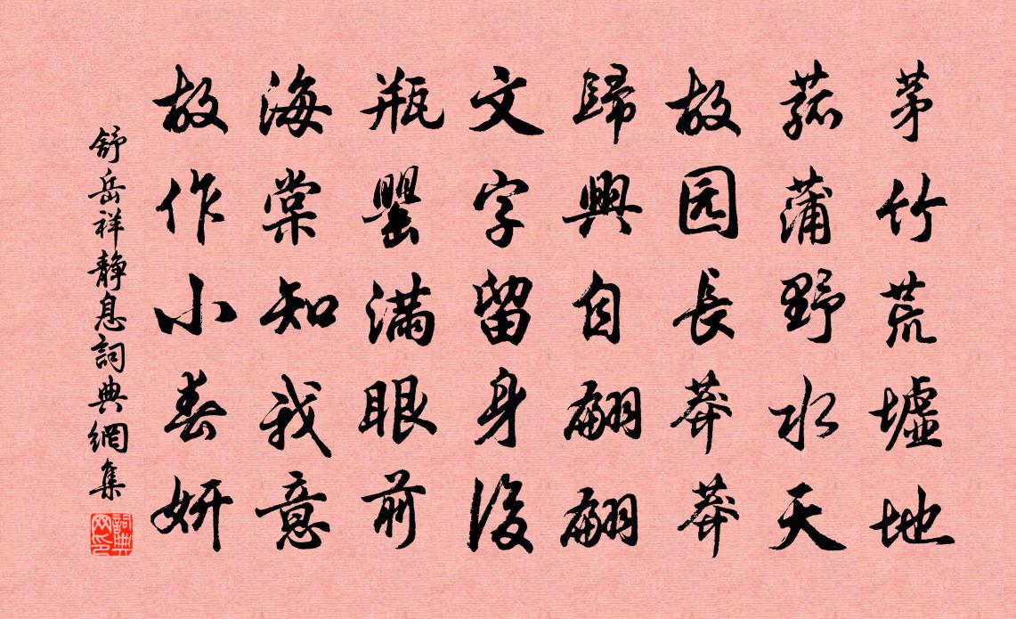 詩詞名句歷史字典書法欣賞書法字典國語詞典說文解字康熙字典古漢語字典標 題 作 者 詩 句 靜息作者:舒岳祥 朝代:宋代靜息原文茅竹荒墟地,菰蒲野水天。故園長莽莽,歸興自翩翩。文字留身後,瓶罌滿眼前。海棠知我意,故作小春妍。詩詞問答問:靜息的作者是誰?答:舒岳祥問:靜息寫於哪個朝代?答:宋代舒岳祥靜息書法欣賞靜息書法作品詩詞推薦摸魚兒蘇泂〔宋代〕望關河、試窮遙眼,新愁似絲千縷。劉郎豪氣今何在,應是九疑三楚。堪恨處。便拚得、一生寂寞長羈旅。無人寄齊天樂 壽王伯起張伯淳〔元代〕庭柯一葉炎曦淡,秋光宦情相似。駟馬爭馳,千帆竟送,不羨紛紛時輩。隨緣賦祿,慶官府清明,紀綱興起。暇日和毗陵尉曹昭用見寄李中〔唐代〕決獄多餘暇,冥搜萬象空。捲簾疏雨後,鎖印夕陽中。還往多名士,編題尚古風。宦途知此味,能有幾人同。出行湖山間雜賦陸游〔宋代〕老入新年健,春逢小雨晴。偶因尋酒去,又作繞村行。塘水蒼鵝戲,郊原黃犢鳴。閒身有樂事,倚杖看農耕。題彭傳師無喧境壁陳造〔宋代〕塵外軒窗寓嘯吟,勝游重到更情深。湖山覿面渾相識,蜂蝶窺簾似見尋。客路每歌歸緩緩,歲華亦嘆去駸駸。摩挱居厚弟示和詩複課十首劉克莊〔宋代〕野處經時懶入關,放教野蔓向窗蟠。豈無求仲住領曲,僅有惠連來夢間。架上書聊揩老眼,墓誓已白慈顏。山靈未踏莎行(盧仝啜茶手卷)張炎〔宋代〕清氣崖深,斜陽木末。松風泉水聲相答。光浮碗面啜先春,何須美酒吳姬壓。頭上烏巾,鬢邊白髮。數間破屋從蕪擬詠懷詩 二三庾信〔南北朝〕鬬麟能食日。戰水定驚龍。鼓鞞喧七萃。風塵亂九重。鼎湖去無返。蒼梧悲不從。徒勞銅雀妓。遙望西陵松。天香慢 梅長筌子〔元代〕萬木歸根,三冬拔翠,曉來梅萼輕坼。妒雪精神,清人氣焰,不許等閒攀摘。百花未發,獨占得東君春色。庚嶺斜送無灰酒周馬師口占三絕劉宰〔宋代〕奉寄無灰酒十罌,不杯入藥可長生。藥成預約分酬我,眉壽相期比老彭。為人題鄭谷〔唐代〕淚濕孤鸞曉鏡昏,近來方解惜青春。杏花楊柳年年好,不忍回看舊寫真。留題靈岩趙邦美〔宋代〕披雲佳看對青山,何必登高縱遠觀。岩谷幽深無限景,可憐多是等閒看。句李燾〔宋代〕瓦堂如案平,金仙閟光景。司法曾子美新第榮歸欲得余詩不敢效世俗諛語李昴英〔宋代〕舌似河懸筆水翻,春官首疏見風肝。士須卓爾名當世,好取前修節行看。為鄞僧題四明窗釋文珦〔宋代〕郡名元自山名得,石似疎欞四面同。每恨世人游不到,羨君身在此山中。生查子趙彥端〔宋代〕翻翻別袖風,醉眼迷殘日。春色盪人魂,楊柳渾無力。不知長短亭,何處逢寒食。多少向來情,門掩梨花夕。華亭吳江道中偶作十絕朱長文〔唐代〕妖華傾國豈無情,忍復顰眉見越兵。若使將軍猶好色,安能三徙更成名。朱桵梅堯臣〔宋代〕明珠摘木末,紅露貯金盤。始見侍臣賜,已為黃雀殘。味兼羊酪美,食厭楚梅酸。苑囿東周盛,累累映葉丹。秋夜苦吟杜荀鶴〔唐代〕吟盡三更未著題,竹風松雨花淒淒。此時若有人來聽,始覺巴猿不解啼。伏中作二首孔武仲〔宋代〕去歲復今日,清槐系扁舟。手攜筇竹杖,朝上龜山頭。百川合為一,浩渺蟠天流。徙倚弄佳音,嘯歌懷舊邱。京都名句推薦啼鶯舞燕,小橋流水飛紅。白樸《天淨沙·春》 未信此情難系絆,楊花猶有東風管。蘇軾《蝶戀花·蝶懶鶯慵春過半》 妙年出補父兄處,公自才力應時須黃庭堅《送范德孺知慶州》 相見易得好,久住難為人。佚名《增廣賢文·上集》 凡學之道,嚴師為難。戴聖《禮記·學記》 來是春初,去是春將老。曾允元《點絳唇·一夜東風》 山致其高而雲雨起焉,水致其深而蛟龍生焉,君子致其道而德澤流焉。文子《文子·卷六·上德》 學不可以已。荀子《荀子·勸學》 牆頭馬上遙相顧,一見知君即斷腸。白居易《井底引銀瓶·止淫奔也》 人生一世,草長一春。佚名《增廣賢文·上集》