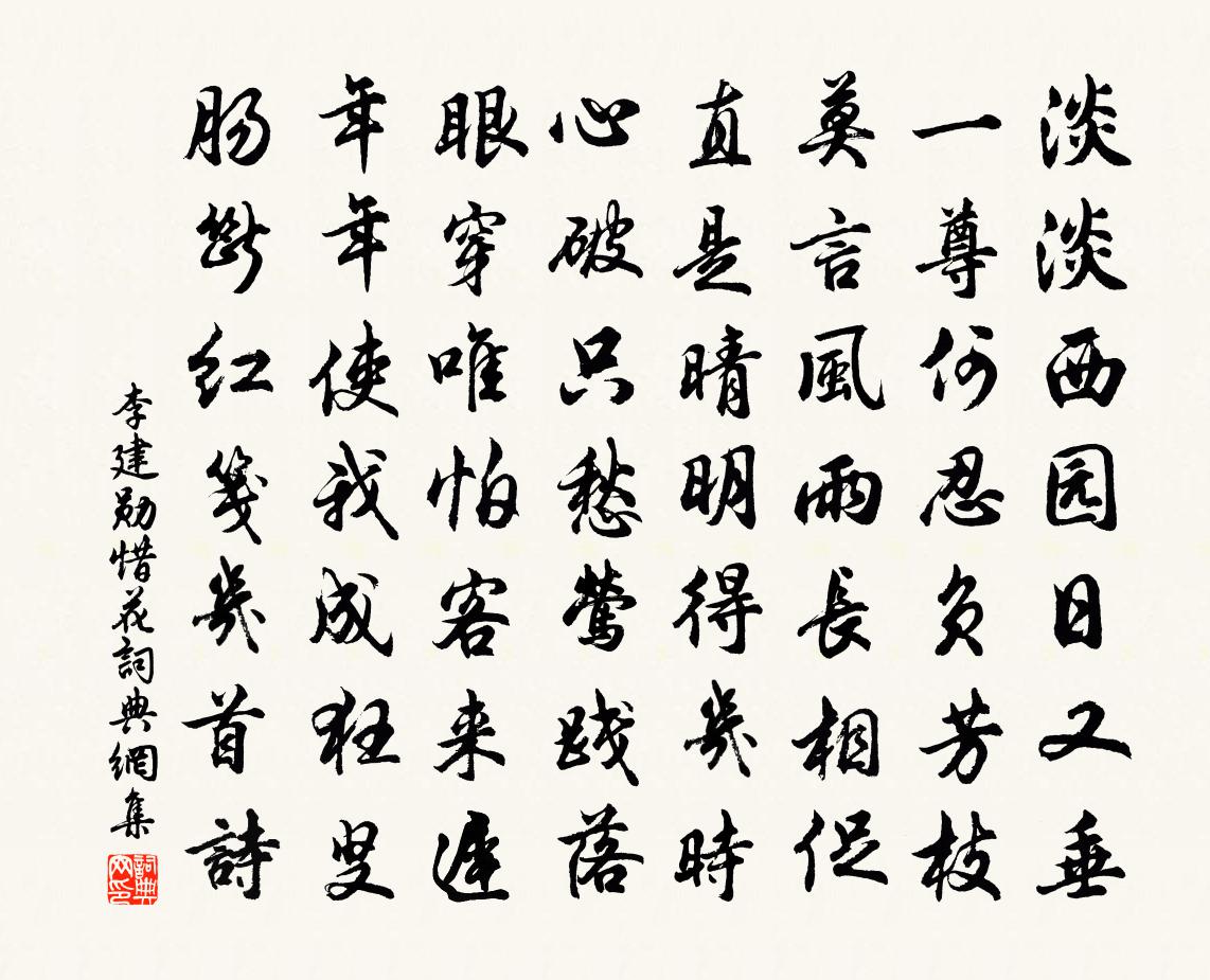 詩詞名句歷史字典書法欣賞書法字典國語詞典說文解字康熙字典古漢語字典標 題 作 者 詩 句 惜花作者:李建勛 朝代:唐代惜花原文淡淡西園日又垂,一尊何忍負芳枝。莫言風雨長相促,直是晴明得幾時。心破只愁鶯踐落,眼穿唯怕客來遲。年年使我成狂叟,腸斷紅箋幾首詩。詩詞問答問:惜花的作者是誰?答:李建勛問:惜花寫於哪個朝代?答:唐代李建勛惜花書法欣賞惜花書法作品注釋全唐詩:卷739-65詩詞推薦憶寧極韓維〔宋代〕雨滴庵上茅,風亂窗外竹。繁聲夜入耳,欲寐不得熟。獨懷歸田客,石徑滑馬足。連山暗秋霧,一燈何處宿。明堂觀禮雜詠十三首觀景靈宮恭謝王同祖〔宋代〕聖皇宗祀懷多福,恭回來看帶花。柷敔笙鏞齊合奏,舉頭更見日光華。偈頌二十一首釋智愚〔宋代〕年垂九十礙叢林,歷心風霜歲月深。妙蘊豈能超佛祖,寸衷端可格天心。寄王用之判府監簿楊萬里〔宋代〕寅清堂上初相識,君如玉樹逢春碧。滕王閣下重相從,君如天驥追秋風。九州四海王魯公,有人不減漢八龍。君才乞桃竹於令尹王洋〔宋代〕小結幽棲事靜便,為無花竹不成村。在群佰里鳴弦地,成我一方濯錦園。按鼓威名知破膽,乞花詩句是招魂。桃溪好事近蘇軾〔宋代〕煙外倚危樓,初見遠燈明滅。卻跨玉虹歸去,看洞天星月。當時張范風流在,況一尊浮雪。莫問世間何事,與劍頭題趙漕小蓬萊方岳〔宋代〕乾坤不盡一蘧廬,方寸中間幾太虛。辦著海濤三萬里,乃翁底用費分疏。玉塵尾寄傅尉越石聯句梅堯臣〔宋代〕齋中獨何物,持之想見君。惟茲玉麈尾,信美而有文。夫子善談道,亹亹詞如雲。在握昔同色,傾坐今離群。況托王更不睡朱翌〔宋代〕擂罷城頭鼓,膏凝燭下盤。窗留三尺月,纊挾五更寒。事事華巾結,年年紙帳寬。梅花正好在,青女莫摧殘。詩三首釋邁賢〔宋代〕門前綠樹無啼鳥,庭下蒼苔有落花。聊與東君論個事,十分春色屬誰家。河傳 送俞彥行韓奕〔元代〕天際舟去水和煙。路遙遙知幾千。廣州又在海西邊。堪憐。行人方少年。回首吳台連楚館。雲樹遠。眼與腸俱斷。曾游戴叔倫〔唐代〕泊舟古城下,高閣快登眺。大江會彭蠡,群峰豁玄嶠。清影涵空明,黛色凝遠照。碑留太史書,詞刻長公調。絕粒遣興示彥博李流謙〔宋代〕可人子陳子,乃祖定元龍。一寸悠悠梗,千章落落松。暗投初未擇,狂吠竟誰容。堅壘自銜璧,飢師不足攻。偈頌六十七首釋原妙〔宋代〕參禪須是鐵漢,著手心頭便判。只如雪覆千山,孤峰不白,作麽生判。上元定是正月半。大觀堂周德輝〔宋代〕披襟渺無際,一笑碧雲頭。千里當眉睫,何須更上樓。玉泉寺周朴〔唐代〕寺還名玉泉,澄水亦遭賢。物尚猶如此,人爭合偶然。溪流雲斷外,山峻鳥飛還。初日長廊下,高僧正坐禪。次韻子瞻再游徑山蘇轍〔宋代〕我兄東南遊,我亦夢中去。徑山聞已熟,往意穿雲霧。夢經山前溪,足冷忽先渡。舉頭雲峰合,到寺霜日莫。香廚次韻尚書兄同游青原李彌遜〔宋代〕暑風無力上襟裾,雁序沖煙入翠虛。小憩淨蓮開梵境,偶聞密竹話真如。倦遊政似知還翼,便靜聊同得計魚。不為試院呈文潛用前韻晁補之〔宋代〕神交千古聖賢中,尚想銅山應洛鍾。傾蓋十年唯子舊,知音一世更誰逢。天如蟻磨駸駸旦,談似繰車亹亹從。鄰榻浪淘沙呂渭老〔宋代〕纖指捧玻璃。莫惜重持。自離閬苑失回期。門掩東風桃著子,簾影遲遲。樓上正橫篦。荷氣沾衣。誰將名玉碾花枝名句推薦佳節又重陽,玉枕紗廚,半夜涼初透。李清照《醉花陰·薄霧濃雲愁永晝》 不忍登高臨遠,望故鄉渺邈,歸思難收。柳永《八聲甘州·對瀟瀟暮雨灑江天》 鳳林關里水東流,白草黃榆六十秋。張籍《涼州詞三首·其三》 明月照高樓,流光正徘徊。曹植《七哀》 貴上極則反賤,賤下極則反貴。司馬遷《史記·貨殖列傳》 致虛極;守靜篤。萬物並作,吾以觀復。老子《老子·道經·第十六章》 冉冉年時暮,迢迢天路征。陸機《梁甫吟》 有耳莫洗潁川水,有口莫食首陽蕨李白《行路難三首》 三教於是乎可一矣。王通《中說·卷五·問易篇》 迢遞嵩高下,歸來且閉關。王維《歸嵩山作》