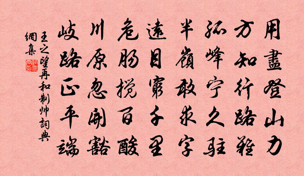 詩詞名句歷史字典書法欣賞書法字典國語詞典說文解字康熙字典古漢語字典標 題 作 者 詩 句 再和制帥作者:王之望 朝代:宋代再和制帥原文用盡登山力,方知行路難。孤峰寧久駐,半嶺敢求字。遠目窮千里,危腸攪百酸。川原忽開豁,岐路正平端。詩詞問答問:再和制帥的作者是誰?答:王之望問:再和制帥寫於哪個朝代?答:宋代王之望再和制帥書法欣賞再和制帥書法作品詩詞推薦清商怨·葭萌驛作陸游〔宋代〕江頭日暮痛飲。乍雪晴猶凜。山驛淒涼,燈昏人獨寢。 鴛機新寄斷錦。嘆往事、不堪重省。夢破南樓,綠雲堆一六州佚名〔宋代〕慶深恩。寶曆正乾坤。前帝子,後聖孫。援立兩儀軒。西宮大母朝寢門。望椒闥常溫。芳時媚景,有三千宮女,相浣溪沙 中秋雖見月,桂花出沒於雲影間,有王惲〔元代〕月色都輸此夜看。人心偏處即多慳。碧雲吹恨滿瑤天。盡著冰壺涼世界,故將陰巧妒嬋娟。桂香和露溫幽彈。河傳·棹舉顧敻〔唐代〕棹舉,舟去,波光渺渺,不知何處?岸花汀草共依依,雨微,鷓鴣相逐飛。天涯離恨江聲咽,啼猿切,此意向誰說京口即事和周開祖韻蔡肇〔宋代〕模寫山川畫不如,送來我得卷還舒。廢興此郡多遺事,搜尋因君得盡書。劫壞丹青無晉舊,地窮岡塹是秦余。試參五門街望有題蔣貽恭〔唐代〕我皇開國十餘年,一輩超升炙手歡。閒向五門樓下望,衙官騎馬使衙官。武后明堂樂章。徵音武則天〔唐代〕赫赫離精御炎陸,滔滔熾景開隆暑。冀延神鑒俯蘭尊,式表虔襟陳桂俎。句楊晨〔宋代〕結網{上彌下女}教女,操舟罷詬男。滿庭芳 贈曹八先生馬鈺〔元代〕妙玄易解,心意難善。窮究如何長便。牢捉牢擒,爭奈馬猿跳健。十二時中返倒,斗唆人、生情起念。當發願,便伏蒙知縣縣尉二寮友以夏旱得雨賡石徂徠喜雨王之道〔宋代〕綠槐陰外聽蟬吟,節過分龍夏已深。千里亢陽憂歲旱,一時甘雨快人心。養禾不害連朝噎,沃暑應容數日霖。多謝好事近陳亮〔宋代〕橫玉叫清宵,簾外月侵殘燭。人在畫樓高處,倚闌乾幾曲。穿雲裂石韻悠揚,風細斷遠續。驚落小梅香粉,點一庭喜遷鶯(壽李文昌)程珌〔宋代〕評君誰似,似長松千丈,離奇多節。骨瘦稜稜,文高犖犖,今日□來仙闕。走卒識公容貌,酋虜問公官閥。更史館酬王秀才桃花園見寄杜牧〔唐代〕桃滿西園淑景催,幾多紅艷淺深開。此花不逐溪流出,晉客無因入洞來。孟母三遷劉向〔兩漢〕鄒孟軻母,號孟母。其舍近墓。孟子之少時,嬉遊為墓間之事。孟母曰:“此非吾所以居處子。”乃去,舍市旁。九月六日小飲醒後作陸游〔宋代〕短劍悲秦俠,高歌憶楚狂。酒醒愁袬袬,香冷夢倀倀。屋老垣衣茂,池深石髮長。地爐須早計,衰病怯新霜。華之高壽魯齋先生七十金履祥〔宋代〕屹屹王子,三壽作朋。視彼霸侯,曾是足論。梅山戴表元〔宋代〕梅尉功成後,安知不此來。路逢耕者問,山寺化人開。樵隴低通海,茶村暖待雷。談玄亦可隱,不用墾蒿萊。自常熟敲冰行舟半日一夜僅十里袁說友〔宋代〕到曉才通十里冰,頗憐黃帽嘆征行。半篙不下風霜夜,一日之間水陸程。無復穩時村路滑,不勝危處斷橋傾。驅馳登塔二首袁燮〔宋代〕塵俗區區咫尺間,著身高處眇人寰。平生望塔今登塔,聊向風前一解顏。和吳鹽丞雪中湖上訪梅四首楊萬里〔宋代〕聞君蹈雪訪梅花,不怕蘇堤十里賒。老子怯寒那敢出,地爐榾柮是生涯。名句推薦已駕七香車,心心待曉霞。李商隱《壬申七夕》 聞善以相告也,見善以相示也戴聖《禮記·儒行》 治於神者,眾人不知其功;爭於明者,眾人知之。墨子《墨子·50章 公輸》 青林翠竹,四時俱備。陶弘景《答謝中書書》 聰明睿智,守之以愚李昉、李穆、徐鉉《太平御覽·文部·卷六》 事窮勢蹙之人,當原其初心;功成行滿之士,要觀其末路。洪應明《菜根譚·概論》 獨自莫憑欄,無限江山,別時容易見時難。李煜《浪淘沙令·簾外雨潺潺》 知音如不賞,歸臥故山秋。賈島《題詩後》 朝來嗔寂寞,不肯試新衣。馮夢龍《喻世明言·卷一》 翻被梨花冷看,人生苦戀天涯。張炎《朝中措·清明時節》