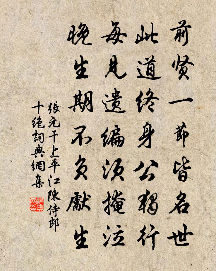 前賢一節皆名世,此道終身公獨行。每見遺編須掩泣,晚生期不負先生。