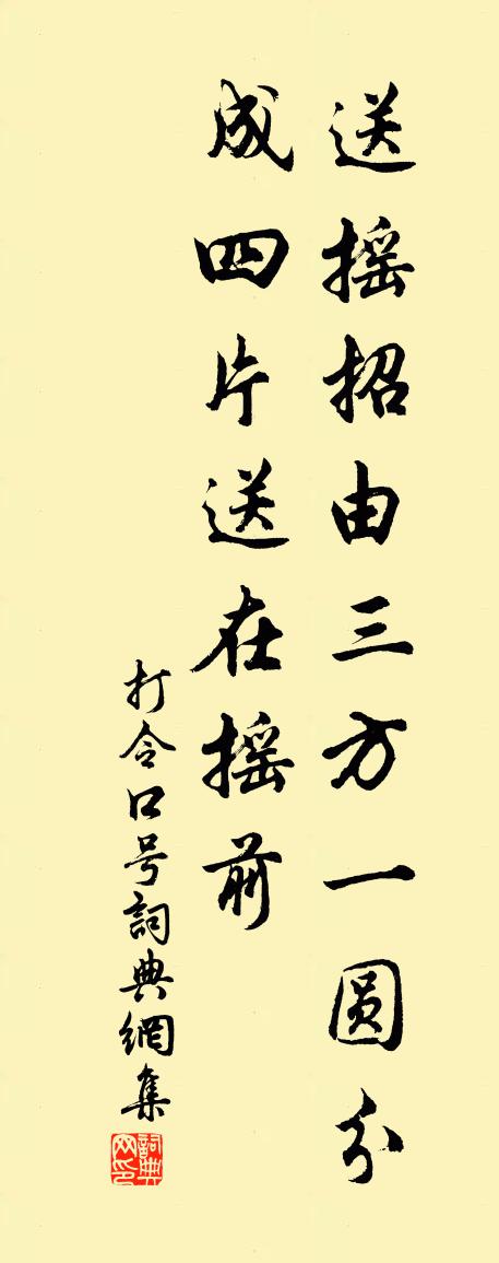 詩詞名句歷史字典書法欣賞書法字典國語詞典說文解字康熙字典古漢語字典標 題 作 者 詩 句 打令口號作者:佚名 朝代:唐代打令口號原文送搖招,由三方。一圓分成四片,送在搖前。詩詞問答問:打令口號的作者是誰?答:佚名問:打令口號寫於哪個朝代?答:唐代問:佚名的名句有哪些?答:佚名名句大全佚名打令口號書法欣賞打令口號書法作品詩詞推薦病中一首簡陳行之晁公溯〔宋代〕岡陵雖坡陀,其下水所積。山通巫硤雨,地類長沙濕。太陽豈不照,浸漬本膏脈。氣蒸柱礎潤,暗起窗戶黑。老屋水調歌頭辛棄疾〔宋代〕簪履竟晴晝,畫戟插層霄。紅蓮幕底風定,香霧不成飄。螺髻梅妝環列,鳳管檀糟交泰,回雪無纖腰。觴酒盪寒玉夜抵貞牟陳與義〔宋代〕野暝猶聞遠,川明不恨遲。焚山隔岸火,及我繫船時。夜半青燈屋,籬前白水陂。殷勤謝地主,小築欲深期。疊韻吳宮詞二首陸龜蒙〔唐代〕膚愉吳都姝,眷戀便殿宴。逡巡新春人,轉面見戰箭。紅櫳通東風,翠珥醉易墜。平明兵盈城,棄置遂至地。望僊亭梅堯臣〔宋代〕公來有餘樂,所樂為郡間。訟稀聊自適,靜勝以紓顏。清軒開曉幔,歷歷見淮山。山色洗新雨,佳期如可攀。代異百舌林逋〔宋代〕柳條初重草初肥,煙濕園林晚未晞。百種堪憐巧言語,一般惟久好毛衣。欺凌紅杏從頭宿,諷刺黃鸝趁背飛。誰道偈頌一百六十首釋宗杲〔宋代〕一人只知看雨,一人只知指雨。子細檢點將來,大似釘椿搖櫓。以何學士韻示像侍者釋正覺〔宋代〕茂養高標松抱苓,歲寒姿傲雪霜丁。蕭騷風度山林韻,偃蹇氣鍾丘壑形。霽月霽雲胸次淡,秋山秋水眼棱青。磨磚和司徒侍中壬子寒食會壓沙寺詩二首強至〔宋代〕四照梨花一色中,他時珍賞有雌雄。高牙就景開芳宴,皓齒停歌誦正風。樂極光陰窮日御,詩成造化奪春工。佳辰哀二僧劉克莊〔宋代〕子瞻詞里貶眉漢,魯直詩中返哺僧。□□□□□□針,血寫南山□□□。□□□□□□□,□□□□□來似。不曾三月晦日同弟觀侄津往寶幢哭刑部伯求弟道從陳著〔宋代〕投憩得幽寺,便忘行路遙。竹邊流水過,門外好山朝。金相已流土,海音無復潮。池檐立良久,老衲忽相邀。江南五首劉克莊〔宋代〕鋹也騃孺子,並蛙徒自尊。如何南武帝,面縛向夷門。頌古十七首釋大觀〔宋代〕客泛靈槎犯鬥牛,銀河碧海暗通流。崑崙推倒無依倚,萬里長空一樣秋。見性堂釋心月〔宋代〕髑髏瀝盡眼頭寬,炯炯圓明一顆寒。莫怪年來昏怕甚,鐘聲卻被鼓聲瞞。開元九詩書卷白居易〔唐代〕紅箋白紙兩三束,半是君詩半是書。經年不展緣身病,今日開看生蠹魚。逍遙詠宋太宗〔宋代〕道者強名立,清虛隱顯深。欲行千里路,別探一般心。景象空天遠,何勞意馬尋。玄談通智慧,曩動至從今。書懷袁說友〔宋代〕攤書志尚友,咄咄心如痴。上言思堯舜,下言商龍夔。搜奇日有富,得句中自怡。家人問產業,即曰非所知。偶成葉茵〔宋代〕醉敲牛角過前村,此世應無利祿昏。有水可漁田可稼,即松而徑竹而門。賓朋連屬琴書樂,亭榭參差鳥雀喧。不假三二年來夜夢每過吾廬之西一士支家觀書飲酒陸游〔宋代〕西鄰好友工談笑,每見明知是夢中。樽酒不空書滿架,何時真得與君同?五湖汪遵〔唐代〕已立平吳霸越功,片帆高揚五湖風。不知戰國官榮者,誰似陶朱得始終。名句推薦妙年出補父兄處,公自才力應時須黃庭堅《送范德孺知慶州》 雪暗凋旗畫,風多雜鼓聲。楊炯《從軍行》 但去莫復問,白雲無盡時。王維《送別》 學如不及,猶恐失之。孔子弟子《論語·泰伯篇》 目之於色也,有同美焉。孟子《孟子·告子章句上·第七節》 武帝宮中人去盡,年年春色為誰來。岑參《登古鄴城》 仁者,人也,親親為大。義者,宜也,尊賢為大。子思《中庸·第二十章》 雲青青兮欲雨,水澹澹兮生煙。李白《夢遊天姥吟留別 / 別東魯諸公》 莫避春陰上馬遲。春來未有不陰時。辛棄疾《鷓鴣天·送歐陽國瑞入吳中》 月到東南秋正半。雙闕中間,浩蕩流銀漢。王國維《蝶戀花·月到東南秋正半》