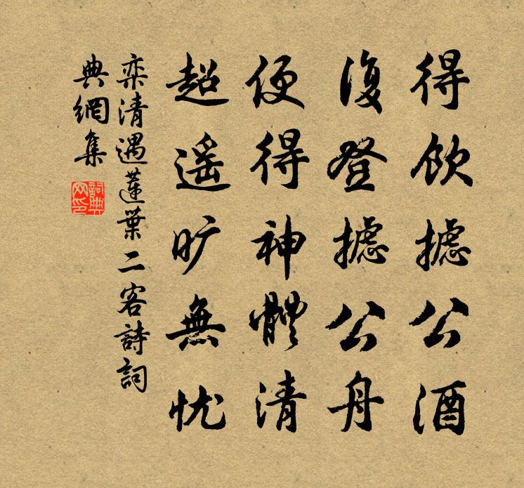 詩詞名句歷史字典書法欣賞書法字典國語詞典說文解字康熙字典古漢語字典標 題 作 者 詩 句 遇蓮葉二客詩作者:欒清 朝代:唐代遇蓮葉二客詩原文得飲攄公酒,復登攄公舟。便得神體清,超遙曠無憂。詩詞問答問:遇蓮葉二客詩的作者是誰?答:欒清問:遇蓮葉二客詩寫於哪個朝代?答:唐代問:遇蓮葉二客詩是什麼體裁?答:五古欒清遇蓮葉二客詩書法欣賞遇蓮葉二客詩書法作品注釋全唐詩:卷860-12詩詞推薦方稚川恕齋五絕曾豐〔宋代〕求仁亦多途,取近惟一路。內恕以及人,知君用心處。初冬有感陸游〔宋代〕峨冠本願致唐虞,白首那知墮腐儒。碌碌不成千載事,駸駸又見一年徂。無僧解輟齋廚米,有吏頻徵瘦地租。要信春晝寇準〔宋代〕午晝花陰靜,春風數蝶飛。坐來生遠思,深院燕初歸。三日尋李九莊常建〔唐代〕雨歇陽林東渡頭,永和三日盪輕舟。故人家在桃花岸,直到門前溪水流。四紋四時楊冠卿〔宋代〕紋簟浥香余汗粉,綠眉攢恨舊愁新。焚香夜拜初生月,暮色窗紗薄霧勻。送德隆山主釋重顯〔宋代〕霜葉凋殘,岩風凜寒。彼之禪老,忽下崇巒。衲有雲兮曾卷未卷,琴無弦兮解彈不彈。迢迢既行,宜聽斯語。明暗插田歌劉禹錫〔唐代〕連州城下,俯接村墟。偶登郡樓,適有所感,遂書其事為俚歌,以俟采詩者。 岡頭花草齊,燕子東西飛。田塍龍華山寺寓居十首王之望〔宋代〕海國幽棲地,春風欲暮時。病憂梅雨逼,貧嘆麥秋遲。並日終無愧,逢年會有期。饑寒寧苟免,吾道諱磷緇。楊白花舒岳祥〔宋代〕楊白花,懊惱隨風渡江水。將心莫托少年郎,少年一去輕萬里。楊條插地便生根,花性飄揚似夢塵。恨不築城高萬自壽安之長水李復〔宋代〕夜宿錦屏下,曉行伊水長。露寒荷葉紫,秋晚稻花香。女幾仙風斷,連昌輦路荒。二年渾作客,山驛過重陽。善慧大士贊釋智遇〔宋代〕萬派同源,三教一舌。咄者尊慈,弄巧成拙。中秋夕愴懷寄荊幕孫郎中齊己〔唐代〕白蓮香散沼痕乾,綠筱陰濃蘚地寒。年老寄居思隱切,夜涼留客話時難。行僧盡去雲山遠,賓雁同來澤國寬。時謝誠齋指檐頭雪為詩材二首袁說友〔宋代〕春風著意向春宵,巧作冰澌細細飄。正好千門競燈火,故添萬瓦燦瓊瑤。誰憐梅蕊猶含玉,大遣楊花為奪標。一段送沈康知常州王安石〔宋代〕作客蘭陵跡已陳,為傳謠俗記州民。溝塍半廢田疇薄,廚傳相仍市井貧。常恐勞人輕白屋,忽逢佳士得朱輪。殷懃用前韻再和霍大夫蘇軾〔宋代〕文字先生飲,(謂劉執中。)江山清獻游。典刑傳父老,樽俎繼風流。度嶺逢梅雨,還家指麥秋。自慚鴻雁侶,爭嵩陽書院詩李廌〔宋代〕束髮從政事,佩緩曳長裾。守令有民社,裂地皆分符。問之爾何由,必曰因業儒。自致或世賞,因儒升仕塗。一朝鷓鴣天 贈珠廉秀 青樓集馮子振〔元代〕恁倚東風遠映樓。流鶯窺面燕低頭。暇須瘦影纖纖織,龜背香紋細細浮。紅霧斂,彩雲收。海霞為帶月為鉤。夜來題吳仲微常齋李呂〔宋代〕達石情忘倦,移山志必通。朝朝勤甓運,井井策新功。淮南丞相坐贈歌者虞奼趙嘏〔唐代〕綺筵無處避梁塵,虞奼清歌日日新。來值渚亭花欲盡,一聲留得滿城春。寄李俌劉商〔唐代〕掛卻衣冠披薜荔,世人應是笑狂愚。年來漸覺髭鬚黑,欲寄松花君用無。名句推薦龍蟠虎踞金陵郡,古來六代豪華盛。康與之《菩薩蠻令·金陵懷古》 露蓼香涇,記年時相識吳文英《尾犯·甲辰中秋》 言不中法者,不聽也;行不中法者,不高也;事不中法者,不為也。商鞅《商君書·君臣》 君家玉女從小見,聞道如今畫不成。黃庭堅《謝張仲謀端午送巧作》 夜深靜臥百蟲絕,清月出嶺光入扉。韓愈《山石》 憑空怒浪兼天涌,不盡六朝聲。歸莊《錦堂春·半壁橫江矗起》 漢甲連胡兵,沙塵暗雲海。李白《經亂離後天恩流夜郎憶舊遊書懷贈江夏韋太守良宰》 君若清路塵,妾若濁水泥;曹植《明月上高樓》 錦帶吳鉤,征思橫雁水。吳文英《荔枝香近·送人游南徐》 數人世相逢,百年歡笑,能得幾回又。何夢桂《摸魚兒·記年時人人何處》