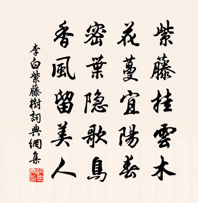 紫藤掛雲木,花蔓宜陽春。密葉隱歌鳥,香風留美人。