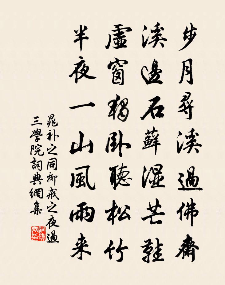 步月尋溪過佛齋,溪邊石蘚濕芒鞋。虛窗獨臥聽松竹,半夜一山風雨來。