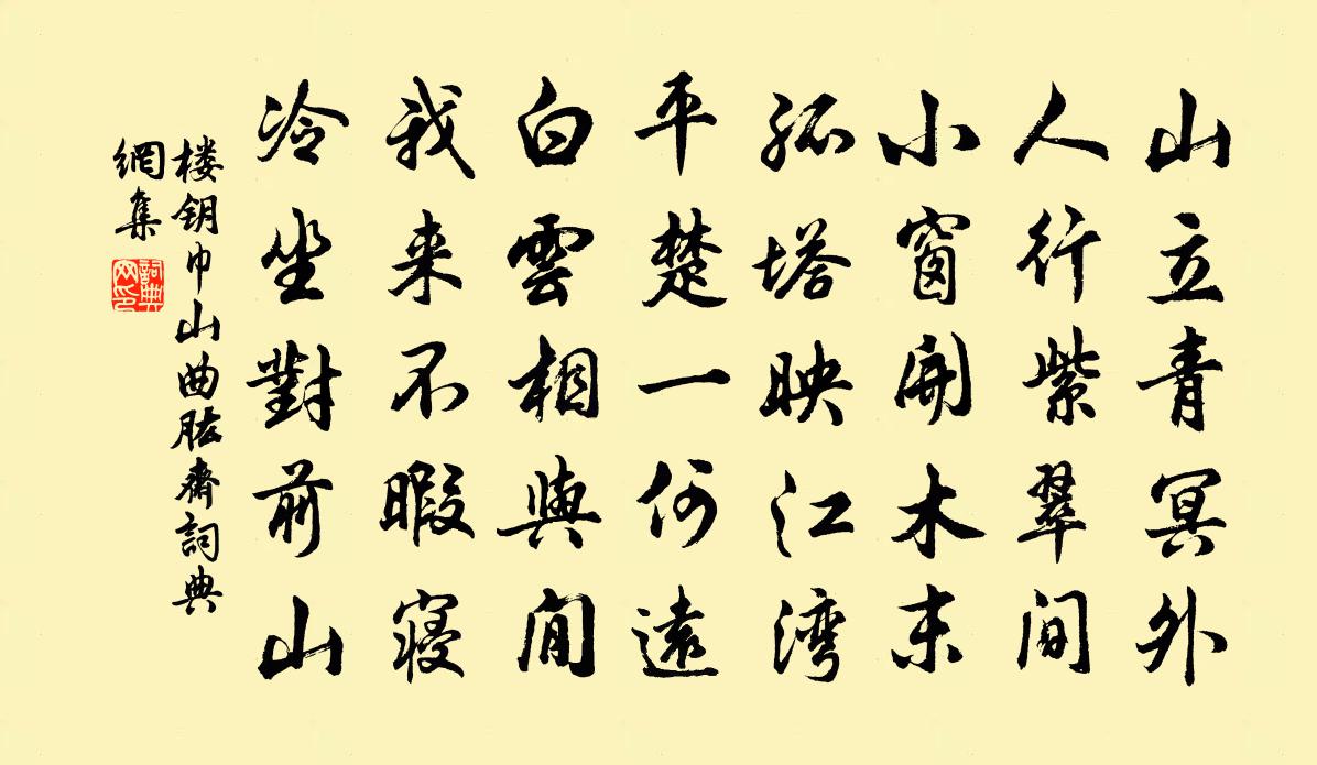 詩詞名句歷史字典書法欣賞書法字典國語詞典說文解字康熙字典古漢語字典標 題 作 者 詩 句 巾山曲肱齋作者:樓鑰 朝代:宋代巾山曲肱齋原文山立青冥外,人行紫翠間。小窗開木末,孤塔映江灣。平楚一何遠,白雲相與閒。我來不暇寢,冷坐對前山。詩詞問答問:巾山曲肱齋的作者是誰?答:樓鑰問:巾山曲肱齋寫於哪個朝代?答:宋代樓鑰巾山曲肱齋書法欣賞巾山曲肱齋書法作品詩詞推薦苦旱二首強至〔宋代〕赤地關中帶幾州,濁涇清渭總如溝。野農不省天時晚,猶禱閒神望有秋。錦屏山圖釋文珦〔宋代〕錦屏山勢舞雙鸞,影入嘉陵江水寒。人在東南歸未得,時時獨展畫圖看。生意堂三首董嗣杲〔宋代〕絮花挼雪小橋寒,渾是蘇堤柳下看。愁去不知春袖濕,晚風吹雨入闌乾。稠桑驛喜逢嚴河南中丞便別(得時字)岑參〔唐代〕駟馬映花枝,人人夾路窺。離心且莫問,春草自應知。不謂青雲客,猶思紫禁時。別君能幾日,看取鬢成絲。答陳珍劉克莊〔宋代〕寂寂少游從,斯人未易逢。清貧今仲子,疏雋小元龍。君謹提詩筆,吾當避箭鋒。勉旃鳴盛世,切勿效寒蛩。道中與謝紫壺聯句白玉蟾〔宋代〕陰晴荏苒風吹霜,山北山南稻正黃。照澗芙蓉何綽約,掠雲鴻鵠向微茫。心同秋水與天遠,夜折岩花和月香。嶺海蝶戀花晏幾道〔宋代〕碧落秋風吹玉樹。翠節紅旌,晚過銀河路。休笑星機停弄杼。鳳幃已在雲深處。樓上金針穿繡縷。誰管天邊,隔歲滿江紅·齊山繡春台吳潛〔宋代〕十二年前,曾上到、繡春台頂。雙腳健、不煩筇杖,透岩穿嶺。老去漸消狂氣習,重來依舊佳風景。想牧之、千載偈頌四十二首釋祖先〔宋代〕大家共住喫莖虀,熟煮爛炊。粗餐易飽,細嚼難飢。泠淡沒滋味,從來少人知,此意明月說向誰。送楊瓘雁門省親二首黃庭堅〔宋代〕執戟老翁年七十,人看生理亦無聊。草玄事業窺周易,作賦聲名動漢朝。今見遠孫勤翰墨,還持遺藁果簞瓢。三年次韻奉和平叔亭林至日之什張元乾〔宋代〕雲物果何好,客愁今更新。坐來江月白,興在雪籬春。我輩且同酌,公詩殊出塵。莫思淮海上,黑幟雜黃巾。盧直院輓詞戴栩〔宋代〕五十一回春夢中,兄悲子哭愬東風。別司制敕歸天上,不共塵凡住哉中。幌拂幽弦琴自語,奩遺殘粒藥無功。松颸贈僧(一作趙嘏詩)許渾〔唐代〕心法本無住,流沙歸復來。錫隨山鳥動,經附海船回。洗足柳遮寺,坐禪花委苔。唯將一童子,又欲上天台。句張唐卿〔宋代〕一舉首登龍虎榜,十年身到鳳凰池。重過鴻儀寺晃沖之〔宋代〕秋色遽如許,寒林奈若何。客行傷老大,野次記經過。廢圃猶殘菊。枯池但折荷。吾生與物態,天意豈蹉跎。題請息齋六言范成大〔宋代〕見影蜮猶鉍鉍,聞聲厖尚狺狺。問誰毛生名紙,知我角出車輪。步虛詞十首吳筠〔唐代〕眾仙仰靈范,肅駕朝神宗。金景相照曜,逶迤升太空。七玄已高飛,火煉生珠宮。餘慶逮天壤,平和王道融。八威頌十玄談回機釋印肅〔宋代〕再三撈摝始方知,捉影逃形也太痴。行眼大悲分得半,維摩老漢始全提。驀山溪(和人冬至韻)朱敦儒〔宋代〕西江東去,總是傷時淚。北陸日初長,對芳尊、多悲少喜。美人去後,花落幾春風,杯漫洗。人難醉。愁見飛灰細賀師垣賜御書一德格天之閣牌並鍍金器皿青羅張嵲〔宋代〕炎精光復論元功,事業伊周信比蹤。許國一心明貫日,存孤高節凜經冬。甲區地勢羅千雉,奎畫天門跳六龍。自古名句推薦對聖賢言語,必要我平時照樣行去,才算讀書。王永彬《圍爐夜話·第二則》 處世不必邀功,無過便是功;與人不要感德,無怨便是德。洪應明《菜根譚·概論》 九州生氣恃風雷,萬馬齊喑究可哀。龔自珍《己亥雜詩·其二百二十》 棠梨葉落胭脂色,蕎麥花開白雪香。王禹偁《村行·馬穿山徑菊初黃》 居庸關上子規啼,飲馬流泉落日低。朱彝尊《出居庸關》 系我一生心,負你千行淚。柳永《憶帝京·薄衾小枕涼天氣》 遙想江口依然,鳥啼花謝,今日誰為主。王瀾《念奴嬌·避地溢江書於新亭》 泉聲咽危石,日色冷青松。王維《過香積寺》 量大禍不在,機深禍亦深。佚名《增廣賢文·下集》 高岸為谷,深谷為陵。佚名《十月之交》