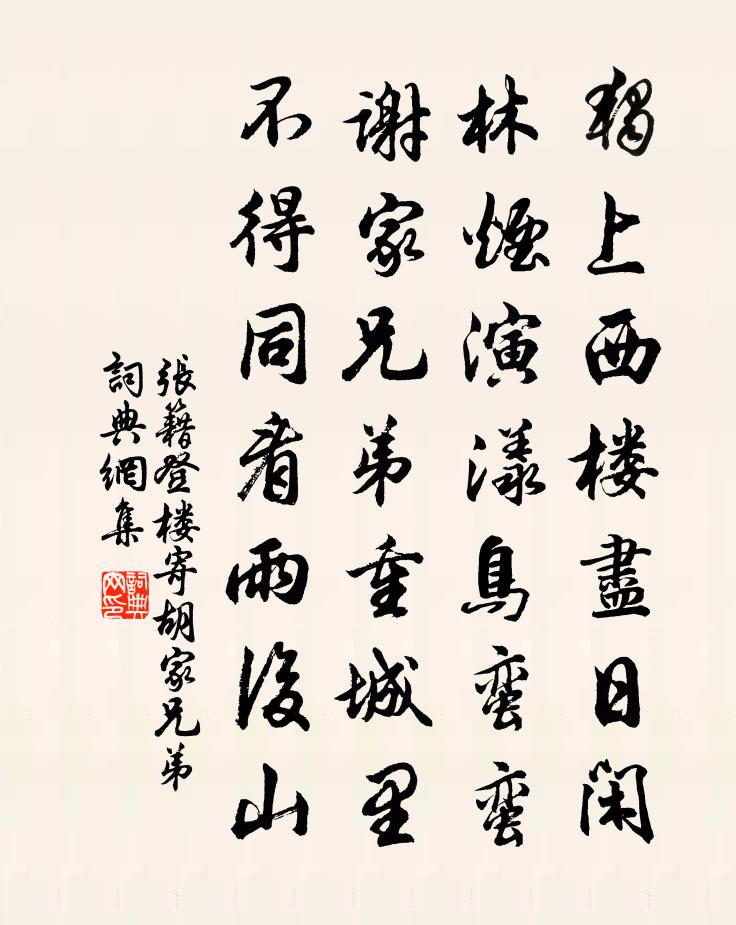 獨上西樓盡日閒,林煙演漾鳥蠻蠻。謝家兄弟重城裡,不得同看雨後山。