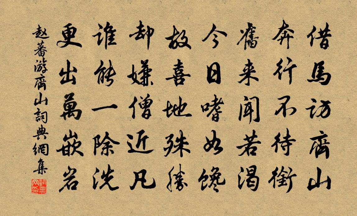 詩詞名句歷史字典書法欣賞書法字典國語詞典說文解字康熙字典古漢語字典標 題 作 者 詩 句 游齊山作者:趙蕃 朝代:宋代游齊山原文借馬訪齊山,奔行不待銜。舊來聞若渴,今日嗜如饞。故喜地殊勝,卻嫌僧近凡。誰能一除洗,更出萬嵌岩。詩詞問答問:游齊山的作者是誰?答:趙蕃問:游齊山寫於哪個朝代?答:宋代趙蕃游齊山書法欣賞游齊山書法作品詩詞推薦池州和同官詠梅花張道洽〔宋代〕萬壑寒皆沍,孤根暖自生。不隨千卉艷,獨負一身清。水際寒香迥,窗間夜影橫。輿台桃李輩,誰弟又誰史。楊十三虞卿在希顏上人房納涼余時在村舍歸和李廌〔宋代〕土渴山焦獨在阿,考盤孰與世相遇。皇皇夫子猶傷鳳,碌碌蒼生尚執柯。頭白已驚為學晚,日長贏得讀書多。北禪偈頌四十一首釋普寧〔宋代〕出得油缸入醬缸,通身是口若為談。老拳尚有些筋力,拚命來機為指南。二斑與寧茵賦詩佚名〔唐代〕曉讀雲水靜,夜吟山月高。焉能履虎尾,豈用學牛刀。 ——寧茵但得居林嘯,焉能當路蹲。渡河登羅浮絕頂奉同蔣王二大夫作屈大均〔清代〕霃霃太古雲,至今未開闢。山氣日洶湧,隨風灑 * 。觸石生洪波,微茫在咫尺。登山若浮海,舟航即輕策。浮山送別胡汲古黃庚〔宋代〕自鄰身是客,又送客登舟。雖有重來約,難禁一別愁。風煙迷柳驛,草樹暗春洲。後夜懷人處,山空月滿樓。峽中和卜彥才韻方逢振〔宋代〕尹躬樂不在耕莘,樂在明明以及民。貪看回頭多應錯,偶聞變色始知真。聖賢氣象心為大,天地根萌人是仁。認著相見歡(見月聞笛八月五夜)李處全〔宋代〕新涼襟袂冷然。乍晴天。風送誰家羌管、月便娟。雲散盡,秋空碧,玉鉤懸。洗耳時聽三弄、等團圓。次韻明仲游將軍岩劉子翬〔宋代〕樂哉今日游,結友盡英秀。山靈欣客來,閣雨開雲岫。步屣出煙嵐,聲呼答岩竇。輕生快險奇,一墜那復捄。崇林四月二日進士唱名,以省試官待罪。殿廬遇林楊萬里〔宋代〕清曉朝帝所,就列復少須。不逢林夫子,於何得故吾?宮雲霽猶未,宸風夾亦初。說詩憐新體,信美古則無。將無高宗祀明堂前朝享太廟二十一首真宗〔宋代〕作樂合祖,筍簴在庭。眾奏具舉,肅雝和鳴。神靈來格,庶幾是聽。皦繹以終,永觀厥成。謁金門(次韻鄭婺源)韓淲〔宋代〕行又住。水遠山遙村路。把酒問春春幾許。老年花似霧。坐上風流張緒。留我我還難去。卻憶章台飛柳絮。只愁縈贈丐士陸游〔宋代〕志士寧聞畢世窮,此間從古混蛇龍。尚能忍恥墦間祭,安用追慚飯後鍾?嘉定改元久旱得雨詩呈張令君楊簡〔宋代〕兩日長憂積滿中,感深令禱格天工。欣欣處處人人喜,渺渺茫茫畝畝同。不至傷如無極雅,行當改賦黍離風。邑民九月初吉永嘉蘇太古同游金華洞夜宿鹿田寺用金履祥〔宋代〕攜手登山處,山高風露寒。共來岩壑里,別去海雲端。意重言難足,更深語未闌。相期最高處,志見兩俱安。一剪梅/一翦梅佚名〔宋代〕太華峰頭□□蓮。聞十丈,藕大如船。曉來佳氣藹飛煙。彩戲盈門。弧矢盈門。共把長生酒一樽。殷勤祝願,耳畔題宋氏小赤壁方岳〔宋代〕自有梅花賦,何煩苦覓詩。鶴能嗔客俗,山亦忌人痴。岸斷流春急,峰高吐月遲。吾詩不須刻,萬一老坡知。戲贈蕭處士清禪師白居易〔唐代〕三杯嵬峨忘機客,百衲頭陀任運僧。又有放慵巴郡守,不營一事共騰騰。法曲-美列聖,正華聲也白居易〔唐代〕法曲法曲歌大定,積德重熙有餘慶。永徽之人舞而詠,法曲法曲舞霓裳。政和世理音洋洋,開元之人樂且康。法曲老病六言十首呈竹溪劉克莊〔宋代〕七竅豈堪頻鑿,百骸漸覺不仁。若非右臂作字,乃公已是廢人。名句推薦影孤憐夜永,永夜憐孤影蘇軾《菩薩蠻·回文秋閨怨》 西湖舊日,留連清夜,愛酒幾將花誤。吳文英《永遇樂·探梅次時齋韻》 星漢燦爛,若出其里。曹操《觀滄海 / 碣石篇》 相逢喚醒京華夢,吳塵暗斑吟發。詹玉《齊天樂·送童瓮天兵後歸杭》 小樓昨夜又東風,故國不堪回首月明中。李煜《虞美人·春花秋月何時了》 江寒水不流,魚嚼梅花影。釋敬安《題寒江釣雪圖》 一去隔絕國,思歸但長嗟。李白《千里思》 漳水出焉,東流注於河。佚名《精衛填海》 幾多情,無處說,落花飛絮清明節。魏承班《漁歌子·柳如眉》 反者道之動;弱者道之用。老子《老子·德經·第四十章》