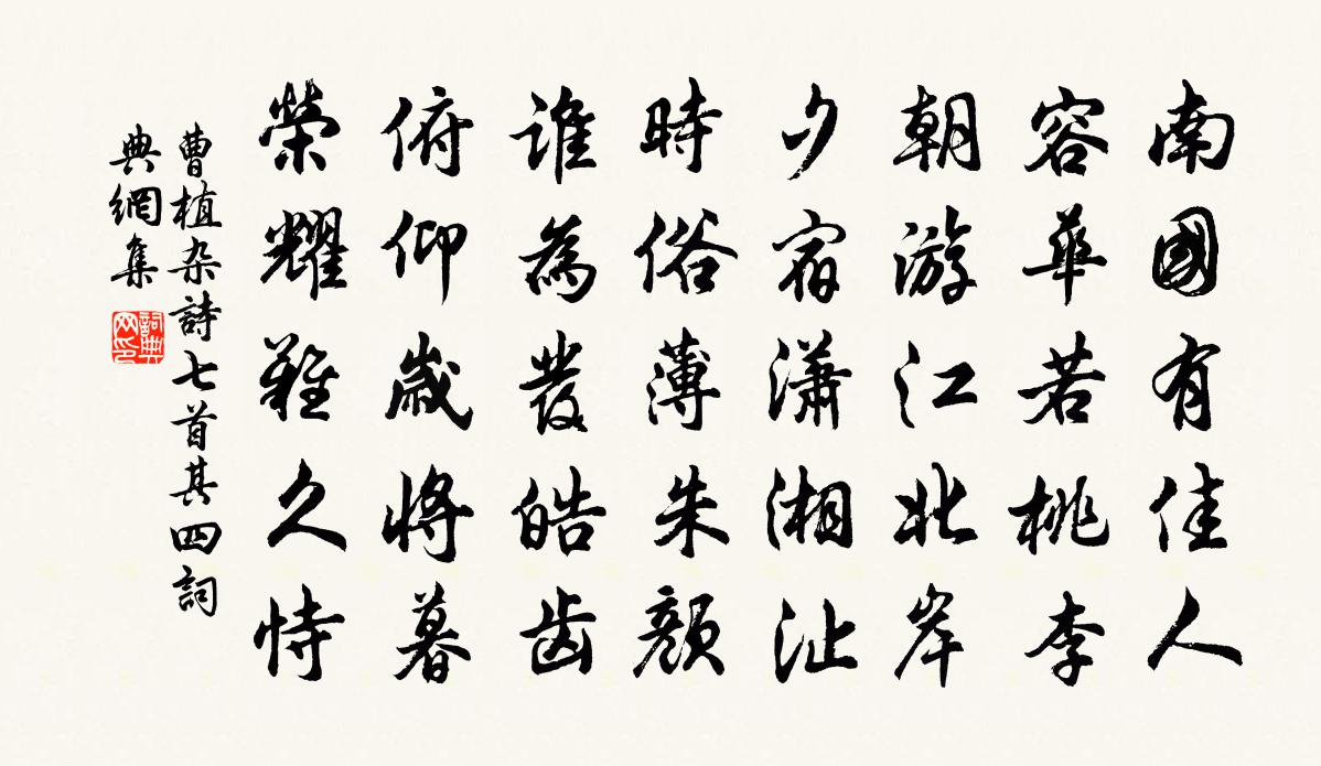 有一種說法,認為這首詩的主題不是作者自傷,而是為曹彪鳴不平。“佳人”蓋指彪,時為吳王也。《魏志》:彪於黃初三年,徙封吳王,五年改封壽春縣,七年徙封白馬。朝游夕宿,喻遷徙無定也。”(見黃節《曹子建詩注》卷一)曹彪是曹植的異母弟,曹植與曹彪同受朝廷猜忌壓抑,有同病相憐之感,黃節的看法可備一說,但證據畢竟不足。徐公持同志說:“按曹彪雖膺過吳王的封爵,其封城卻並不真在吳地。當時自江以南,全在孫氏控制之下,曹彪無由得至江南。他這個吳王封在壽春附近,此點曹植不會不知。所以詩寫‘南國’‘佳人’,‘朝游江北岸,夕宿瀟湘沚’等等,不可能是指曹彪,而是借用楚辭的意境和成語,來抒發自己對‘時俗薄朱顏’的感慨,其主旨是懷才不遇。”這樣講比較合乎情理。