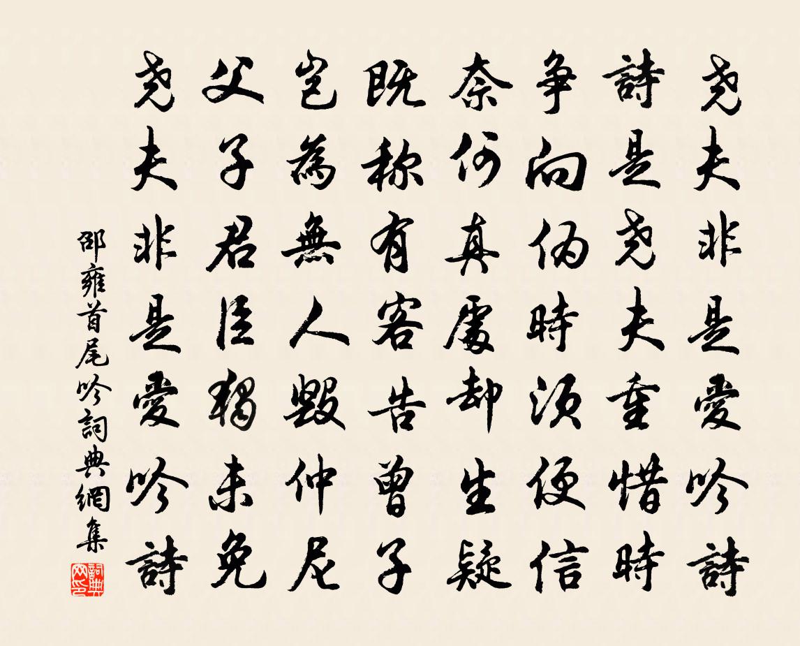 詩詞名句歷史字典書法欣賞書法字典國語詞典說文解字康熙字典古漢語字典標 題 作 者 詩 句 首尾吟作者:邵雍 朝代:宋代首尾吟原文堯夫非是愛吟詩,詩是堯夫重惜時。爭向偽時須便信,奈何真處卻生疑。既稱有客告曾子,豈為無人毀仲尼。父子君臣獨未免,堯夫非是愛吟詩。詩詞問答問:首尾吟的作者是誰?答:邵雍問:首尾吟寫於哪個朝代?答:宋代邵雍首尾吟書法欣賞首尾吟書法作品詩詞推薦橫吹曲辭。出塞皇甫冉〔唐代〕吹角出塞門,前瞻即胡地。三軍盡回首,皆灑望鄉淚。轉念關山長,行看風景異。由來征戍客,負得輕生義。李粹伯命賦枕流已讀佳篇不容著語戲書二伽陀曾協〔宋代〕水軒宴坐死灰同,一息呼號萬竅風。縱有溪流清似鏡,不知何處洗虛空。擬行路難鮑照〔南北朝〕春禽喈喈旦暮鳴。最傷君子憂思情。我初辭家從軍僑。榮志溢氣乾雲霄。流浪漸冉經三齡。忽有白髮素髭生。今暮橫江詞其一李白〔唐代〕人道橫江好,儂道橫江惡。一風三日吹倒山,白浪高於瓦官閣。龜溪即事五首高斯得〔宋代〕王庭陟俊茂,三年虱其間。愚忠竟何補,積咎成丘山。愧彼海上漚,臨機鴥其翻。昭□□□□,嗟嗟亦胡顏。汝今虞美人·韶華爭肯偎人董士錫〔清代〕韶華爭肯偎人住?已是滔滔去。西風無賴過江來,歷盡千山萬水幾時回? 秋聲帶葉蕭蕭落,莫響城頭角!浮喻舊部曲元結〔唐代〕漫遊樊水陰,忽見舊部曲。尚言軍中好,猶望有所屬。故令爭者心,至死終不足。與之一杯酒,喻使燒戎服。兵興送陳表道倅岳陽樓鑰〔宋代〕聞說巴陵好,樓高占古城。湖光千頃白,山色一螺明。赤壁沈沙戟,蒼煙老樹精。好詩收拾取,寄我尉離情。金剛隨機無盡頌威儀寂靜分第二十九釋印肅〔宋代〕莫認四威儀,行住坐臥知。念念皆相應,珍重任時宜。踏莎行趙師俠〔宋代〕白雲開殘,紅雲吹盡。園林新綠迷芳徑。榆錢不解青春,隨風亂點蒼苔暈。紫燕飛忙,黃鸝聲嫩。日長煙暖游蜂困聞蟬舒邦佐〔宋代〕紗幮紋簟北窗眠,只道清聲比管弦。誰念夕陽官道里,幾多客旅聽悽然。為徐企題李伯時馬方回〔宋代〕此畫良真李伯時,形容飛動卒難詩。但將元佑蘇黃作,開卷焚香朗誦之。風入松(賦稼村)張炎〔宋代〕老來學圃樂年華。茅屋短籬遮。兒孫戲逐田翁去,小橋橫、路轉三叉。細雨一犁春意,西風萬寶生涯。攜筇猶記度讀淵明集文同〔宋代〕吏人已散門闌靜,公事才休耳目清。窗下好風無俗客,案頭遺集有先生。文章簡要惟華袞,滋味醇醲是太羹。也待長安早春言志陳羽〔唐代〕九衢日暖樹蒼蒼,萬里吳人憶水鄉。漢主未曾親羽獵,不知將底諫君王。夢故府錢公梅堯臣〔宋代〕故相方來夢,分明接座隅。只知冠劍是,不道死生殊。西府看如舊,東山詠久徂。遽然興寤嘆,不覺淚沾須。和葺芷雪韻鄭清之〔宋代〕夸父逐日有餘力,驅萬白{鯢魚換蟲}飛練織。連天照耀作夜明,涌池培堆驚壤息。竹高已學槍頭勢,梅近猶能半劍器詞三首姚合〔唐代〕聖朝能用將,破敵速如神。掉劍龍纏臂,開旗火滿身。積屍川沒岸,流血野無塵。今日當場舞,應知是戰人。晝渡汪務玄降睡有作張繼先〔宋代〕萬籟沉沉丹滿空,一枰初勝務玄翁。金壺飲罷前村酒,玉軫閒歌太古風。羨我無眠神已爽,笑渠貪睡意何濃。回頭杜鵑花楊巽齋〔宋代〕鮮紅滴滴映霞明,儘是冤禽血染成。羈客有家歸未得,對花無語兩含情。名句推薦攜壺酌流霞,搴菊泛寒榮。李白《九日》 淚眼問花花不語,亂紅飛過鞦韆去。歐陽修《蝶戀花·庭院深深深幾許》 今宵絕勝無人共,臥看星河盡意明。陳與義《雨晴·天缺西南江面清》 漳水出焉,東流注於河。佚名《精衛填海》 將之器,其用大小不同。諸葛亮《將苑·卷一·將器》 況是青春日將暮,桃花亂落如紅雨。李賀《將進酒》 昭君拂玉鞍,上馬啼紅頰。李白《王昭君二首》 江水三千里,家書十五行。袁凱《京師得家書》 受任於敗軍之際,奉命於危難之間諸葛亮《前出師表》 願妾身為紅菡萏。年年生在秋江上。歐陽修《漁家傲·近日門前溪水漲》