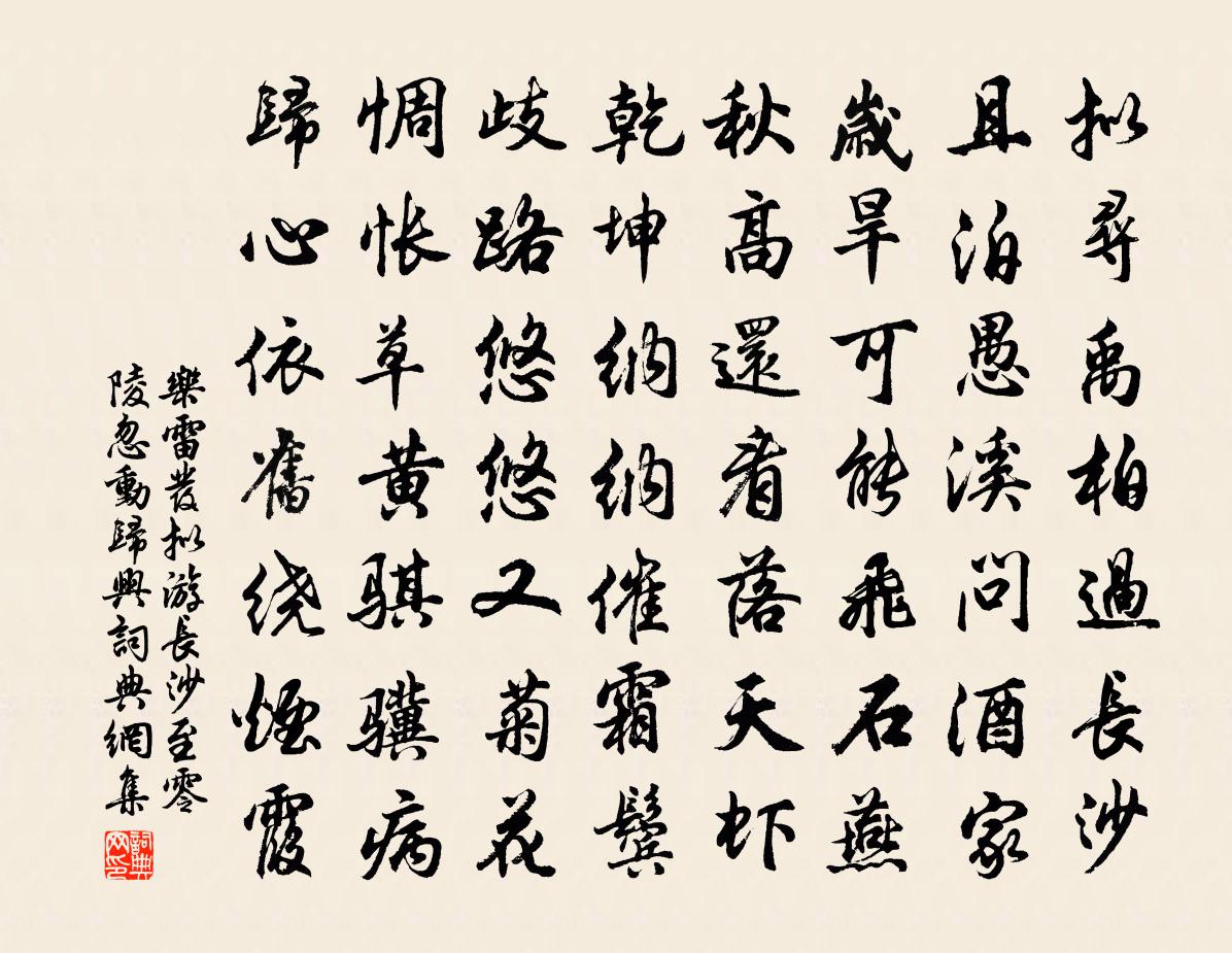 詩詞名句歷史字典書法欣賞書法字典國語詞典說文解字康熙字典古漢語字典標 題 作 者 詩 句 擬游長沙至零陵忽動歸興作者:樂雷發 朝代:宋代擬游長沙至零陵忽動歸興原文擬尋禹柏過長沙,且泊愚溪問酒家。歲旱可能飛石燕,秋高還看落天蝦。乾坤納納催霜鬢,歧路悠悠又菊花。惆悵草黃騏驥病,歸心依舊繞煙霞。詩詞問答問:擬游長沙至零陵忽動歸興的作者是誰?答:樂雷發問:擬游長沙至零陵忽動歸興寫於哪個朝代?答:宋代樂雷發擬游長沙至零陵忽動歸興書法欣賞擬游長沙至零陵忽動歸興書法作品詩詞推薦老而健貧而詩自志其喜八首方回〔宋代〕老翁處處有,不健復何為。貧戶家家是,能詩始足奇。東坡捐玉帶,白傅放楊枝。新有僧相識,時來說易詩。水調歌頭 為揚志行壽 強村最書用明刊雲峰文胡炳文〔元代〕絳闕春回近,先放玉堂梅。當時產此人傑,天豈偶然哉。吾道以為元氣,學者仰如北斗,聊復振儒台。來歲紫微閣天平公座中呈令狐令公時蔡京在坐京曾為僧徒故有第五句李商隱〔唐代〕罷執霓旌上醮壇,慢妝嬌樹水晶盤。更深欲訴蛾眉斂,衣薄臨醒玉艷寒。白足禪僧思敗道,青袍御史擬休官。雖然謁金門(一名花自落、垂楊碧、出塞)韋莊〔唐代〕春雨足,染就一溪新綠。柳外飛來雙羽玉,弄晴相對浴。樓外翠簾高軸,倚遍闌乾幾曲。雲淡水平煙樹簇,寸心千行住坐臥三十二頌釋印肅〔宋代〕千百年前老古錐,鋤山钁圃示箴規。蛇兒挑起無人會,直截橫拋更勿疑。周道士本簪裳世家齠年便慕真教今為廬江黃冠宋庠〔宋代〕親見烏衣竹馬年,如何便學草樓仙。長安名利非真趣,好趁春膏種玉田。梅雨大水方回〔宋代〕積年梅雨動兼旬,咎證源源殆有因。狐假虎威饒此輩,鼠穿牛角念吾民。涎流白飯難僥倖,汗滴青秧浪苦辛。曲許謝陳思遠畫山水釋寶曇〔宋代〕莫年愛山心,已作鐵樣頑。晨光與意會,起行適滄灣。峽深石固削,水落樹自閒。腕中百斛力,屋底聲潺潺。六月八日夜步西湖即事王志道〔宋代〕步繞西湖路,荷盤送晚香。歸舟初裊纜,斜月已侵廊。水外鐘聲杳,風膠曲韻長。剨然思遠舉,逸興渺難量。城南隅山池春中田袁二公盛稱其美夏首獲賞果…故有此詠張九齡〔唐代〕憶昨聞佳境,駕言尋昔蹊。非惟初物變,亦與舊遊暌。幽渚為君說,清晨即我攜。途深獨睥睨,歷險共攀躋。林筍何秀才郊園五首司馬光〔宋代〕濁酒不取味,素琴無復弦。何須更清論,相見自蕭然。舟中作偈釋楚圓〔宋代〕長江行不盡,帝里到何時。既得涼風便,休將艣棹施。糖多令(庚戌六月赴荊閫,宿江亭)李曾伯〔宋代〕楓荻響颼颼。長江六月秋。二十年、重到沙頭。城郭人民那似舊,曾識面、兩三鷗。落日且登樓。英雄休涕流。望偶作孫嵩〔宋代〕更勿窮通算此生,文章玄白付誰評。淒涼例薄佳人命,邂逅多成豎子名。晨起邵雍〔宋代〕山高水復深,無葉奈而今。地盡一時事,天開萬古心。輕煙籠曉閣,微雨散青林。此景雖平淡,人間何處尋。次韻袁司理送行三首陳著〔宋代〕別友相逢情最好,相逢還別若為情。看君騰踏飛黃去,記取清鐙影里盟。囉嗊曲六首·其三劉采春〔唐代〕莫作商人婦,金釵當卜錢。朝朝江口望,錯認幾人船。夫容洪咨夔〔宋代〕向背有感態,纖稼無定姿。最憐花脫後,全似蕊包時。木齋詩楊維楨〔元代〕七日混沌離,穿鑿爭七竅。碩果一失仁,百體俱弗肖。巧詐日橫生,售朴至深溺。聖人憂世心,世變若願燎。安得郊廟歌辭。梁太廟樂舞辭。送神佚名〔唐代〕其降無從,其往無蹤。黍稷非馨,有感必通。赫奕令德,仿佛睟容。再拜慌忽,遐想昊穹。名句推薦苕之華,其葉青青。佚名《苕之華》 瑤草一何碧,春入武陵溪。黃庭堅《水調歌頭·遊覽》 昔人已乘黃鶴去,此地空餘黃鶴樓。崔顥《黃鶴樓 / 登黃鶴樓》 近重陽、偏多風雨,絕憐此日暄明。姚雲文《紫萸香慢·近重陽》 戰士軍前半死生,美人帳下猶歌舞。高適《燕歌行》 見楊柳飛綿滾滾,對桃花醉臉醺醺。王實甫《十二月過堯民歌·別情》 陌上風光濃處。第一寒梅先吐。李彌遜《十樣花·陌上風光濃處》 不知三江水,何事亦分流?陳子龍《三洲歌》 玉人初上木蘭時。懶妝斜立澹春姿。吳文英《浣溪沙·題李中齋舟中梅屏》 不怕官,只怕管。施耐庵《水滸傳·第二回》