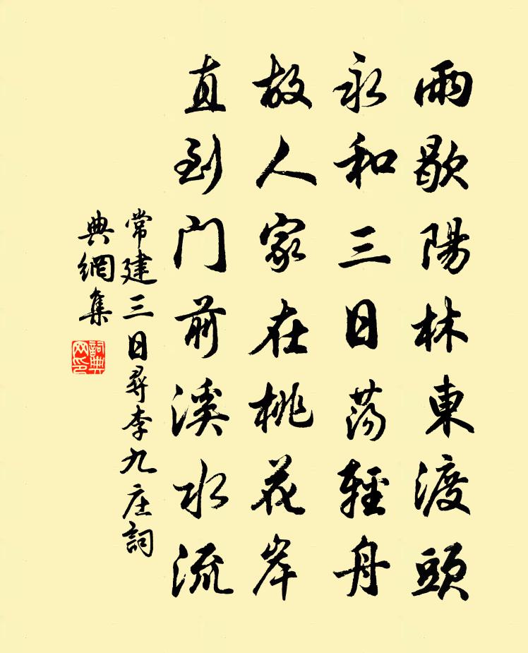 雨歇陽林東渡頭,永和三日盪輕舟。故人家在桃花岸,直到門前溪水流。