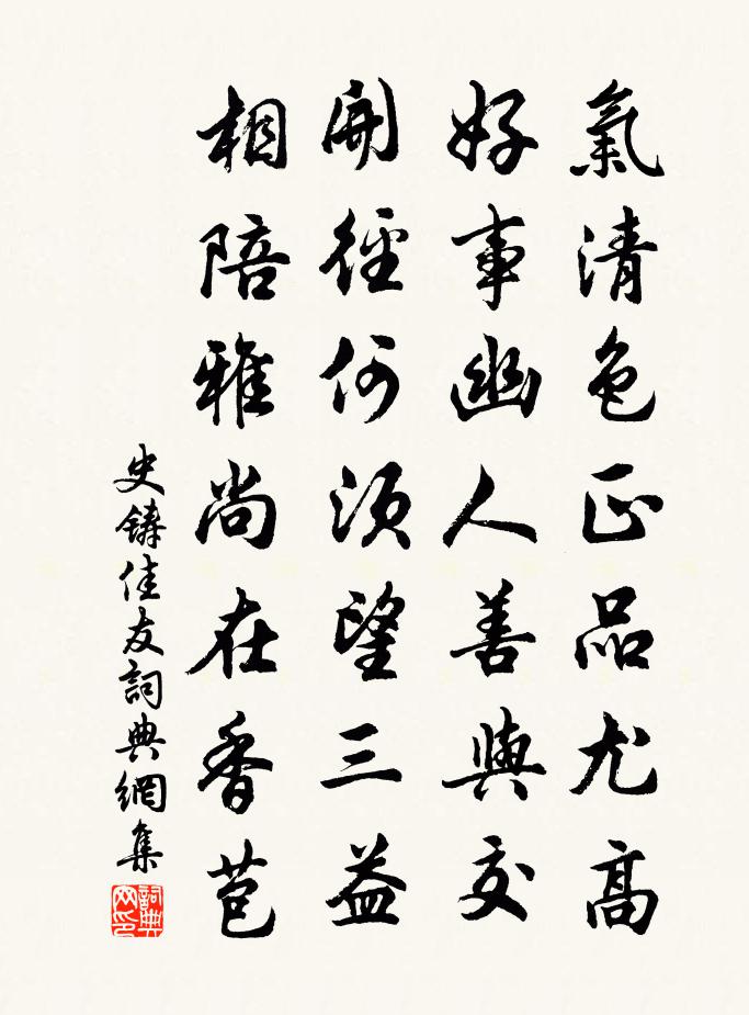 詩詞名句歷史字典書法欣賞書法字典國語詞典說文解字康熙字典古漢語字典標 題 作 者 詩 句 佳友作者:史鑄 朝代:宋代佳友原文氣清色正品尤高,好事幽人善與交。開徑何須望三益,相陪雅尚在香苞。詩詞問答問:佳友的作者是誰?答:史鑄問:佳友寫於哪個朝代?答:宋代史鑄佳友書法欣賞佳友書法作品詩詞推薦九月梨花韓準〔宋代〕粉膩迷春月滿枝,誤隨秋日弄芳菲。料應潛作春宵夢,剛被西風不放歸。雜記五言十首劉克莊〔宋代〕履霜行於野,絕糧厄於陳。伯奇父逐子,仲尼天戮民。忘機宋伯仁〔宋代〕我以漚為我,漚為我即漚。非漚亦非我,機事兩忘不。梅花陸游〔宋代〕山村梅開處處香,醉插烏巾舞道傍。飲酒得仙陶令達,愛花欲死杜陵狂。題大理黃主簿湖上高齋劉長卿〔唐代〕閉門湖水畔,自與白鷗親。竟日窗中岫,終年林下人。俗輕儒服弊,家厭法官貧。多雨茅檐夜,空洲草徑春。桃源逍遙詠宋太宗〔宋代〕濟世勤行任百年,方知大道自昭宣。休夸爭變黃金術,誰信空磨白玉穿。智慧宜從高見識,陰功及物最彌堅。是非寄湯司諫趙蕃〔宋代〕自發袁州使,侵尋復暮春。何人話安否,官路政艱辛。章貢未歸客,湘沅薄宦人。何當一傾蓋,肯作白頭新。挽林梅癯衛宗武〔宋代〕晚擢亞科躋憲掾,擬航選海竟無緣。苦吟方與甫俱瘦,疏影俄隨逋已仙。谷水吟編多手澤,廣陵琴趣得心傳。年幾長命縷司空圖〔唐代〕他鄉處處堪悲事,殘照依依惜別天。此去知名長命縷,殷勤為我唱花前。句王操〔宋代〕馬搖金勒嘶村墅,人搶花毬落野田。再和宿囊山三首劉克莊〔宋代〕未能蔥嶺從初祖,也不蓬萊訪洞賓。煎鳳髓須還此老,執牛耳更屬何人。笈儲丹藥堤防病,案設圖書粉飾貧。老覺和友人見題山居杜荀鶴〔唐代〕避時多喜葺居成,七字君題萬象清。開戶曉雲連地白,訪人秋月滿山明。庭前樹瘦霜來影,洞口泉噴雨後聲。有景頌古九十八首釋印肅〔宋代〕古人遺意不留言,婆子台山著一邊。識得台山婆子子,趙州訊息沒休年。小秦王仇遠〔宋代〕水拍長堤沒軟沙。菰蒲深處釣魚家。罾頭免得黏風絮,船尾依然帶落花。滬帥曹太博生日四首魏了翁〔宋代〕犖犖聖門心事長,悠悠客路鬢毛蒼。東南人物寥寥甚,扶植斯文我所望。菩薩蠻陳義〔宋代〕天生體態腰肢細。新詞唱徹歌聲利。出口便清奇。揚塵簌簌飛。主人恩義重。宴出紅妝寵。便要賞新荷。時光也不張君明昆仲袖唱和詩見過章甫〔宋代〕村東主客群飛鴻,月明霜重聲摩空。村西老人如瘦馬,伏櫪倦嘶天北風。村東村西無百步,杖履相尋還有數。兒啼至節後一日十月二十九日方回〔宋代〕倚欄閒玩老梧桐,萬變真如一夢中。竹葉滿斟今古了,楊枝早放是非空。幼孤嶺海三千里,衰病江湖八十翁。舊雨頌古四首釋清旦〔宋代〕嶮崖之處,無處插嘴。去卻藥忌,露當門齒。杈下放身捨命,個裡如龍得水。三千里外賺吾來,捋虎鬚兮捉虎尾。柳二首李中〔唐代〕春來無樹不青青,似共東風別有情。閒憶舊居湓水畔,數枝煙雨屬啼鶯。最愛青青水國中,莫愁門外間花紅。纖纖名句推薦花開深洞仙門小,路過懸橋羽節輕。劉滄《贈道者》 紅葉黃花秋意晚,千里念行客。晏幾道《思遠人·紅葉黃花秋意晚》 刑賞之本,在乎勸善而懲惡吳兢《貞觀政要·卷八·論刑法》 紙上得來終覺淺,絕知此事要躬行。陸游《冬夜讀書示子聿》 當軒對尊酒,四面芙蓉開。王維《臨湖亭》 草長鶯飛二月天,拂堤楊柳醉春煙。高鼎《村居》 醉別江樓橘柚香,江風引雨入舟涼。王昌齡《送魏二》 飲散離亭西去,浮生長恨飄蓬。徐昌圖《臨江仙·飲散離亭西去》 相逢意氣為君飲,系馬高樓垂柳邊。王維《少年行四首》 卻嫌脂粉污顏色,淡掃蛾眉朝至尊。張祜《集靈台·其二》