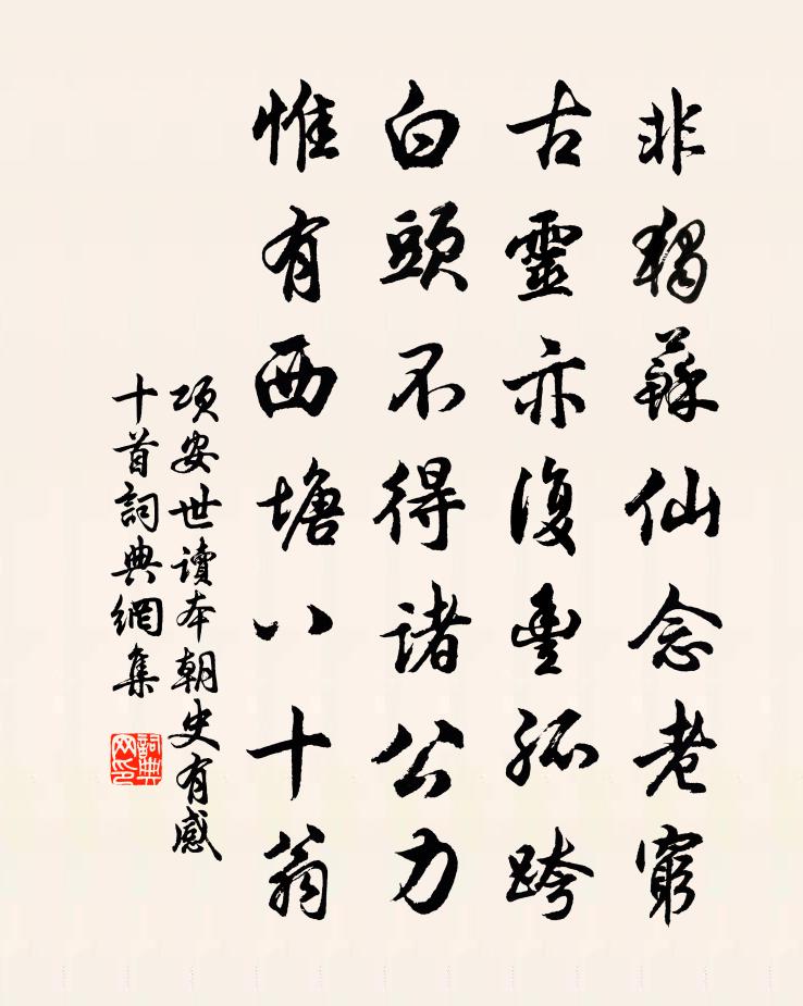 詩詞名句歷史字典書法欣賞書法字典國語詞典說文解字康熙字典古漢語字典標 題 作 者 詩 句 讀本朝史有感十首作者:項安世 朝代:宋代讀本朝史有感十首原文非獨蘇仙念老窮,古靈亦復豐孤跨。白頭不得諸公力,惟有西塘八十翁。詩詞問答問:讀本朝史有感十首的作者是誰?答:項安世問:讀本朝史有感十首寫於哪個朝代?答:宋代項安世讀本朝史有感十首書法欣賞讀本朝史有感十首書法作品詩詞推薦偈頌六十五首釋普濟〔宋代〕去日炎威重,歸時秋半過。林間坐盤石,不覺笑呵呵。不笑仰山插鍬叉手,不笑地藏博飯栽田。二勝米料人人有,舍後丈地令人植花種竹悶則邀清風明月盡醉而華岳〔宋代〕有地都來一丈余,墾鋤元不費工夫。匝牆先種竹三本,繞檻卻栽花數株。風伯喚來煩解佩,月娥邀得醉攜壺。憑君敘懷張蠙〔唐代〕月里路從何處上,江邊身合幾時歸。十年九陌寒風夜,夢掃蘆花絮客衣。寄鸕鶿源方允迪江子我朱翌〔宋代〕世間豺虎正爭岐,隱去可妨九曲迷。懷人夢到北山北,卜鄰意欲西枝西。麥雲已有飽氣象,梅雨又煩詩品題。他日水龍吟(浮翠山房擬賦白蓮)呂同老〔宋代〕素肌不污天真,曉來玉立瑤池裡。亭亭翠蓋,盈盈素靨,時妝淨洗。太液波翻,霓裳舞罷,斷魂流水。甚依然、舊贈浦城陳貢士適劉克莊〔宋代〕聞與先師是切鄰,束書無定橐裝貧。不辭遠道長為客,未有荒山可掩親。石槨懸知非爾力,麥舟今豈乏斯人。吾聞傷裴錄事喪子王勃〔唐代〕蘭階霜候早,松露穸台深。魄散珠胎沒,芳銷玉樹沉。露文晞宿草,煙照慘平林。芝焚空嘆息,流恨滿籝金。縱筆陸游〔宋代〕溫溫地爐紅,皎皎紙窗白。忽聞啄木聲,疑是敲門客。別次山館中諸客羅公升〔宋代〕德星光照鬥牛野,我亦沙鷗尾鳳鸞。聚首自憐我輩在,畫眉莫與世人看。正平幸作忘年好,靈運那知入社難。明日過永濟橋二首邵雍〔宋代〕一水一溪門,溪門雲復屯。珍禽轉喬木,幽鹿走荒榛。雨腳拖平地,稻畦扶遠村。高城半頹缺,興廢事休論。縣齋十詠古植槐寧參〔宋代〕誰知深固久,根怪蟄龍形。自著三冬市,空懷八命庭。餘清蟬始噪,茂綠雨初經。未便慚群木,猶憐桂有馨。至後承元煇見和複次韻書病中近況十首方回〔宋代〕病來諸事懶,於世百無求。古帙蟫吞字,閒鞍鼠斷秋。佳招差可謝,新詠決須酬。耳聵頭昏極,君詩到即瘳。五峰合澗詩稽留峰釋遵式〔宋代〕武林神仙宅,代有隱者游。谷靜雲性閒,源長水涵幽。吾居餘十年,自足忘百憂。豈嚼不死草,夙陪無生儔。道慚白雲林通〔宋代〕雙溪會處創危亭,我愛亭成不異名。到此更誰分別派,同歸終見入東瀛。清輝黛染環檐色,幽響琴傳出澗聲。自信次韻朱秀才二首陳造〔宋代〕蕭齋愁興倩誰寬,寵鶴昂霄顧羽翰。自昔詩深知武諤,肯辭雨濕過蘇端。心期落落空軒豁,世事悠悠拙控摶。正枕送別荊南張判官獨孤及〔唐代〕輶車駱馬往從誰,夢浦蘭台日更遲。欲識桃花最多處,前程問取武陵兒。題航子王安石〔宋代〕愛此江邊好,留連至日斜。眠分黃犢草,坐占白鷗沙。歲暮偶書寄蘇台舊僚友王禹偁〔宋代〕吳門吏隱過三年,何事陶潛捧詔還。步武已趨龍尾道,夢魂猶憶虎丘山。花開茂苑誰同醉,雪滿梁園獨掩關。會待過涇邑水西縣尹先伯祖嘗為邑簿領耆儒有識者吳龍翰〔宋代〕客里身無事,乘閒過水西。清波明白鷺,綠樹帶黃鸝。酤酒道旁飲,吟詩石上題。邑中逢舊故,坐定說環溪。王郎中妓席五詠舞顧況〔唐代〕汗浥新裝畫不成,絲催急節舞衣輕。落花繞樹疑無影,回雪從風暗有情。名句推薦歸雲一去無蹤跡,何處是前期?柳永《少年游·長安古道馬遲遲》 竹喧歸浣女,蓮動下漁舟。王維《山居秋暝》 與君別。相思一夜梅花發。房舜卿《憶秦娥·與君別》 守真志滿,逐物意移。周興嗣《千字文·全文》 非學無以廣才,非志無以成學。諸葛亮《誡子書》 前慮不定,後有大患。司馬遷《史記·蘇秦列傳》 外舉不避仇,內舉不避子。韓非及後人《韓非子·外儲說左下》 乍暖還輕冷。張先《青門引·春思》 平皋行雁下,曲渚雙鳧出。崔元翰《奉和聖制重陽旦日百寮曲江宴示懷》 祿不患其不來,患祿來,而不能無愧其祿。王永彬《圍爐夜話·第四四則》
