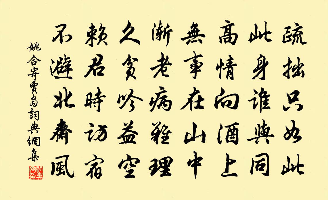 詩詞名句歷史字典書法欣賞書法字典國語詞典說文解字康熙字典古漢語字典標 題 作 者 詩 句 寄賈島作者:姚合 朝代:唐代寄賈島原文疏拙只如此,此身誰與同。高情向酒上,無事在山中。漸老病難理,久貧吟益空。賴君時訪宿,不避北齋風。詩詞問答問:寄賈島的作者是誰?答:姚合問:寄賈島寫於哪個朝代?答:唐代姚合寄賈島書法欣賞寄賈島書法作品注釋全唐詩:卷497-76詩詞推薦遊春詞二首王涯〔唐代〕曲江綠柳變煙條,寒谷冰隨暖氣銷。才見春光生綺陌,已聞清樂動雲韶。經過柳陌與桃蹊,尋逐春光著處迷。鳥度【中呂】陽春曲 贈茶肆李德載〔元代〕茶煙一縷輕輕,攪動蘭膏四座香,烹煎妙手賽維揚。非是謊,下馬試來嘗。 黃金碾畔香塵細,碧玉甌中白雪和唐戶古律三首姜特立〔宋代〕雋譽早知畏,佳篇今見蒙。麼響去寂,正聲日隆隆。愛君甘苦外,與我嗜好同。不妨時袖句,共作聖賢中。峽山飛來寺章得象〔宋代〕澄江詰曲峽中天,遠使歸時駐畫船。久別忽經星一紀,暫來才見月三弦。勞生草草真徒爾,陳跡依依亦愴然。回首老疾戲自贈陸游〔宋代〕年過七十日夜衰,羸然骨立不支持。一身百病作無時,飯且不足那論醫。鏡中之人定是誰,面骨突兀鬢成絲。買棺四明山詩石窗陸龜蒙〔唐代〕石窗何處見,萬仞倚晴虛。積靄迷青瑣,殘霞動綺疏。山應列圓嶠,宮便接方諸。只有三奔客,時來教隱書。次韻王司理二首項安世〔宋代〕它鄉異縣歘相逢,岐國家聲聾貸崧。仕宦一生無去國,周旋四世不言功。太平時節司文事,滿世交遊盡至公。若把寄范石湖五首王阮〔宋代〕彭澤歸來我自安,壺中尤覺太虛寬。世間萬事都忘盡,只有公盟不敢寒。蘇武柴望〔宋代〕十九年間不辱君,論功何獨後諸臣。若教倒數凌煙像,也是當時第一人。橫吹曲辭。隴頭水於濆〔唐代〕借問隴頭水,終年恨何事。深疑嗚咽聲,中有徵人淚。昨日上山下,達曙不能寐。何處接長波,東流入清渭。寄劉秀才釋重顯〔宋代〕遠遠飛來一幅書,愈風誠重複何如。相逢相見未期日,目斷千山插太虛。安吉天寧寺聞磬施肩吾〔唐代〕玉磬敲時清夜分,老龍吟斷碧天雲。鄰房逢見廣州客,曾向羅浮山里聞。吳斗南架閣求夢芳亭詩周必大〔宋代〕屈平流放楚江皋,蕭艾叢中思鬱陶。君是國香人服媚,詩情端合反離騷。偶成李流謙〔宋代〕人生偶爾竟何須,點檢閒身一事無。可笑戰蝸猶曳甲,不妨夢蟻卻分符。夜涼白月誰相過,酒盡清樽可更沽。作個讀《山海經》 其二陶淵明〔魏晉〕玉台凌霞秀,王母怡妙顏。天地共俱生,不知幾何年。靈化無窮已,館宇非一山。高酣發新謠,寧效俗中言!邠風陸游〔宋代〕少學詩三百,邠風最力行。春前耕犢健,節近祭豬鳴。檐日桑榆暖,園蔬風露清。金丹不須問,持此畢吾生。題越觀和方孚若韻李曾伯〔宋代〕檐陰寂寂轉西遲,檢點春工倍費詩。煙樹郁蒼何處洞,雨苔斑駁舊人碑。清泉白石仙遊地,芳草綠陰晴晝時。目送送淮士陳文席見四川陳制參劉克莊〔宋代〕漢家募擊匈奴者,此士如何未見收。聞說將軍能揖客,安知定遠不封侯。羊腸九折誰雲險,駿骨千金豈易酬。自古酬司空璲少府高適〔唐代〕飄颻未得意,感激與誰論。昨日遇夫子,仍欣吾道存。江山滿詞賦,札翰起涼溫。吾見風雅作,人知德業尊。驚飆洞仙歌(對雨思友)蔣捷〔宋代〕世間何處,最難忘杯酒。惟是停雲想親友。此時無一盞,千種離愁,西風外,長伴枯荷衰柳。去年深夜語,傾倒書名句推薦月傍苑樓燈影暗,風傳閣道馬蹄回。王守仁《元夕二首》 鎮日思歸歸未得,孤負殷勤杜宇。王瀾《念奴嬌·避地溢江書於新亭》 一丈夫兮一丈夫,千生氣志是良圖。李泌《長歌行》 天涯倚樓新恨,楊柳幾絲碧。晏幾道《六么令·雪殘風信》 數萼初含雪,孤標畫本難。崔道融《梅花》 願借天風吹得遠,家家門巷盡成春。李方膺《題畫梅》 薊庭蕭瑟故人稀,何處登高且送歸。王之渙《九日送別》 枯木逢春猶再發,人無兩度再少年。佚名《增廣賢文·上集》 細影將圓質,人間幾處看。薛濤《月》 春夢醒來么?對春帆細雨,獨自吟喔。譚嗣同《望海潮·自題小影》
