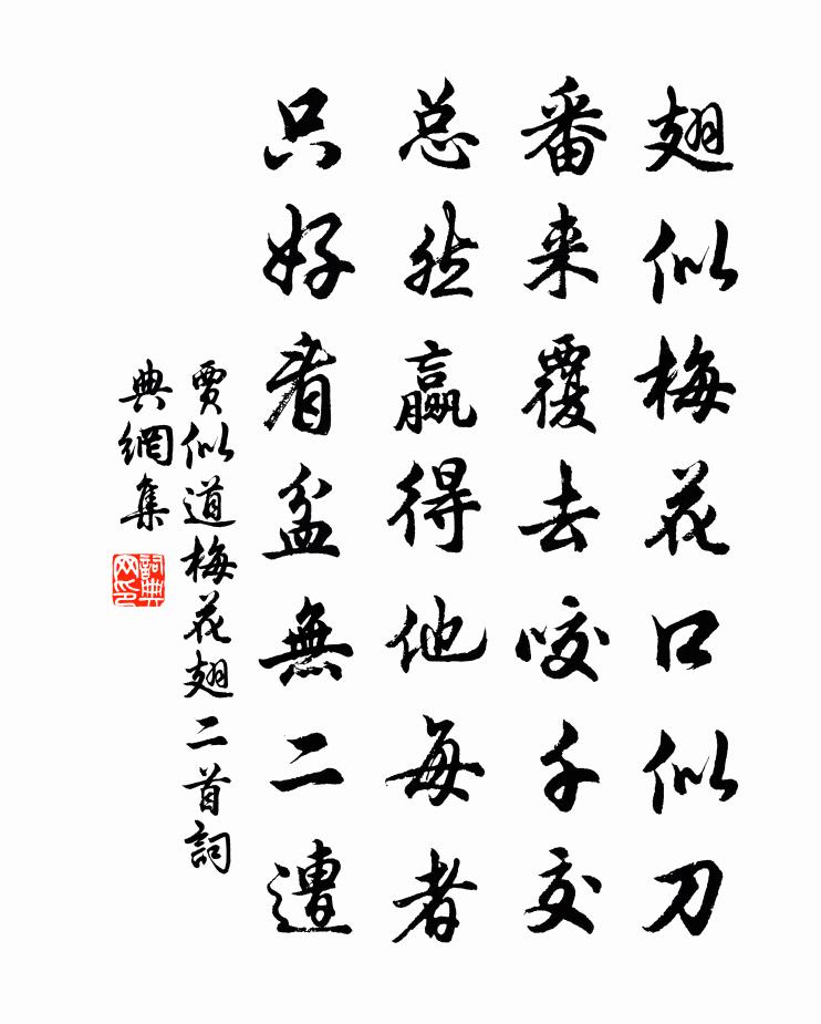 詩詞名句歷史字典書法欣賞書法字典國語詞典說文解字康熙字典古漢語字典標 題 作 者 詩 句 梅花翅二首作者:賈似道 朝代:宋代梅花翅二首原文翅似梅花口似刀,番來覆去咬千交。總然贏得他每者,只好看盆無二遭。詩詞問答問:梅花翅二首的作者是誰?答:賈似道問:梅花翅二首寫於哪個朝代?答:宋代賈似道梅花翅二首書法欣賞梅花翅二首書法作品詩詞推薦王德言樞密生日十首曹勛〔宋代〕骨相霜筠與雪松,高才直節固無同。向來舉似他時貴,聲出丹田踵息中。楊柳枝溫庭筠〔唐代〕金縷毿毿碧瓦溝,六宮眉黛惹香愁。晚來更帶龍池雨,半拂欄乾半入樓。頌古二十九首釋師體〔宋代〕克己堂前開飯店,股肱屋裡販揚州。頭戴草鞋呈醜拙,湊成一段好風流。金應第一百一十文天祥〔宋代〕追隨三十載,艱難愧深情。何處埋爾骨,呼號傍孤城。紀行雜詩李洪〔宋代〕支流二水繞山城,瀟灑桐廬舊得名。好在鳥籠山靄里,眼生詩句易詩成。韓乾二馬圖朱翌〔宋代〕飛龍翔麟夜不關,房星之精下人間。一鳴墮地勢千里,四十萬匹中如山。皇天生此意何在,天意在平百蠻。百蠻款清明日欲宿石門,未到而風雨大作,泊靈星小楊萬里〔宋代〕風雨來從海外天,靈星海里泊樓船。坐吟苦句斟愁酒,也是清明過一年。宴清都何籀〔宋代〕細草沿階軟。遲日薄,蕙風輕藹微暖。春工靳惜,桃紅尚小,柳芽猶短。羅幃繡幕高卷。又早是、歌慵笑懶。憑畫春日雜興十首秦觀〔宋代〕寢瘵倦文史,駕言從遨嬉。颸風舉遙漵,規日麗清漪。含桃粲朱實,杜若懷碧滋。娉娉弱絮墮,圉圉文魴馳。明霞洞仙歌令/洞仙歌歐陽修〔宋代〕情知須病,奈自家先肯。天甚教伊恁端正。憶年時、蘭棹獨倚春風,相憐處、月影花光相映。別來憑誰訴,空寄香石孫偶中童科程弟有詩次韻方岳〔宋代〕衰暮安能六出奇,桐孫賴出嶧陽枝。九經庫謾無遺讀,千里駒寧不受羈。薄命久遭時俗熊,此心莫倚老天知。待歸東岡曉雪釋文珦〔宋代〕蕭蕭夜來雪,失卻登山徑。曉望東見聞頭,寒花滿松頂。送郭季勇同年歸衡山范成大〔宋代〕天壞郭有道,文獻今在茲。啄喙家雞群,見子野鶴姿。塵籠萬里心,擇食中夜飢。拙宦避捷徑,瘴風吹鬢絲。平生閒居六詠早起岳珂〔宋代〕五夜玉繩轉,雙轤金井寒。背人蚊作市,欺夢蟈鳴官。竹逕風初度,松梢月尚團。踞龜猶汗漫,何計覓乘鸞。題涌月亭二首黃子善〔宋代〕星河耿耿障雲披,劍氣崢嶸徹紫微。輪輾碧空凌象緯,波翻清影射窗扉。寒光照夜潛蛟動,皓色穿林宿鳥飛。草樹頌古四十八首釋慧開〔宋代〕了身何似了心休,了得心兮身不愁。若也身心俱了了,視仙何必更封侯。八月十四至十六日無月二首郭印〔宋代〕不見團圓桂景森,清輝一片本常今。欲看靜夜千家晝,先掃長空萬里陰。宇宙光明思佛掌,兒童嚬蹙見人心。茫茫沁園春程節齋〔宋代〕髧彼兩髦,未幾見兮,突而弁兮。記昔年犀玉,奇資秀質,今朝簪佩,豐頰修眉。滿面春風,一團和氣,發露胸中仲舅敷文閣學士汪公輓詞樓鑰〔宋代〕籍甚牢之舅,難追宅相風。惟公能愛我,獨我最知公。潭府書無繼,西州事已空。形容盡心力,庶或慰幽宮。齊天樂丁默〔宋代〕倦雲休雨風還作,交相醒花蘇柳。字滿吟灰,痕添坐席,贏得新愁痴守。歸期未有。負小院移蘭,故園嘗韭。謾道名句推薦足國之道:節用裕民,而善臧其餘。荀子《荀子·富國》 對菊難逢元亮酒,登樓愧乏仲宣才。秋瑾《九日感賦》 日夕北風緊,寒林噤暮鴉。大須《暮雪》 船動湖光灩灩秋,貪看年少信船流。皇甫松《採蓮子·船動湖光灩灩秋》 逞奸謀事,事難必其穩重,可惜他徒自壞心。王永彬《圍爐夜話·第五一則》 樓倚霜樹外,鏡天無一毫。杜牧《長安秋望》 春色邊城動,客思故鄉來。何遜《邊城思》 信宿漁人還泛泛,清秋燕子故飛飛。杜甫《秋興八首》 猶喜閏前霜未下,菊邊依舊舞身輕。司空圖《白菊三首》 吳王好劍客,百姓多創瘢;楚王好細腰,宮中多餓死。司馬光《資治通鑑·漢紀·漢紀三十八》