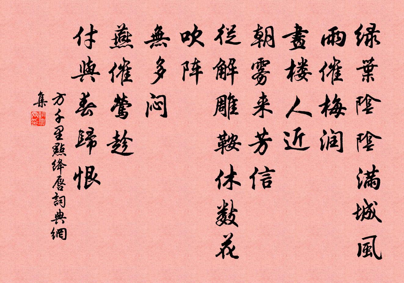- 樓殿無人春畫長。燕子歸來依舊忙。謝克家《憶君王·依依宮柳拂宮牆》