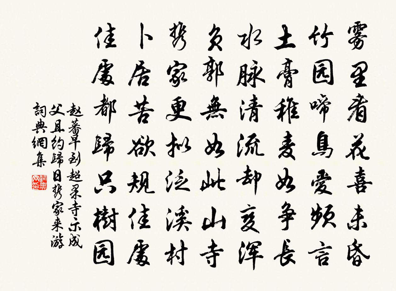 詩詞名句歷史字典書法欣賞書法字典國語詞典說文解字康熙字典古漢語字典標 題 作 者 詩 句 早到超果寺示成父且約歸日攜家來游作者:趙蕃 朝代:宋代原文霧裡看花喜未昏,竹園啼鳥愛頻言。土膏稚麥如爭長,水脈清流卻變渾。負郭無如此山寺,攜家更擬泛溪村。卜居苦欲規佳處,佳處都歸只樹園。詩詞問答問:《早到超果寺示成父且約歸日攜家來游》的作者是誰?答:趙蕃問:該詩寫於哪個朝代?答:宋代書法欣賞早到超果寺示成父且約歸日攜家來游書法作品詩詞推薦策杖陸游〔宋代〕山翁老病入腰膂,坐覺諸兒行步奔。暫出衡門須策杖,千回上樹更堪論!使東川夜深行元稹〔唐代〕夜深猶自繞江行,震地江聲似鼓聲。漸見戍樓疑近驛,百牢關吏火前迎。西堂假山孔武仲〔宋代〕范蠡不歸吳,魯連東泛海。當其縱目時,長有青山在。我今囚一官,宅舍不容改。塵囂日侵陵,視聽乏爽塏。天機次季奕見懷趙蕃〔宋代〕雨腳何其厚,雲頭不易空。病憐山叟甚,詩喜故人通。慰藉殷勤里,吟喔悵望中。地爐無熱火,林屋但鳴風。謝池春陸游〔宋代〕賀監湖邊,初系放翁歸棹。小園林、時時醉倒。春眠驚起,聽啼鶯催曉。嘆功名、誤人勘笑。朱橋翠徑,不許京塵東掖四絕句隔塵亭石象之〔宋代〕山椒亭榭適徘徊,病膜煩襟斗頓開。若有塵埃何處隔,此中自是少塵埃。瓊花劉學箕〔宋代〕團簇毓英玉碎圓,露稀日暖欲生煙。親從后土分奇種,不是人間聚八仙。淳熙四年二月既望靜江守臣張某奉詔勸農於郊張栻〔宋代〕嗟樂父老,其告其喻。爾之有生,君實覆汝。梅花滕岑〔宋代〕色香其實無與比,摹寫百端良可嗟。我今與下語一則,此是梅花非別花。大夫松錢聞詩〔宋代〕秦皇昔上上霄峰,正恐行行憩此松。莫道大夫惟爵五,誤恩疑更有加封。西湖雜詩黃任〔清代〕畫羅紈扇總如雲,細草新泥簇蝶裙。孤憤何關兒女事,踏青爭上岳王墳!到家寄季承二首趙蕃〔宋代〕向來已念修途苦,還家作況初無愈。嬌兒失乳索飯啼,病妻服藥思鹿脯。關心藥裹詩自廢,無復吟喔繼朝暮。與君送張無夢歸天台夏竦〔宋代〕玉格功成碧詔遲,御風千里款黃扉。旋紆蘭佩朝丹禁,卻捧雲章入翠微。綠蘊星辰藏古篆,絳宮龍虎閉神扉。東門贈嚴黎二師趙蕃〔宋代〕往者聞三益,今焉欠一夔。寄詩曾並達,得報乃相遺。自說斯人死,尤懷一見思。高樓雖物外,好句必天涯。渺渺山中楚辭江淹〔南北朝〕魂兮歸來。異方不可以親。蝮蛇九首。雄虺戴鱗。炎穴一光。骨爛魂傷。玄狐曳尾。赤象為梁。至日歸來。無往此婆羅門引(趙晉臣敷文張燈甚盛,索賦。偶憶舊遊,未章因及之)辛棄疾〔宋代〕落星萬點,一天寶焰下層霄。人間疊作仙鰲。最愛金連側畔,紅粉裊花梢。更鳴鼉擊鼓,噴玉 * 。曲江畫橋。記松明李復〔宋代〕亢龍泄流津,津融身自化。蒼鱗困摧剝,古鬣漸凋謝。無地逃斧斤,豈願耀深夜。萬牛空回首,躊躇嘆廣廈。冬日述懷魏野〔宋代〕癭枕閒欹葦箔褰,浩然情性雪晴天。卻嫌雛鶴饒聲氣,驚覺茅簷曝背眠。寄河陽察推駱員外釋希晝〔宋代〕郡齋鄰少室,夏木冷垂陰。況是多間日,應懸長臥心。角當中島起,檣背遠橋沈。獨愛南樓月,終期宿此吟。西樓晚眺張玉孃〔宋代〕向晚登高樓,簾妝樓上頭。白煙凝野水,望斷使人愁。名句推薦秋草六朝寒,花雨空壇。朱彝尊《賣花聲·雨花台》 夫為將之道,必順天、因時、依人以立勝也。諸葛亮《將苑·卷一·智用》 商葉墮乾雨,秋衣臥單雲。孟郊《秋懷十五首》 君到姑蘇見,人家盡枕河。杜荀鶴《送人游吳》 柳如眉,雲似發,鮫綃霧縠籠香雪。魏承班《漁歌子·柳如眉》 杯酒相延,今夕不應慳。陳著《江城子·中秋早雨晚晴》 久在樊籠里,復得返自然。陶淵明《歸園田居·其一》 人皆欲會說話,蘇秦乃因會說而殺身王永彬《圍爐夜話·第七則》 春風江上路,不覺到君家高啟《尋胡隱君》 易漲易退山溪水,易反易覆小人心。佚名《增廣賢文·上集》