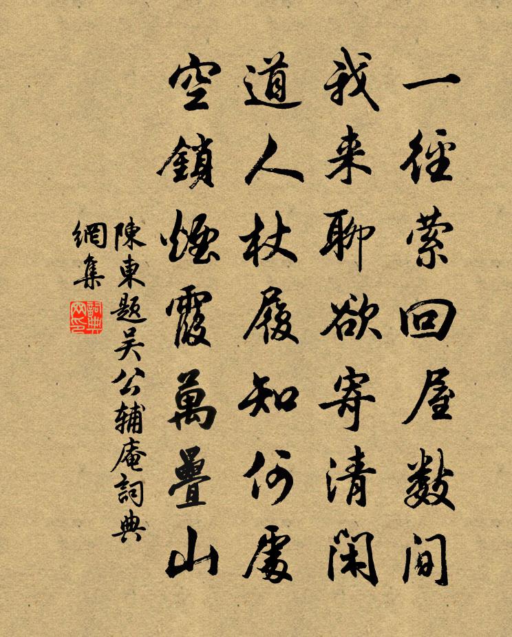 詩詞名句歷史字典書法欣賞書法字典國語詞典說文解字康熙字典古漢語字典標 題 作 者 詩 句 題吳公輔庵作者:陳東 朝代:宋代題吳公輔庵原文一徑縈迴屋數間,我來聊欲寄清閒。道人杖履知何處,空鎖煙霞萬疊山。詩詞問答問:題吳公輔庵的作者是誰?答:陳東問:題吳公輔庵寫於哪個朝代?答:宋代陳東題吳公輔庵書法欣賞題吳公輔庵書法作品詩詞推薦思佳客仇遠〔宋代〕東壁誰家夜搗砧。荊江流滯客偏閒。三三五五瀟湘雁,飛盡南雲入北雲。人獨自,月黃昏。青鐙紅蕊落繽紛。野篁次韻柳郎中二詠蘇頌〔宋代〕蒲條圍坐雪添瓶,側理糊窗熾炭明。常對圖書堆四壁,卻思裘褐勝雙旌。道心生後安休息,事局間來怕踐更。睡足治圃雜書二十首方回〔宋代〕圃事亦兒嬉,因成二十詩。似蒙神物助,堪作畫圖披。南面開書閣,東偏浚墨池。土功恐難極,莫可且隨宜。閨情孟浩然〔唐代〕一別隔炎涼,君衣忘短長。裁縫無處等,以意忖情量。畏瘦疑傷窄,防寒更厚裝。半啼封裹了,知欲寄誰將。卜運算元劉克莊〔宋代〕亂似盎中絲,密似風中絮。行遍茫茫禹跡來,底是無愁處。好客挽難留,俗事推難去。惟有翻身入醉鄉,愁欲來無夜歸周端臣〔宋代〕側側梅寒戀客衣,市樓燈比舊年稀。酒徒歌伴凋零盡,獨自吟詩月下歸。初發曲江溪中張九齡〔唐代〕溪流清且深,松石復陰臨。正爾可嘉處,胡為無賞心。我由不忍別,物亦有緣侵。自匪常行邁,誰能知此音。酬裴起居西亭留題(一作留贈)武元衡〔唐代〕艷歌能起關山恨,紅燭偏凝寒塞情。況是池塘風雨夜,不堪絲管盡離聲。初到曲江六首朱翌〔宋代〕嶺外山川最,天涯草木芬。曾經五月狩,俱被一琴薰。韶石靜張樂,舜峰高山雲。真同適魯見,何異在齊聞。獻王大夫方乾〔唐代〕高情不與俗人知,恥學諸生取桂枝。荀宋五言行世早,巢由三詔出溪遲。操心已在精微域,落筆皆成典誥詞。一鶚失調名佚名〔宋代〕柳絲只解風前舞。誚系惹、那人不住。到石樑觀瀑布袁枚〔清代〕天風肅肅衣裳飄,人聲漸小灘聲驕。知是天台古石橋。一龍獨跨山之凹,高聳脊背橫伸腰,其下嵌空走怒濤。濤水雪詩八首蘇軾〔宋代〕海風吹浪去無邊,倏忽凝為萬頃田。五月涼塵渴入肺,不知價值幾多錢。讀李忠愍文集劉子翬〔宋代〕英姿直節想堂堂,不忍偷生向擾攘。二帝蒙塵方幸虜,六臣奉璽更朝梁。身輕欲抗豺狼怒,名在終同日月光。曾與偈頌七十二首釋祖欽〔宋代〕層層落落影團團,切忌當陽著眼看。直下有無俱不立,白漫漫又黑漫漫。湘中雜詠十絕王炎〔宋代〕江樹疏疏兼密密,雲根怪怪復奇奇。風光冷落無人問,付與漁翁理釣絲。客邊 其三王冕〔元代〕飄蕩將何倚?淒涼不自禁。江湖千里夢,風雨五更心。遊子黃金印,幽人綠綺琴。渠方汩朝市,吾合老山林。次韻安撫侍郎勸耕喜雨之什度正〔宋代〕田家何所樂,所樂日未曛。男耕而禾稼,女桑而襦裙。面垢落塈塗,目眩濕薪熏。婦子饁南畝,詩人嘗云云。使車書帷陳宓〔宋代〕青編有補曾無損,白璧難全易作瑕。欲下涼帷玩真味,莫將絲履染塵沙。又和聞蛙楊萬里〔宋代〕春來真底好,此輩政縱橫。身作泥中計,聲從雨後增。北人餐未慣,南食限猶生。灰灑知虛實,於渠似可行。名句推薦物雖小,勿私藏。苟私藏,親心傷。李毓秀《弟子規·入則孝》 傷心庾開府,老作北朝臣。司空曙《金陵懷古》 此地一為別,孤蓬萬里征。李白《送友人》 琉璃鍾,琥珀濃,小槽酒滴真珠紅。李賀《將進酒》 黃雲連白草,萬里有無間。王鎡《塞上曲》 曉月暫飛高樹里,秋河隔在數峰西韓翃《宿石邑山中》 精於物者以物物,精於道者兼物物。荀子《荀子·解蔽》 君子而詐善,無異小人之肆惡;君子而改節,不若小人之自新。洪應明《菜根譚·概論》 不識廬山真面目,只緣身在此山中。蘇軾《題西林壁》 這次第,算人間沒個並刀,剪斷心上愁痕。黃孝邁《湘春夜月·近清明》