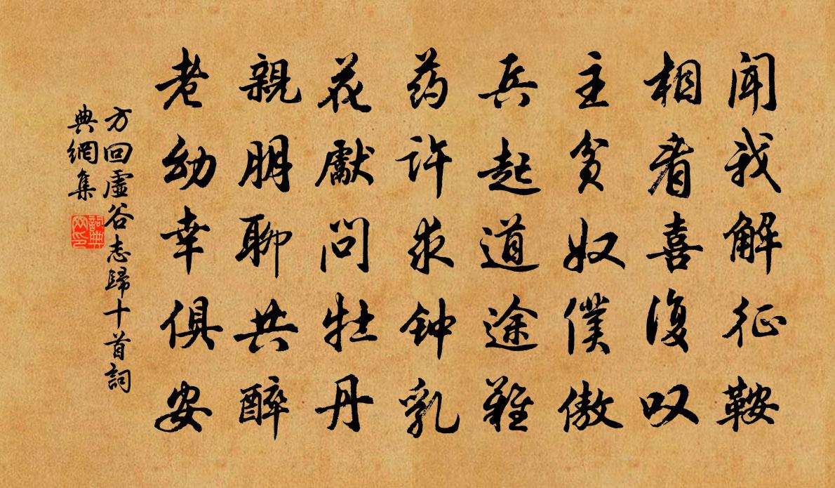 詩詞名句歷史字典書法欣賞書法字典國語詞典說文解字康熙字典古漢語字典標 題 作 者 詩 句 虛谷志歸十首作者:方回 朝代:宋代虛谷志歸十首原文聞我解征鞍,相看喜復嘆。主貧奴僕傲,兵起道途難。藥許求鍾乳,花先問牡丹。親朋聊共醉,老幼幸俱安。詩詞問答問:虛谷志歸十首的作者是誰?答:方回問:虛谷志歸十首寫於哪個朝代?答:宋代方回虛谷志歸十首書法欣賞虛谷志歸十首書法作品詩詞推薦曉起李商隱〔唐代〕擬杯當曉起,呵鏡可微寒。隔箔山櫻熟,褰帷桂燭殘。書長為報晚,夢好更尋難。影響輸雙蝶,偏過舊畹蘭。逢臘劉黻〔宋代〕一歲忽逢臘,倚闌清氣浮。雪飛浙山上,月照楚江頭。家遠易成夢,酒慳難散愁。讀書果何補,自笑不騎牛。攤破浣溪沙/山花子李清照〔宋代〕揉破黃金萬點輕。剪成碧玉葉層層。風度精神如彥輔,大鮮明。梅蕊重重何俗甚,丁香千結苦粗生。熏透愁人千里同群公題鄭少府田家(此公昔任白馬尉,今寄住滑台)高適〔唐代〕鄭侯應悽惶,五十頭盡白。昔為南昌尉,今作東郡客。與語多遠情,論心知所益。秋林既清曠,窮巷空淅瀝。蝶舞酬衛八雪中見寄高適〔唐代〕季冬憶淇上,落日歸山樊。舊宅帶流水,平田臨古村。雪中望來信,醉里開衡門。果得希代寶,緘之那可論。草張南史〔唐代〕草,草。折宜,看好。滿地生,催人老。金殿玉砌,荒城古道。青青千里遙,悵悵三春早。每逢南北離別,乍逐東遣興張鎡〔宋代〕笛簟疎明壓砌窗,重陰經日閉修廊。黃梅未長先愁雨,翠樹將成擬納涼。藏袖好書多便看,伏瓶生酒漸堪嘗。誰能古風其十五李白〔唐代〕燕昭延郭隗。遂築黃金台。劇辛方趙至。鄒衍復齊來。奈何青雲士。棄我如塵埃。珠玉買歌笑。糟糠養賢才。方知蘄步四絕句李流謙〔宋代〕燒紙船頭祭水神,杯盤燈火夜青熒。老巫得珓舟人喜,想像靈君醉未醒。詠史下樑武帝陳普〔宋代〕戒舍工夫老未員,百雙雞子送殘年。一生般若成何事,贏得江頭載荻船。跋丘宗卿侍郎見贈使北詩一軸楊萬里〔宋代〕太行界天二千里,清晨跳入寒窗底。黃河動地萬岳雷,卻與太行相趁來。青崖顛狂白波怒,老夫驚倒立不住。乃是沔水佚名〔先秦〕沔彼流水,朝宗于海。鴥彼飛隼,載飛載止。嗟我兄弟,邦人諸友。莫肯念亂,誰無父母?沔彼流水,其流湯湯。詩曹植〔魏晉〕君王禮英賢。不吝千金璧。從容冰井台。清池映華薄。馬上贈虛公權德輿〔唐代〕馬足早塵深,飄纓又滿襟。吾師有甘露,為洗此時心。德報怨 贈吳知綱馬鈺〔元代〕急性更為慢性。意靜自然心靜。憎愛兩俱忘。絕炎涼。虎繞龍蟠光瑩。丹結玉童邀請。舞袖出崑岡。赴蓬莊。梅花張玉孃〔宋代〕瀟漬石池邊,清標出自然。東風零亂後,蛻甲玉蜿蜒。志峽船具詩。百丈王周〔唐代〕少嘗侍先君,餘閒誦白氏。始得入峽詩,深味作詩旨。雲有萬仞山,雲有千丈水。自念坎壈時,尤多兢慎理。山束頌四賓主釋印肅〔宋代〕直須認得本來真,智機心知外道人。聯跡不留無對待,乾坤無不是吾身。贈夢得白居易〔唐代〕心中萬事不思量,坐倚屏風臥向陽。漸覺詠詩猶老醜,豈宜憑酒更粗狂。頭垂白髮我思退,腳蹋青雲君欲忙。只有書舍遣興二首王炎〔宋代〕山好晴邊出,風微雨後涼。憑欄幽鳥語,步屧草花香。塵事何時了,浮生有底忙。此身垂老大,不自決行藏。名句推薦除腹心之疾,而置諸股肱,何益?左丘明《左傳·哀公·哀公六年》 雲青青兮欲雨,水澹澹兮生煙。李白《夢遊天姥吟留別 / 別東魯諸公》 江南江北雪漫漫。遙知易水寒。向子諲《阮郎歸·紹興乙卯大雪行鄱陽道中》 中歲頗好道,晚家南山陲王維《終南別業》 少年射虎名豪,等閒赤羽千夫膳元好問《水龍吟·從商帥國器獵於南陽同仲澤鼎玉賦此》 若得山花插滿頭,莫問奴歸處。嚴蕊《卜運算元·不是愛風塵》 陌上深深,依舊年時轍。王國維《蝶戀花·滿地霜華濃似雪》 玉樹歌殘王氣終,景陽兵合戍樓空。許渾《金陵懷古》 邊兵春盡回,獨上單于台。張蠙《登單于台》 花近高樓傷客心,萬方多難此登臨。杜甫《登樓》