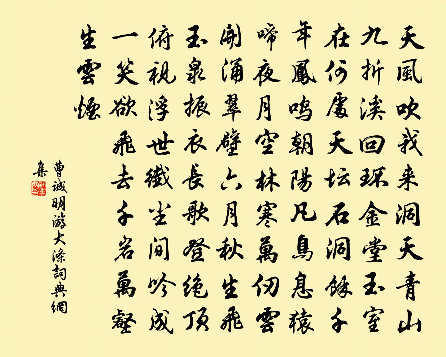 詩詞名句歷史字典書法欣賞書法字典國語詞典說文解字康熙字典古漢語字典標 題 作 者 詩 句 游大滌作者:曹誠明 朝代:宋代游大滌原文天風吹我來洞天,青山九折溪迴環。金堂玉室在何處,天壇石洞餘千年。鳳鳴朝陽凡鳥息,猿啼夜月空林寒。萬仞雲開涌翠壁,六月秋生飛玉泉。振衣長歌登絕頂,俯視浮世纖塵間。吟成一笑欲飛去,千岩萬壑生雲煙。詩詞問答問:游大滌的作者是誰?答:曹誠明問:游大滌寫於哪個朝代?答:宋代曹誠明游大滌書法欣賞游大滌書法作品詩詞推薦允傑侄以詩來卒章和予生孫次韻一百首今存四許月卿〔宋代〕山已幽幽墅更幽,幽居別墅盡居由。數間屋想今岑寂,萬斛船忻正拍浮。採藥幽居憐閉戶,圍棋別墅夢旭舟。明朝玉燭新(海棠)方千里〔宋代〕海棠初雨後。似露粉妝成,肉紅團就。太真帳里,春眠醒、緩蹙樓前宮漏。潮生酒暈,獨自倚、闌乾時候。吹鬢影五季梁主金朋說〔宋代〕弒君殺父亂綱常,弟戮其兄促滅亡。上下交片仁義絕,背違天理應難昌。冬柳陸龜蒙〔唐代〕柳汀斜對野人窗,零落衰條傍曉江。正是霜風飄斷處,寒鷗驚起一雙雙。盆池陸游〔宋代〕寒溜初通後,新荷未長時。誰持大圜鏡,為我照鬚眉?西塞山懷古劉禹錫〔唐代〕王濬樓船下益州,金陵王氣黯然收。千尋鐵鎖沈江底,一片降幡出石頭。人世幾回傷往事?山形依舊枕寒流。從今同遲賦千葉牡丹蘇轍〔宋代〕未換中庭三尺土,漫種數叢千葉花。造物不違遺老意,一枝頗似洛人家。名園不放尋芳客,陋巷希聞載酒車。未忍橫吹曲辭前出塞九首杜甫〔唐代〕戚戚去故里,悠悠赴交河。公家有程期,亡命嬰禍羅。君已富土境,開邊一何多。棄絕父母恩,吞聲行負戈。出門鶴沖天·黃金榜上柳永〔宋代〕黃金榜上,偶失龍頭望。明代暫遺賢,如何向。未遂風雲便,爭不恣游狂盪。何須論得喪?才子詞人,自是白衣卿懷明叔晚題趙蕃〔宋代〕室暗莫遽寢,庭空成漫行。蚊喧方夏聚,蟲咽已秋鳴。月淡星能著,雲疏電或明。可人非故乏,幽處莫能並。贊國清靈叟和尚真入北□祖師會釋紹曇〔宋代〕貌古神清,氣融性漫。用無準麻皮頭,瞎臨濟 * 眼。瘞焦山鶴,不假蓬塵。縛豐乾虎,只消錢貫。八怪七喬,十和門下殷侍郎新茶二十韻徐鉉〔唐代〕暖吹入春園,新芽競粲然,才教鷹嘴拆,未放雪花妍。荷杖青林下,攜筐旭景前。孕靈資雨露,鍾秀自山川。碾後送謝叔光姜特立〔宋代〕青陽迫殘臘,寒色滿江乾。我有採薪疾,君方行路難。來無十日款,去作一程寬。翌晚解鞍罷,親庭足笑歡。上帥漕閔雨十首彭龜年〔宋代〕九雨當一晴,燥濕未應革。那知平疇間,已作龜兆坼。宋頌九首聖神石介〔宋代〕聖機神謀,天秘地藏,風行雷動。旦秣我馬,夕取其疆。宿直宋祁〔宋代〕三重仙閣道家山,寓直由來恧素餐。漏近章溝先報暝,樹連溫省未知寒。蘭釭靜對朱花結,芒帙閒披白蠹乾。前膝促織論賦賈似道〔宋代〕促織鬭時人要主,貪財饒大蟲辛苦。總然贏得已著傷,當場必誤下鋒主。古漁父詞十二首王銍〔宋代〕得即歡欣失卻憂,死生輪轉暗相仇。那知垂釣非真釣,只在絲綸不在鉤。念奴嬌張孝祥〔宋代〕星沙初下,望重湖遠水,長雲漠漠。一葉扁舟誰念我,今日天涯飄泊。平楚南來,大江東去,處處風波惡。吳中何對鏡偶吟贈張道士抱元白居易〔唐代〕閒來對鏡自思量,年貌衰殘分所當。白髮萬莖何所怪,丹砂一粒不曾嘗。眼昏久被書料理,肺渴多因酒損傷。今日名句推薦看風流慷慨,談笑過殘年辛棄疾《八聲甘州·故將軍飲罷夜歸來》 但遠山長,雲山亂,曉山青。蘇軾《行香子·過七里瀨》 譬猶練絲,染之藍則青,染之丹則赤。王充《論衡·卷二·率性篇》 願為西南風,長逝入君懷。曹植《七哀詩》 清娥畫扇中,春樹鬱金紅。溫庭筠《清明日》 君馬黃,我馬白。李白《君馬黃》 雨荒深院菊,霜倒半池蓮。杜甫《宿贊公房》 清愁詩酒少,寒食雨風多。張鎡《寒食》 知章騎馬似乘船,眼花落井水底眠杜甫《飲中八仙歌》 綺席象床寒玉枕,美人何處醉黃花。汪元量《望江南·幽州九日》