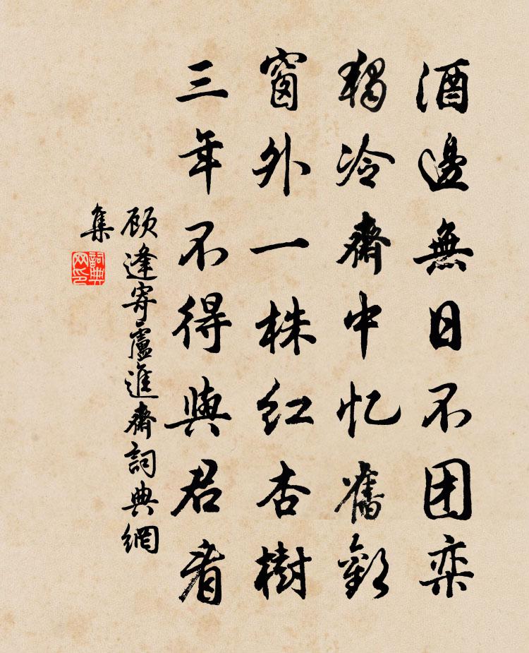 詩詞名句歷史字典書法欣賞書法字典國語詞典說文解字康熙字典古漢語字典標 題 作 者 詩 句 寄盧進齋作者:顧逢 朝代:宋代寄盧進齋原文酒邊無日不團欒,獨冷齋中憶舊歡。窗外一株紅杏樹,三年不得與君看。詩詞問答問:寄盧進齋的作者是誰?答:顧逢問:寄盧進齋寫於哪個朝代?答:宋代顧逢寄盧進齋書法欣賞寄盧進齋書法作品詩詞推薦滿庭芳 贊重陽真人出現馬鈺〔元代〕古郡登州,望仙門外,畫橋車馬難通。重陽師父,對眾顯家風。預說逢何必壞,經一紀、太守何公。嫌*峻,令人雨後思湖上居(─作雨中憶湖山居)許渾〔唐代〕前山風雨涼,歇馬坐垂楊。何處芙蓉落,南渠秋水香。句張良臣〔宋代〕腸斷江南一百五。玲瓏玉(半閒堂賦春雪)姚雲文〔宋代〕開歲春遲,早贏得、一白瀟瀟。風窗淅簌,夢驚金帳春嬌。是處貂裘透暖,任尊前回舞,紅倦柔腰。今朝。虧陶家次張子京游天王湖作鄭俠〔宋代〕湖上遲遲不忍還,談玄清徹幾重關。旋嵐野馬皆歸靜,逝鳥潛魚各自間。墜果露巢秋後樹,淡煙斜日晚來山。吟情善利閣次伯仁所題趙子良畫四首裘萬頃〔宋代〕扁舟兩漁翁,清唱發日暮。安得如鴟夷,相與五湖去。贈僧雲棲溫庭筠〔唐代〕麈尾與筇杖,幾年離石壇。梵余林雪厚,棋罷岳鍾殘。開卷喜先悟,漱瓶知早寒。衡陽寺前雁,今日到長安。送表兄東南遊周賀〔唐代〕山水疊層層,吾兄涉又登。掛帆春背雁,尋磬夜逢僧。雪溜懸衡岳,江雲蓋秣陵。評文永不忘,此說是中興。南浦黃庭堅〔宋代〕太守俱來此西山,樓觀重複半煙間。高僧置酒林泉處,南浦名區望沒環。與任城許主簿游南池(池在濟寧州境)杜甫〔唐代〕秋水通溝洫,城隅進小船。晚涼看洗馬,森木亂鳴蟬。菱熟經時雨,蒲荒八月天。晨朝降白露,遙憶舊青氈。題周廉彥所收李甲畫三首一鵲晁補之〔宋代〕鵲上林花妥逐鶯飛,愁絕江南雪裡時。嚄唶何須旁檐喜,毰毸相對兩寒枝。白鶴岩孫汝勉〔宋代〕梵宇深深小徑回,兩崖如削立崔嵬。直疑隱客曾吹裂,或是山靈為劈開。林靜煙空時透日,溪喧石老半侵苔。涼生吳景年真贊陳著〔宋代〕其容淵,其髯撳,其服野,其冠圜。是誰筆之得其粗焉,孰若見君於此筆之外,而知君於此筆之前。氣以直而肆,無題廖行之〔宋代〕州牧誰能舉,邦人願借情。聲名簡宸扆,恩信著湘城。龐統才何陋,班超策故平。何如今別駕,膏澤與江橫。水調歌頭呂渭老〔宋代〕其兄進道作水調歌頭一韻,幾二十首,讀之,殆不勝情。次其韻作一篇,懷其人,亦以贈元發、說道扁舟思獨往,奉使還至近畿先寄史院諸同舍二首蘇頌〔宋代〕書林輕別紫雲邊,軺傳重行北斗間。正類子卿悲異國,不同太史訪名山。鞍韂騰踏雙腨重,風日煎熬兩鬢班。待得興安縣傅若金〔元代〕亂峰如劍不知名,篁竹蕭蕭送驛程。轉粟未休灕水役,負戈猶發夜郎兵。百蠻日落朱旗暗,九嶺風來畫角清。空使南池夜宿,思王屋青蘿舊齋岑參〔唐代〕池上臥煩暑,不櫛復不巾。有時清風來,自謂羲皇人。天晴雲歸盡,雨洗月色新。公事常不閒,道書日生塵。早年萍釋可齋〔宋代〕盆池本不種青萍,春杪無根也自生。人道一宵生九葉,不知誰數得分明。已亥雜詩 137龔自珍〔清代〕故人有子尚饘粥,抱君等身大著作。劉向而後此大宗,豈同陳晁竟目錄。名句推薦回眸一笑百媚生,六宮粉黛無顏色。白居易《長恨歌》 今日漢宮人,明朝胡地妾。李白《王昭君二首》 如來是真語者。實語者。如語者。不誑語者。不異語者。鳩摩羅什譯《金剛經·離相寂滅》 灼灼野花香,依依金柳黃。佚名《菩薩蠻·霏霏點點回塘雨》 法莫如顯,而術不欲見韓非及後人《韓非子·難三》 寂寞柴門村落里,也教插柳記年華。趙元鎮《寒食書事》 酒盈杯,書滿架,名利不將心掛。李珣《漁歌子·荻花秋》 材愨者常安利,盪悍者常危害荀子《荀子·榮辱》 誰道人生無再少?門前流水尚能西!休將白髮唱黃雞。蘇軾《浣溪沙·游蘄水清泉寺》 墜粉飄香,日日喚愁生。盧祖皋《江城子·畫樓簾暮卷新晴》