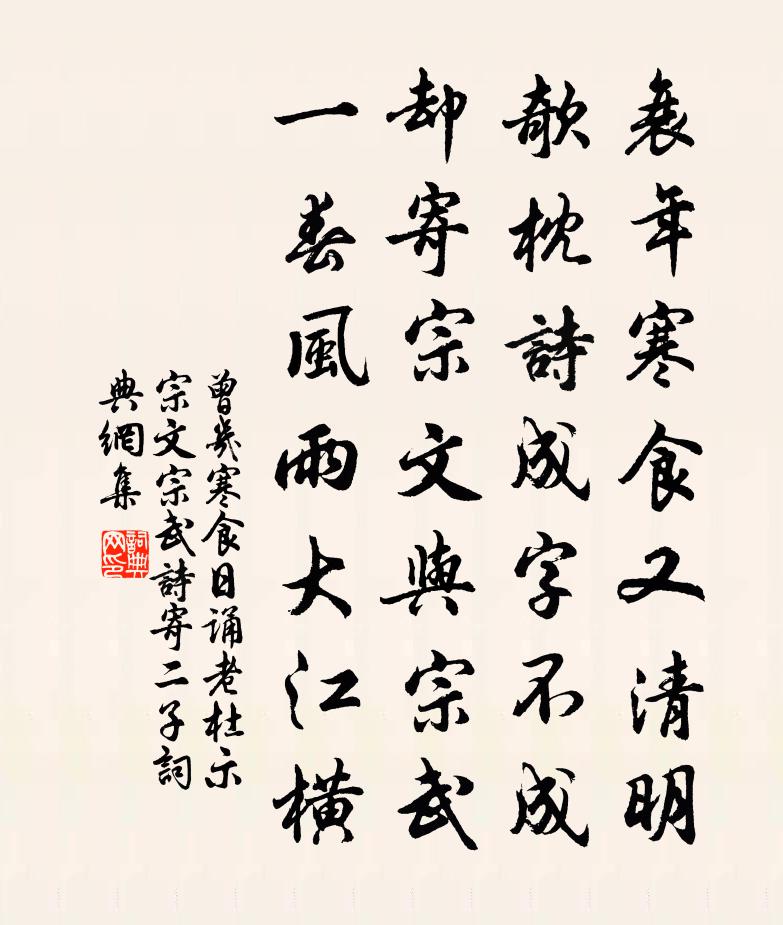 衰年寒食又清明,欹枕詩成字不成。卻寄宗文與宗武,一春風雨大江橫。