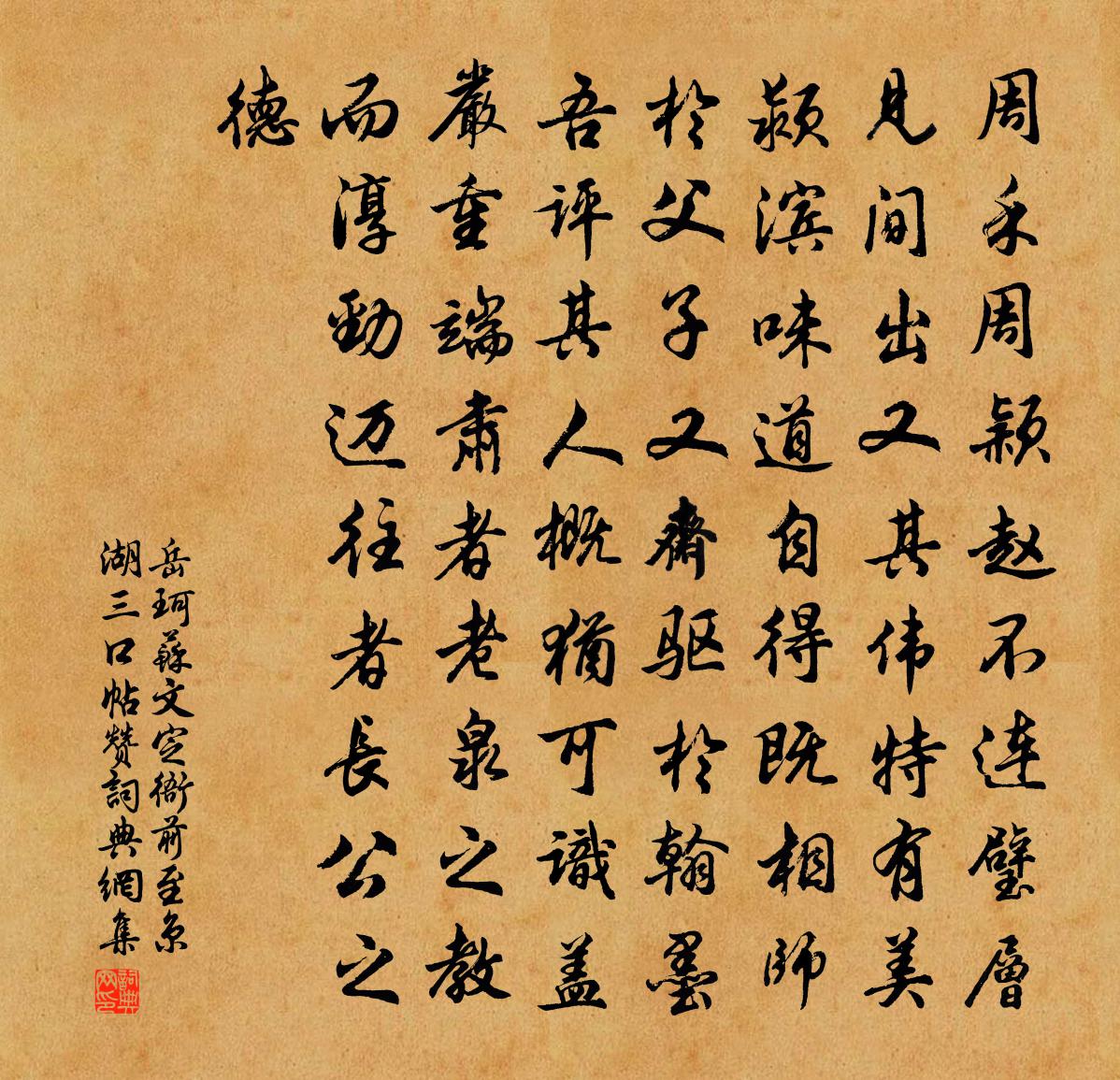 詩詞名句歷史字典書法欣賞書法字典國語詞典說文解字康熙字典古漢語字典標 題 作 者 詩 句 蘇文定衙前至京湖三口帖贊作者:岳珂 朝代:宋代蘇文定衙前至京湖三口帖贊原文周禾周穎,趙不連璧。層見間出,又其偉特。有美潁濱,味道自得。既相師於父子,又齋驅於翰墨。吾評其人,概猶可識。蓋嚴重端肅者老泉之教,而淳勁邁往者長公之德。詩詞問答問:蘇文定衙前至京湖三口帖贊的作者是誰?答:岳珂問:蘇文定衙前至京湖三口帖贊寫於哪個朝代?答:宋代岳珂蘇文定衙前至京湖三口帖贊書法欣賞蘇文定衙前至京湖三口帖贊書法作品詩詞推薦順陽張舜民〔宋代〕隱隱來山遠,茫茫去路平。舟車楚北戶,城塚漢南京。小杏沾花摘,春醪對雨傾。士民留我住,強作少陵行。答俞秀老王安石〔宋代〕諸偶緣安有,實相非相偶。雖神如季鹹,終亦失而走。臨邛怨李餘〔唐代〕藕花衫子柳花裙,多著沈香慢火熏。惆悵妝成君不見,空教綠綺伴文君。過三鶴山二絕洪咨夔〔宋代〕客路浪成千里繳,老懷虛過一春邀。落約剛被風扶起,恰與連雲石棧高。玉樓春·春思嚴仁〔宋代〕春風只在園西畔。薺菜花繁胡蝶亂。冰池晴綠照還空,香徑落紅吹已斷。 意長翻恨遊絲短。盡日相思羅帶緩。寶龍丁謂〔宋代〕不操千金寶,思觀九色虯。負圖鐘上聖,銜燭照窮幽。但仰飛天大,寧聞戰野憂。沃焦須霈澤,莫道我無求。九日次周義山汪元量〔宋代〕杜陵清瘦不禁寒,白髮蕭蕭強笑歡。階下決明難獨立,庭前甘菊好誰看。一錢留得囊羞澀,九日沽來酒帶酸。卻憶題隱者蘇翁事跡真德秀〔宋代〕魏公孤忠如孔明,赤手能支天柱傾。蘇公高節如子陵,寸膠解使黃河清。等是世間少不得,問津耦耕各其適。後人雪中偶成呈周明遠李洪〔宋代〕巽二初分北帝權,忽飄瑞葉表豐年。隨車逐馬難為比,入隙開簾絕可憐。凍鎖官梅枝裊娜,寒欺塞雁影聯翩。袁安櫂歌九章寄彭鶴林白玉蟾〔宋代〕鷗飛梅山前,翠中一點雪。何處種聲來,雲梢推上月。柳林酒家小樓陸游〔宋代〕桃花如燒酒如油,緩轡郊原當出遊。微倦放教成午夢,宿酲留得伴春愁。遠途始悟乾坤大,晚節偏驚歲月遒。記取思四明所居與桃紅渡相對晁說之〔宋代〕今朝旅恨到何處,軒窗直對桃花渡。桃花渡上風吹雨,道人芒屩誰來去。句葉廷珪〔宋代〕名字惟因佛書見,根苗應逐賈胡來。謝圓機送梅晁說之〔宋代〕何事新梅度玉溪,應憐泯默與詩題。少年曾賦宋開府,老大無如羯鼓迷。望海潮 真空王吉昌〔元代〕真空根蒂,全憑神息,分開五蘊精華。和暢六神,氤氳三島,天河浪泛靈槎。乾鼎煮丹砂。正雲駕坤牛,風送羊車讀史陸游〔宋代〕緗帙牙籤滿架書,流泉決決竹疏疏。人生得志寧無命?一室何妨且掃除。恭謁靈康祠下二首謝伋〔宋代〕婺女光分鄰土壤,赤城標建絕紛埃。叢祠祗事無終古,靈跡相傳有自來。屋上飛煙梧鼎熟,水邊迎棹度船回。大神次韻子文抱病幽居之作二首朱長文〔唐代〕幾年彩筆擅辭場,鬢髮相饒色更蒼。千里舊聞稱驥騄,九霄安得接鸞凰。醉憑淨幾拋烏帽,閒卷新詩置錦囊。治世過明智寺舒岳祥〔宋代〕每過明智寺,涉寺在山前。老衲分雲坐,山猿抱子眠。岩花紅雜雨,野水綠平田。火後傷心處,青山響杜鵑。大江東去劉志淵〔元代〕天元教顯,正金蓮朵朵,開遍時節。士庶官僚鹹仰奉,緣覺聲聞心說。悟者清涼,背之執惱,多口明真訣。諸人著名句推薦佇聽寒聲,雲深無雁影。周邦彥《關河令·秋陰時晴漸向暝》 睡起覺微寒。梅花鬢上殘。李清照《菩薩蠻·風柔日薄春猶早》 謀無主則困,事無備則廢。管仲《管子·霸言》 垂楊拂綠水,搖艷東風年。李白《折楊柳》 文章已滿行人耳,一度思卿一愴然。李忱《吊白居易》 去歲江南見雪時,月底梅花發。張孝祥《卜運算元·雪月最相宜》 善政得民財,善教得民心。孟子《孟子·盡心章句上·第十四節》 改章難於造篇,易字艱於代句劉勰《文心雕龍·附會》 精衛銜微木,將以填滄海。陶淵明《讀山海經·其十》 疑怪昨宵春夢好,元是今朝鬥草贏晏殊《破陣子·春景》
