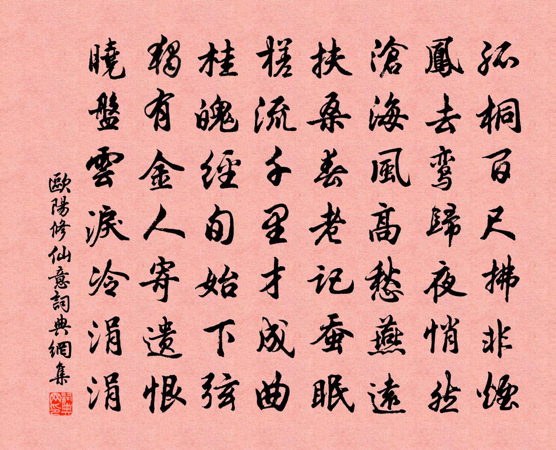 詩詞名句歷史字典書法欣賞書法字典國語詞典說文解字康熙字典古漢語字典標 題 作 者 詩 句 仙意作者:歐陽修 朝代:宋代仙意原文孤桐百尺拂非煙,鳳去鸞歸夜悄然。滄海風高愁燕遠,扶桑春老記蠶眠。槎流千里才成曲,桂魄經旬始下弦。獨有金人寄遺恨,曉盤雲淚冷涓涓。詩詞問答問:仙意的作者是誰?答:歐陽修問:仙意寫於哪個朝代?答:宋代問:歐陽修的名句有哪些?答:歐陽修名句大全歐陽修仙意書法欣賞仙意書法作品詩詞推薦春秋戰國門公子無忌周曇〔唐代〕按劍臨籠震咄呼,鷂甘梟戮伏鳩辜。能憐鈍拙誅豪俊,憫弱摧強真丈夫。殘句千層高閣侵雲漢蘇軾〔宋代〕千層高閣侵雲漢,雙派清流透石岩。木蘭花晏殊〔宋代〕紫薇朱槿繁開後。枕簟微涼生玉漏。玳筵初啟日穿簾,檀板欲開香滿袖。紅衫侍女頻傾酒。龜鶴仙人來獻壽。歡聲糖多令(答和梅府教)吳潛〔宋代〕鷗鷺水中洲,夕陽天際流。倚西風、底處危樓。若使中秋無好月,虛過了、一年秋。舉眼望雲頭。蟾光一線不。想游鼓山鄭應開〔宋代〕兩峰峻上半天開,一水爭奔急雪來。眺遠直疑滄海近,洞靈曲坳湧泉回。慨思南北江山異,更陟嵯峨宇宙恢。眇眇贈胡彥忠吳豐〔宋代〕古羊人物舜風餘,子姓傅來祗舊廬。為愛一門能守義,相承五世不分居。曲江鄭谷〔唐代〕細草岸西東,酒旗搖水風。樓台在煙杪,鷗鷺下沙中。翠幄晴相接,芳洲夜暫空。何人賞秋景,興與此時同。摸魚子 並引 至正戊子秋,吾兄中丞公以賜許有孚〔元代〕亭圮,垣危卉木伐,惟雙古檜在庭。徒具畚鍤,從事疏鑿,池廣袤千餘步,深一仞,形如桓圭。西橢二洲,東規一春近山中即事陸游〔宋代〕節物貧家有故常,春盤臘粥逐時忙。悠悠歲月催雙鬢,草草雞豚薦一觴。人意自殊平日樂,梅花寧減故時香?小園鄰亭真宋祁〔宋代〕蕊館何年記舊封,宴亭此日駐憑熊。佛螺近作臨窗岫,仙馭遙添拂衽風。談樹憩棠交結蔭,飛翬賀雀並翻空。使君王君猷花圃八絕若春姚勉〔宋代〕靜中見萬物,各各有春意。收拾入襟懷,陽和散天地。橫溪堂春曉二首虞似良〔宋代〕一把新秧趁手青,輕煙漠漠雨冥冥。東風染盡三千頃,白鷺飛來無處停。好事近樓采〔宋代〕人去玉屏間,逗曉柳絲風急。簾外杏花細雨,罥春紅愁濕。單衣初試麴塵羅,中酒病無力。應是繡床慵困,倚鞦韆三湘有懷蕭靜〔唐代〕柳絮飛來別洛陽,梅花落後到三湘。世情已逐浮雲散,離恨空隨江水長。客感和林石田汪元量〔宋代〕細柳和煙無溼雲,落花隨水送歸春。門東□□□應噪,江上白鷗誰肯馴。朱子不仁唐逆賊,□□□□誑漢忠。離亭和毛君州宅八詠 鳳凰山蘇轍〔宋代〕山川蟠跨偶成形,威鳳低回久未行。更種梧桐真可致,高飛性似伯夷清。甘州令(仙呂調)柳永〔宋代〕凍雲深,淑氣淺,寒欺綠野。輕雪伴、早梅飄謝。艷陽天,正明媚,卻成瀟灑。玉人歌,畫樓酒,對此景、驟增高【中呂】喜春來元好問〔金代〕春宴春盤宜剪三生菜,春燕斜簪七寶釵,春風春醞透人懷。春宴排,齊唱喜春來。梅殘玉靨香猶在,柳破金梢眼未少年游(長至日席上作)毛滂〔宋代〕遙山雪氣入疏簾。羅幕曉寒添。愛日騰波,朝霞入戶,一線過冰檐。綠尊香嫩蒲萄暖,滿酌破冬嚴。庭下早梅,已東流頓令罷官阻風示文有按風伯奏天閽之語答王安石〔宋代〕令尹犀舟失去期,憮然憑几占文移。勸君慎莫讒風伯,會有開帆破浪時。名句推薦天行有常,不為堯存,不為桀亡。應之以治則吉,應之以亂則凶。荀子《荀子·天論》 石壕村里夫妻別,淚比長生殿上多。袁枚《馬嵬》 劉郎已恨蓬山遠,更隔蓬山一萬重!李商隱《無題·來是空言去絕蹤》 秋菊有佳色,裛露掇其英。陶淵明《飲酒·其四》 人生自是有情痴,此恨不關風與月。歐陽修《玉樓春·尊前擬把歸期說》 小舟橫截春江,臥看翠壁紅樓起。蘇軾《水龍吟·閭丘大夫孝終公顯嘗守黃州》 意長翻恨遊絲短。盡日相思羅帶緩。嚴仁《玉樓春·春思》 遠路應悲春晼晚,殘霄猶得夢依稀。李商隱《春雨》 舊時王謝、堂前燕子,飛向誰家。吳激《人月圓·南朝千古傷心事》 東風不為吹愁去,春日偏能惹恨長。賈至《春思二首·其一》