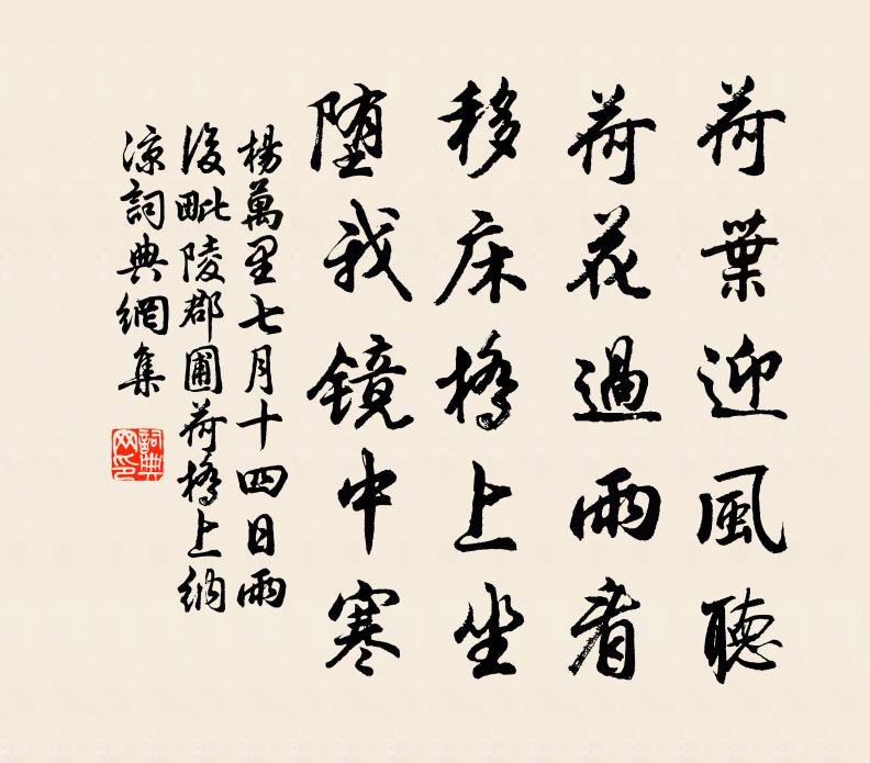 荷葉迎風聽,荷花過雨看。移床橋上坐,墮我鏡中寒。