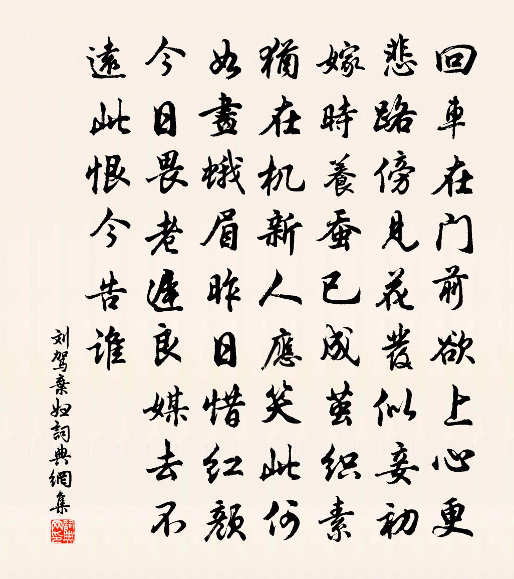 詩詞名句歷史字典書法欣賞書法字典國語詞典說文解字康熙字典古漢語字典標 題 作 者 詩 句 棄婦作者:劉駕 朝代:唐代棄婦原文回車在門前,欲上心更悲。路傍見花發,似妾初嫁時。養蠶已成繭,織素猶在機。新人應笑此,何如畫蛾眉。昨日惜紅顏,今日畏老遲。良媒去不遠,此恨今告誰。詩詞問答問:棄婦的作者是誰?答:劉駕問:棄婦寫於哪個朝代?答:唐代問:棄婦是什麼體裁?答:五古劉駕棄婦書法欣賞棄婦書法作品注釋全唐詩:卷585-46詩詞推薦諸人見和返魂梅再次韻曾幾〔宋代〕蠟炬高花半欲摧,斑斑小雨學黃梅。有時燕寢香中坐,如夢前村雪裡開。披拂故令攜袖滿,橫斜便欲映窗來。重簾句陶弼〔宋代〕劍待張華時已晚,榻延徐孺禮應疏。寄湯帳乾趙孟堅〔宋代〕鎖窗寂寞守燈熒,熟數陳蹤跡杳冥。已自無心雲淡淡,不應逐計鼠營營。發生最普惟春力,幽隱旁詔是月明。試品贈雲留道人張埴〔宋代〕往往諸公眼亦青,尚疑崔浩是前生。蚩尤墮地已為石,且道何時見景星。湖堤晚行俞灝〔宋代〕暝色才從草色生,管弦羅綺盡歸城。不應閒卻孤山路,我自扶藜月下行。和疊山到山陽郡學四詩王奕〔宋代〕齠時蠹簡剔殘灰,皓首誰知吻帶埃。負笈有機尊魯國,扣閽無力上燕台。茹芝四皓還須出,綿蕞兩生終不來。中道次周尚書八首許月卿〔宋代〕曾共芙蓉下視州,舊沖仍是醉鄉侯。半山相俟歸投老,若水公兮急退流。世事每觀強努力,人生何似大刀頭。摛文丹鳳吟楊 * 〔宋代〕荏苒秋光虛度,玩月池台,登高樓閣。風傳霜信,遍送曉寒侵幕。淒涼細雨,灑窗飄戶,漏永更長,枕單衾薄。夢陳季常所蓄《朱陳村嫁娶圖》二首蘇軾〔宋代〕我是朱陳舊使君,勸農曾入杏花村。而今風物那堪畫,縣吏催租夜打門。一叢花佚名〔宋代〕曉來寒露滴疏桐。室思徐幹〔魏晉〕思君見巾櫛,以益我勞勤。安得鴻鸞羽,覯此心中人。誠心亮不遂,搔首立悁悁。何言一不見,復會無因緣。故如王昭君張仲素〔唐代〕仙娥今下嫁,驕子自同和。劍戟歸田盡,牛羊繞塞多。小雨泛鏡湖陸游〔宋代〕吾州清絕冠三吳,天寫雲山萬幅圖。龍化廟梁飛白雨,鶴收仙箭下青蕪。菱歌嫋嫋遙相答,煙樹昏昏淡欲無。端辦郊廟歌辭。朝日樂章。迎神佚名〔唐代〕太陽朝序,王宮有儀。蟠桃彩駕,細柳光馳。軒祥表合,漢歷彰奇。禮和樂備,神其降斯。偈頌三十首釋慧暉〔宋代〕青山山上,白云云下。戶外水寒,波心船點。舍北野步仇遠〔宋代〕野步上西門,寬平又一村。疏籬圍古井,密樹擁高墳。家有田園樂,氓知守令尊。因思興廢事,變滅似秋雲。放鷺鷥李中〔唐代〕池塘多謝久淹留,長得霜翎放自由。好去蒹葭深處宿,月明應認舊江秋。春盡日白居易〔唐代〕芳景銷殘暑氣生,感時思事坐含情。無人開口共誰語,有酒回頭還自傾。醉對數叢紅芍藥,渴嘗一碗綠昌明[蜀茶南軒陸游〔宋代〕今年秋早涼,七月已蕭然。南軒修竹下,枕簟終日眠。時將半殘夢,聽此欲斷蟬。推枕起太息,四序忽已遷。功名和三鄉詩李昌鄴〔唐代〕紅粉蕭娘手自題,分明幽怨發雲閨。不應更學文君去,泣向殘花歸剡溪。名句推薦坐愁群芳歇,白露凋華滋。李白《秋思》 清水出芙蓉,天然去雕飾。李白《經亂離後天恩流夜郎憶舊遊書懷贈江夏韋太守良宰》 颯颯西風滿院栽,蕊寒香冷蝶難來。黃巢《題菊花》 商女不知亡國恨,隔江猶唱後庭花。杜牧《泊秦淮》 雪裡已知春信至。寒梅點綴瓊枝膩。李清照《漁家傲·雪裡已知春信至》 浮雲遮月不分明,誰挽長江一洗放天青?董士錫《虞美人·韶華爭肯偎人住》 淥水明秋月,南湖采白蘋。李白《淥水曲》 靜女其姝,俟我於城隅。佚名《靜女》 矜高倨傲,無非客氣降伏得,客氣下而後正氣伸洪應明《菜根譚·概論》 夢後樓台高鎖,酒醒簾幕低垂。晏幾道《臨江仙·夢後樓台高鎖》