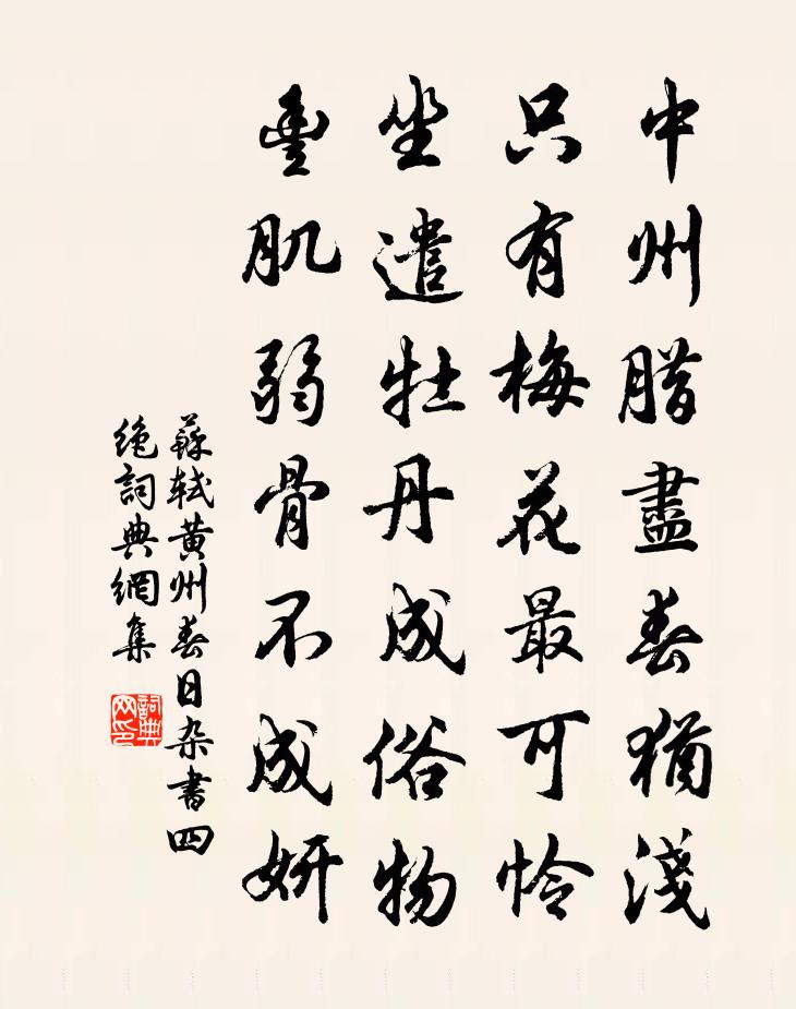 中州臘盡春猶淺,只有梅花最可憐。坐遣牡丹成俗物,豐肌弱骨不成妍。