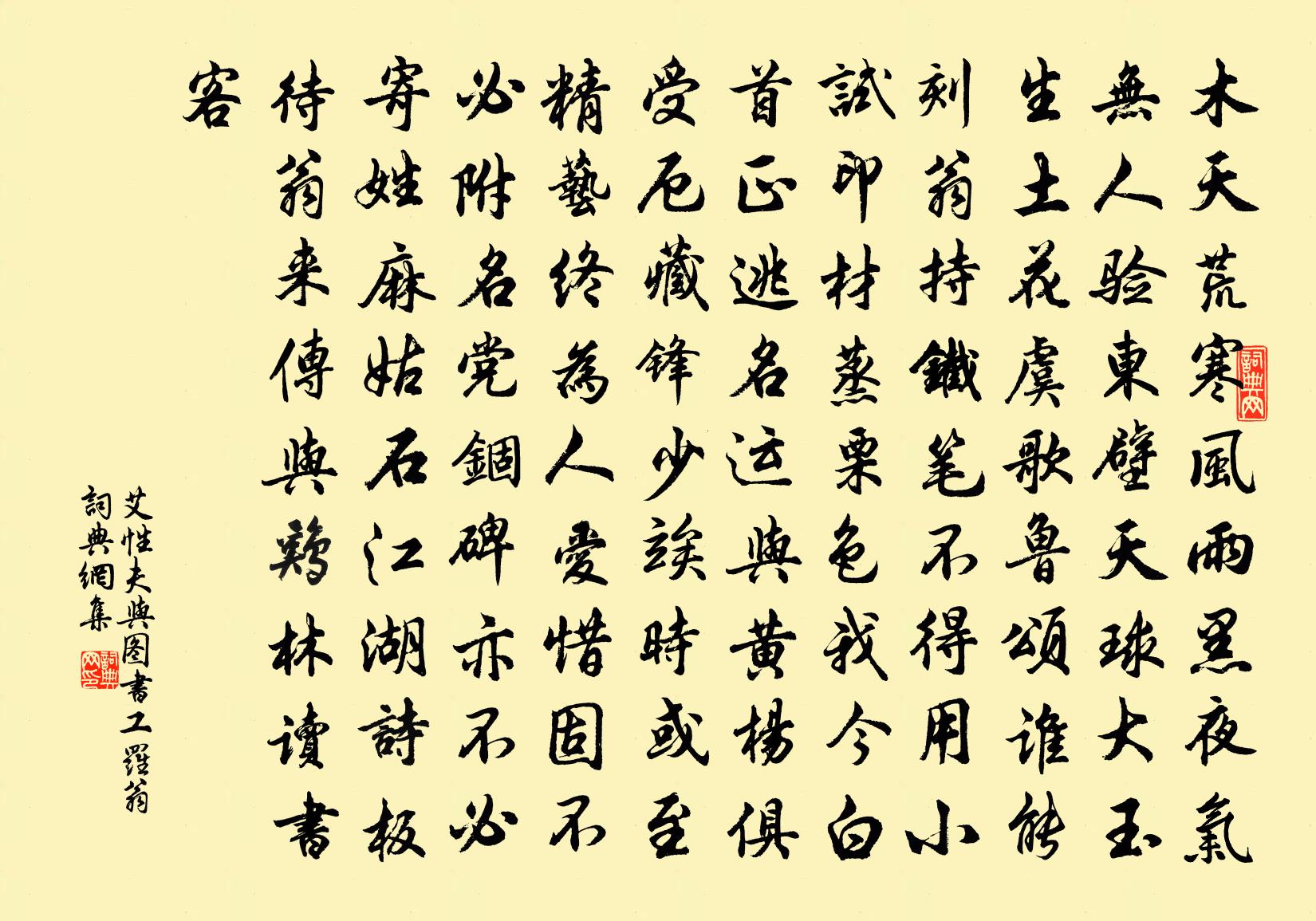詩詞名句歷史字典書法欣賞書法字典國語詞典說文解字康熙字典古漢語字典標 題 作 者 詩 句 與圖書工羅翁作者:艾性夫 朝代:宋代與圖書工羅翁原文木天荒寒風雨黑,夜氣無人驗東壁。天球大玉生土花,虞歌魯頌誰能刻。翁持鐵筆不得用,小試印材蒸栗色。我今白首正逃名,運與黃楊俱受厄。藏鋒少竢時或至。精藝終為人愛惜。固不必附名黨錮碑,亦不必寄姓麻姑石。江湖詩板待翁來,傳與雞林讀書客。詩詞問答問:與圖書工羅翁的作者是誰?答:艾性夫問:與圖書工羅翁寫於哪個朝代?答:宋代問:與圖書工羅翁是什麼體裁?答:七古艾性夫與圖書工羅翁書法欣賞與圖書工羅翁書法作品詩詞推薦別綦毋潛王維〔唐代〕端笏明光宮(一作殿)。歷稔朝雲陛。詔刊延閣書。高議平津邸。適意偶輕人(一作輕微祿)。虛心(一作遇人)雜詩二十七首曹勛〔宋代〕幽棲真在赤城隈,桂月蘿雲冷斗台。猿鶴定能知我意,移文未怨晚歸來。淇上別業高適〔唐代〕依依西山下,別業桑林邊。庭鴨喜多雨,鄰雞知暮天。野人種秋菜,古老開原田。且向世情遠,吾今聊自然。送方岩夫四首方回〔宋代〕河南徙歙徒浮光,逮徙莆田派愈長。六出長官刺史百,端平最數鐵庵方。回奉節宰陽季明陽枋〔宋代〕只緣心地樂寬平,便把青衫付外心。健羨春鶯嬌出谷,自慚宿鳥倦投林。光陰有限嗟空度,義理無窮要極深。七十鷓鴣天元好問〔金代〕長恨簫聲隔粉牆。爭教移住五雲鄉。一溪春水關何事,流水桃花賺阮郎。風攪夢,月侵床。情緣消得海生桑。鴛鴦重建海道都漕運萬戶府詩楊維楨〔元代〕朔方聖人啟中天,天府之國宅幽燕。帝車迴旋統幅員,南海北海無中邊。海陵餫餉至領顓,龍驤萬斛誰開先。神人烏龍廟陸游〔宋代〕江邊蒼龍背負天,蟠踞千載常蜿蜒;其前橫闢為大川,高城鼓角聲隱然。龍廟於山家於淵,世為吾州作豐年。老守山陰作劉子翬〔宋代〕地勢東南盡,清江吳越分。修塗雜川陸,游役念良勤。相從二三子,心期同欣掀。逢幽不暫憩,何由解塵紛。抗跡除夜病中贈段屯田蘇軾〔宋代〕龍鍾三十九,勞生已強半。歲暮日斜時,還為昔人嘆。今年一線在,那復堪把玩。欲起強持酒,故交雲雨散。惟有題周幾道桂軒陳文蔚〔宋代〕軒前一樹桂,手種知為誰。但見青如蓋,團圓障朝曦。西風入庭戶,吹香浮酒卮。相與一浩歌,渙焉剖藩籬。秋懷張嵲〔宋代〕前山躋暮氣,虛檐納輕陰。沉疴稍輕體,徐步望遙岑。泬寥天宇淨,斐亹秋雲深。原野曠蕭條,崗阜何崎嶔。微霜久不得浙耗黃公度〔宋代〕獨酌澆愁酒,慵翻信手書。折腰行俗吏,投足且吾廬。歲月鶯聲老,江湖雁影疏。依棲五侯第,旅食近何如。題趙生畫陸游〔宋代〕東都畫手排浮萍,天子獨賞一趙生。幅縑尺紙皆厚賜,眾史妒媢都人驚。爾來一筆不復見,好事往往空聞名。奇哉偈頌十首釋德光〔宋代〕世尊拈花,迦葉微笑,一對鐵槌,渾無孔竅。送靈澈上人歸嵩陽蘭若劉長卿〔唐代〕南地隨緣久,東林幾歲空。暮山門獨掩,春草路難通。作梵連松韻,焚香入桂叢。唯將舊瓶缽,卻寄白雲中。雨寒李洪〔宋代〕昏昏海氣助朝寒,風雨蕭蕭盡日間。室似陳蕃塵不掃,門如陶令晝常關。惟憑茗盌消磨睡,更把詩筒斷送閒。悄悄出遊劉望之〔宋代〕漫有游隨意,何曾語展眉。琴台悲犬子,江路憶熊兒。修竹蕭蕭寺,平蕪淺淺陂。年來底事業,訪古但饒詩。擬古八首陳普〔宋代〕東方有樂國,開闢先柏皇。鸞鳳為雞鶩,麒麟為犬羊。晨霞作朝食,太和為酒漿。土無干戈禍,人各千年長。下視周祀圜丘歌 皇夏庾信〔南北朝〕旌回外壝。蹕靜郊門。千乘按轡。萬騎雲屯。藉茅無咎。掃地唯尊。揖讓展禮。衡璜節步。星漢就列。風雲相顧。名句推薦人生天地間,忽如遠行客。佚名《青青陵上柏》 憑高遠望,見家鄉、只在白雲深處。王瀾《念奴嬌·避地溢江書於新亭》 今日聽君歌一曲,暫憑杯酒長精神。劉禹錫《酬樂天揚州初逢席上見贈》 琴瑟在御,莫不靜好。佚名《女曰雞鳴》 霜輕未殺萋萋草,日暖初乾漠漠沙。白居易《早冬》 泥上偶然留指爪,鴻飛那復計東西。蘇軾《和子由澠池懷舊》 人生得意須盡歡,莫使金樽空對月。李白《將進酒》 菡萏香連十頃陂,小姑貪戲採蓮遲。皇甫松《採蓮子·菡萏香蓮十頃陂》 清漏漸移相望久,微雲未接過來遲。李商隱《辛未七夕》 一上一上又一上,一上直到高山上。唐寅《登山詩》
