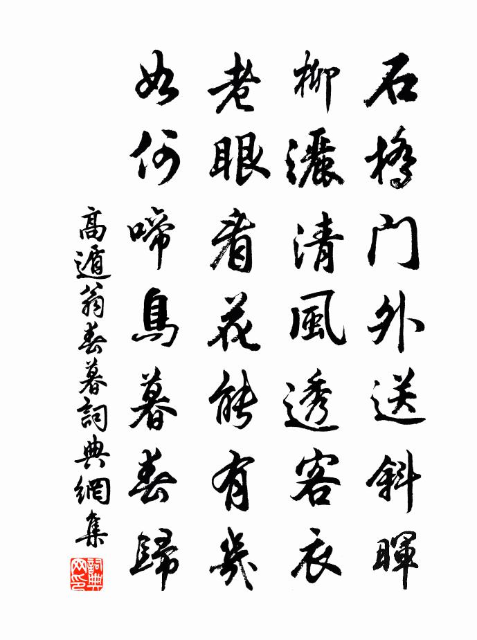 詩詞名句歷史字典書法欣賞書法字典國語詞典說文解字康熙字典古漢語字典標 題 作 者 詩 句 春暮作者:高遁翁 朝代:宋代春暮原文石橋門外送斜暉,柳灑清風透客衣。老眼看花能有幾,如何啼鳥暮春歸。詩詞問答問:春暮的作者是誰?答:高遁翁問:春暮寫於哪個朝代?答:宋代高遁翁春暮書法欣賞春暮書法作品詩詞推薦句陳與行〔宋代〕霜間開紫蒂,露下發金英。應百里李天益來求作奉川十詠似之慶登橋陳著〔宋代〕一水流南抱縣行,一橋在上壓溪橫。傍闌多少人觀政,要與橋平水與清。奉和御製聞早蟬徐鉉〔唐代〕綠樹陰陰愜豫游,早蟬清韻遠還收。喚回晝夢和宮漏,引起微冰助麥秋。禁柳煙中飛乍覺,御溝聲里聽偏幽。群生和微之詩二十三首。和望曉白居易〔唐代〕休吟稽山曉,聽詠秦城旦。鳴雞初有聲,宿鳥猶未散。丁丁漏向盡,鼕鼕鼓過半。南山青沈沈,東方白漫漫。街心和劉正夫見寄吳芾〔宋代〕已是龍鍾七十人,故應告老上章頻。九重垂念如慈父,一旦容歸作幸民。今我可憐非故我,此身才喜是吾身。花前臨江仙陳三聘〔宋代〕白首故人重會面,論交爾汝忘形。從今心跡喜雙清。飛鴻追往事,為蝶笑餘生。琥珀杯濃春正好,此懷端為君傾。答鄭宜中趙汝騰〔宋代〕畏暑門稀問字徒,袖中妙語契周圖。知君十倍侯芭學,老我非雄尚索塗。送同窗趙章甫上捨入京姚勉〔宋代〕一咖西湖又見春,夢魂長是繞湖濱。為煩竹閣措題墨,更向梅花道故人。槐市舊遊休復問,龍門佳客尚能新。明年子夜四時歌·繡帶合歡結蕭衍〔南北朝〕繡帶合歡結,錦衣連理文。懷情入夜月,含笑出朝雲。初到江州寄翰林張李杜三學士白居易〔唐代〕早攀霄漢上天衢,晚落風波委世途。雨露施恩無厚薄,蓬蒿隨分有榮枯。傷禽側翅驚弓箭,老婦低顏事舅姑。碧落別胡逸姚合〔唐代〕記得春闈同席試,逡巡何啻十年余。今日相逢又相送,予乘五馬子腳踏車。閒吟四首邵雍〔宋代〕平生如仕官,隨分在風波。所損無紀極,所得能幾何。既乖經世慮,尚可全天和。樽中有酒時,且飲復且歌。郊廟歌辭。祀九宮貴神樂章。肅和佚名〔唐代〕精意嚴恭,明祠豐潔。獻酬既備,俎豆斯撤。日麗天儀,風和樂節。事光祀典,福覃有截。吊盧玉堂趙汝回〔宋代〕金鑾坡上文星落,收拾遺文有幾函。草制空教生白髮,蓋棺只是著青衫。吟魂夜訪林墳木,破屋寒拋謝客岩。自有江上與兄別趙嘏〔唐代〕楚國湘江兩渺瀰,暖川晴雁背帆飛。人間離別盡堪哭,何況不知何日歸。何處難忘酒十首王令〔宋代〕何處難忘酒,欃槍世不平。孤兒未勝甲,孀母送為兵。氣絕心肝裂,號窮血淚橫。此時無一盞,何以活餘生。和松窗主人薦墨客詩姚勉〔宋代〕久不欹眠聽說詩,心茅又塞介然蹊。那能蠶雨鳴窗葉,徒自雞天舞瓮醯。詩態笑看雲靄靄,客懷喚醒曉淒淒。龍香碧蓮池陳肅〔宋代〕愛此東南池,澄湛通泉脈。昔日碧蓮根,香英今變白。顏色本神仙,霞衣無定格。無題唐寅〔明代〕小院疏枝襯日西,階前俯首莫沉迷。碎紅風裡堅心守,銜綠檐頭遠景啼。踱步鞋痕師稟氣,居身境界辟新蹊。古今頌證道歌證道歌釋印肅〔宋代〕學人不了用修行,只應步步踏陰坑。大光普照盲無識,非時不共野狐爭。名句推薦來相召、香車寶馬,謝他酒朋詩侶。李清照《永遇樂·落日熔金》 鼎湖流水清且閒,軒轅去時有弓劍,古人傳道留其間李白《飛龍引二首·其二》 聖人不貴尺之壁,而重寸之陰劉安及其門客《淮南子·原道訓》 算明朝、未了重陽,紫萸應耐看。吳文英《霜花腴·重陽前一日泛石湖》 歲暮鋤犁傍空室,呼兒登山收橡實。張籍《野老歌 / 山農詞》 一條藤徑綠,萬點雪峰晴。李白《冬日歸舊山》 嘆息聊自思,此生豈我情。王績《石竹詠》 雨洗娟娟淨,風吹細細香。杜甫《嚴鄭公宅同詠竹》 千里搭長棚,沒有個不散的筵席曹雪芹《紅樓夢·第二十六回》 夜聽胡笳折楊柳,教人意氣憶長安。王翰《涼州詞二首》