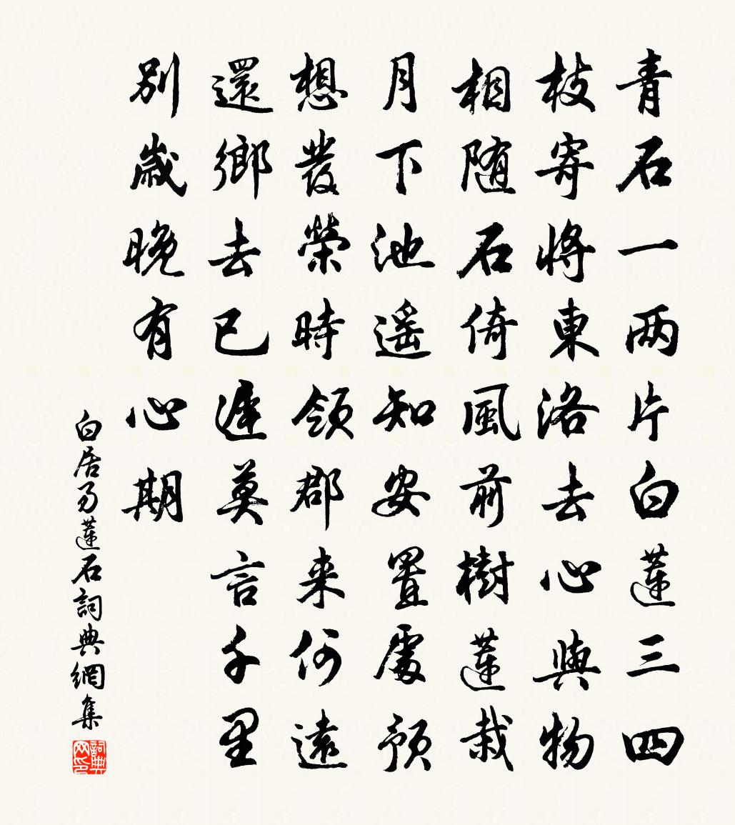 青石一兩片,白蓮三四枝。寄將東洛去,心與物相隨。