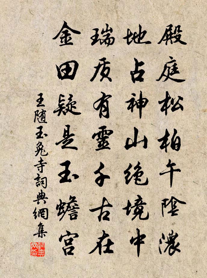 詩詞名句歷史字典書法欣賞書法字典國語詞典說文解字康熙字典古漢語字典標 題 作 者 詩 句 玉兔寺作者:王隨 朝代:宋代玉兔寺原文殿庭松柏午陰濃,地占神山絕境中。瑞質有靈千古在,金田疑是玉蟾宮。詩詞問答問:玉兔寺的作者是誰?答:王隨問:玉兔寺寫於哪個朝代?答:宋代王隨玉兔寺書法欣賞玉兔寺書法作品詩詞推薦贈草庵禪師王禹偁〔宋代〕陽山山下草庵深,寂寂香燈對遠岑。莫怪相看總無語,坐禪為政一般心。普天樂佚名〔元代〕他生得臉兒崢,龐兒正。諸餘里耍俏,所事裡聰明。忒可憎,沒薄倖。行里坐里茶里飯里相隨定,恰便似紙幡兒引和前人韻賦昌溪洞口陽枋〔宋代〕洞口天容黯,靈宮暫潔齋。中宵輕霢霂,向晚捲雲霾。岩削蒼璆璧,峰攢碧玉釵。水花紛迸峽,石乳溜垂岩。噴浪善哉行二首曹植〔魏晉〕來日大難,口燥唇乾。今日相樂,皆當喜歡。經歷名山,芝草翩翩。仙人王喬,奉藥一丸。自惜袖短,內手知寒。挽吳公祥承事詩虞儔〔宋代〕昔過高陽時,嘗登通德門。敢違鄉黨敬,尚想典刑存。喬木縈心曲,空花浥淚痕。定應歸淨土,何必賦招魂。贈韋司直郎士元〔唐代〕聞君感嘆二毛初,舊友相依萬里餘。烽火有時驚暫定,甲兵無處可安居。客來吳地星霜久,家在平陵音信疏。昨日送昭禮還金陵四首趙蕃〔宋代〕松巒特立士,君也為之子。異同誚歆向,父子自知己。向來知名人,得此多失彼。願君考其然,九十半百里。和邢惇夫秋懷十首黃庭堅〔宋代〕吾友陳師道,抱瑟不吹竽。文章似揚馬,欬唾落明珠。固窮有膽氣,風壑嘯於菟。秋來入詩律,陶謝不枝梧。浣溪沙 春情蘇軾〔宋代〕道字嬌訛苦未成。未應春閣夢多情。朝來何事綠鬟傾。彩索身輕長趁燕,紅窗睡重不聞鶯。困人天氣近清明。登岳陽樓趙蕃〔宋代〕自昔騷人半此州,不因放逐即淹留。我今毋負仍非客,何事泛然還一游。贈王漢陽李白〔唐代〕天落白玉棺,王喬辭葉縣。一去未千年,漢陽復相見。猶乘飛鳧舄,尚識仙人面。鬢髮何青青,童顏皎如練。吾曾寶奎殿前花樹子去年與宋中道同賦今復答宋詩韓維〔宋代〕長條飛動不依欄,淡粉濃朱巧作團。無語不辭終日立,有情曾是隔年看。春羅試舞衣新換,古錦藏詩墨未乾。我為次韻林梅卿吏部游湖葛立方〔宋代〕竟日關心朱墨間,西湖好在且偷閒。光凌萬頃搖銀海,興愜千鍾倒玉山。未辦采毫書側理,只愁赤壁下烏蠻。客兒次韻魏饒州用蕃唱酬詩卷最後一篇韻見贈之作趙蕃〔宋代〕世紛往往競趨奇,半額真同慕廣眉。我已自知成忤俗,公今豈亦故違時。解鞍屢辱留連飲,出袖仍蒙惠好詩。異縣中秋夕獨坐望月蔡襄〔宋代〕萬里淒凝魄,幽深在處通。清流河漢盡,寒入水雲空。踰久方全白,彌高適正中。開書還自卷,把酒復誰同。泫葉美溫尚書鎮定興元以詩寄賀劉禹錫〔唐代〕旌旗入境犬無聲,戮盡鯨鯢漢水清。從此世人開耳目,始知名將出書生。汨羅袁說友〔宋代〕懷沙元不為讒囂,要與江山作美謠。千載孤忠動神物,三湖今向汨羅朝。送觀復機宜榮侍南遊二首蘇泂〔宋代〕命拙仍多故,君來每慰情,艱虞還儉歲,文字久寒盟。又作家山別,寬為數月程。閒門閉蕭瑟,病眼向誰明。薄命女(一名長命女)和凝〔唐代〕天欲曉,宮漏穿花聲繚繞,窗里星光少。冷露寒侵帳額,殘月光沈樹杪。夢斷錦幃空悄悄,強起愁眉小。偈頌一百二十三首釋祖欽〔宋代〕昏沉散亂,莫非本地風光。絕點純清,正是真常流注。非不非,不是不。差之毫釐,失之千里。幸然無些子事,何名句推薦四時有不謝之花,八節有長青之草。李汝珍《鏡花緣·第一回》 惻隱之心,人皆有之孟子《孟子·告子章句上·第六節》 閉門覓句陳無己,對客揮毫秦少游。黃庭堅《病起荊江亭即事》 更深人去寂靜,但照壁孤燈相映。周邦彥《關河令·秋陰時晴漸向暝》 寶奩明月不欺人,明日歸來君試看。嚴仁《玉樓春·春思》 江天一色無纖塵,皎皎空中孤月輪。張若虛《春江花月夜》 故人應念,杜鵑枝上殘月。文天祥《酹江月·和友驛中言別》 溪深難受雪,山凍不流雲。洪升《雪望》 不為小害善,故有大名;不蚤見示,故有大功。韓非及後人《韓非子·喻老》 遠與君別者,乃至雁門關。江淹《古離別》