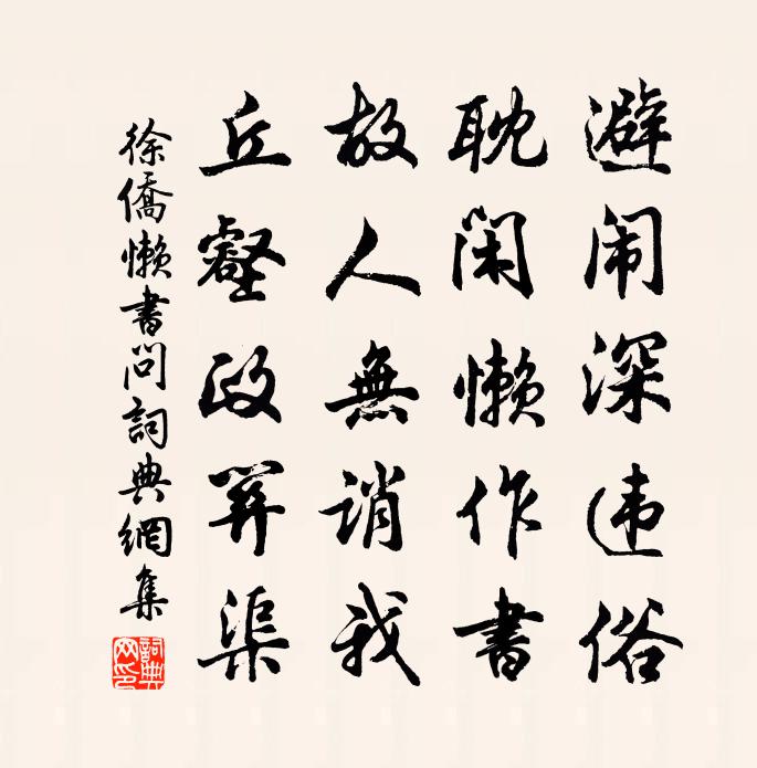 詩詞名句歷史字典書法欣賞書法字典國語詞典說文解字康熙字典古漢語字典標 題 作 者 詩 句 懶書問作者:徐僑 朝代:宋代懶書問原文避鬧深違俗,耽閒懶作書。故人無誚我,丘壑政關渠。詩詞問答問:懶書問的作者是誰?答:徐僑問:懶書問寫於哪個朝代?答:宋代徐僑懶書問書法欣賞懶書問書法作品詩詞推薦聽琴黎廷瑞〔宋代〕淒涼烏衣啼,怨抑雉朝飛。有室寧非願,無枝可得依。天涯心獨苦,歲晚淚頻揮。莫作將歸操,風塵久念歸。仙篆石方翥〔宋代〕何人登眺睨絕頂,一樹一石探幽奇。蟲文鳥篆不可識,如讀岣嶁神禹碑。奉和大觀文相公見寄古風許翰〔宋代〕旃裘亂衣裳,風雨飄屋廬。南奔萬里空,脫死鋒鏑余。翠華狩絕域,黃塵翳修塗。朝無嵇侍中,濺血沾誰裾。夷兒戲題仕女圖吳偉業〔清代〕霸越亡吳計已行,論功何物賞傾城?西施亦有弓藏懼,不獨鴟夷變姓名。 信士畫真請贊釋印肅〔宋代〕普因乾坤非外物,周聞法界祗圓音。含靈入我身毛孔,非相非名何處尋。寶陀觸目無人見,妙體端嚴不壞金。如鍾次韻京口叔祖見寄四首張鎡〔宋代〕汲古無初不讀書,屠蘇新制帖僧廬。痴禪晝夜 * 上,貪睡猶勝學宰予。贈老溪孚上人蒲壽宬〔宋代〕玉澗雙盤略彴過,對人捫虱坐雞窠。煮茶與客早歸去,落日前山路更多。和育王十二題七佛石李覯〔宋代〕萬物雖散殊,孰非道之體。何必石岩岩,方疑金色臂。歲晏晁公溯〔宋代〕歲晏天益寒,短景殊未長。曉日出愈遲,翳翳迷扶桑。微陽不破霧,仿佛光有芒。開門視屋瓦,北風吹朝霜。起坐山路見梅李彌遜〔宋代〕筍輿行處及春回,石里橫斜亦見梅。路細山長愁欲絕,可憐一笑向人開。聖俞約晚見過不至韓維〔宋代〕聞君敕車騎,晚駕慰愁獨。焚香靄疏箔,灑水靜深屋。高懷豈我遺,幽思方自續。日暮尚徘徊,清風滿修竹。旅中遇故人鄭克已〔宋代〕雲薄清溪水,天寒黃葉負。鄉關三載別,客路一樽同。舊事如昨日,問年俱老翁。相看今古意,淚冷菊花叢。雜興十首劉克莊〔宋代〕典領天書使,修崇昭應祠。可憐有遺恨,殮不得髠緇。一枝春長筌子〔元代〕堪嗟肉傀儡,塵世爭奇怪。晝夜火院煎苦,沉埋花酒叢中,孽重終難改。販骨何時徹,頭面翻騰,昧了靈源真宰。和宋永兄愛日樓見寄八首黃公度〔宋代〕秋心驚杵急,遠目見潮回。衰日可愛也,楚風真快哉。卷開前聖對,竹動故人來。去魯遲休怪,謀身恥自媒。和單君范古意六首樵陳著〔宋代〕枯者既就拾,濕者亦既束。空此一谷薪,載之可折軸。下山售市價,得糧不能宿。誰知此時心,氣塞口自嘿。安得賦家山夕秀李曾伯〔宋代〕本因累土作層台,巧匠俄為阜堆。碧落界邊將塔對,蒼蕪斷處送山來。狀成一段林巒勝,欠得幾株松桂栽。夕照未折桂令劉庭信〔元代〕想人生最苦別離。不甫能喜喜歡歡,翻做了哭哭啼啼。事到今朝,休言去後,且問歸期。看時節勤勤的飲食,沿路久不作詩喜仲兄遷鄰居因成長句樓鑰〔宋代〕宦遊各天涯,泉州今雁行。官居半里所,相過復相望。西鄰得老屋,往來連戶窗。水竹占幽勝,風雨對一床。十年簡陸少監趙汝回〔宋代〕登瀛彼何人,選海渺無際。巨矣萬斛舟,不與貧土濟。起檣開錦帆,逆境浪使風勢,貧土望洋立,惆恍發深喟。少名句推薦誰念文園病客?夜色沉沉,獨抱一天岑寂。張埜《奪錦標·七夕》 欹枕數秋天,蟾蜍下早弦。納蘭性德《菩薩蠻·蕭蕭幾葉風兼雨》 寂寂柴門村落里,也教插柳記年華。趙鼎《寒食》 口言之,身必行之。墨子《墨子·48章 公孟》 能親仁,無限好,德日進,過日少。李毓秀《弟子規·親仁》 傷心橋下春波綠,曾是驚鴻照影來。陸游《沈園二首》 謝亭離別處,風景每生愁。李白《謝公亭·蓋謝朓范雲之所游》 煙水初銷見萬家,東風吹柳萬條斜。竇鞏《襄陽寒食寄宇文籍》 天下傷心處,勞勞送客亭。李白《勞勞亭》 致治之本,惟在於審。量才授職,務省官員。吳兢《貞觀政要·卷三·論擇官》
