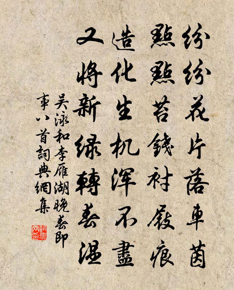 - 中原事業如江左,芳草何須怨六朝。納蘭性德《秣陵懷古·山色江聲共寂寥》