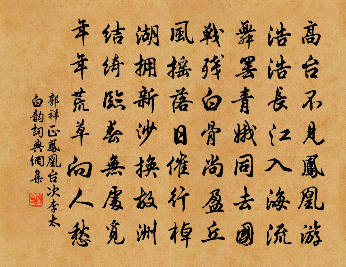 鳳凰台在金陵西南鳳凰山上。唐代天寶年間(742~756),詩仙李白離長安南遊金陵,與友人崔宗之同上鳳凰台,賦《登金陵鳳凰台》七律一首。到了北宋,詩人郭祥正與王安石登臨鳳凰台,追次李太白韻,於是創作了這首詩。