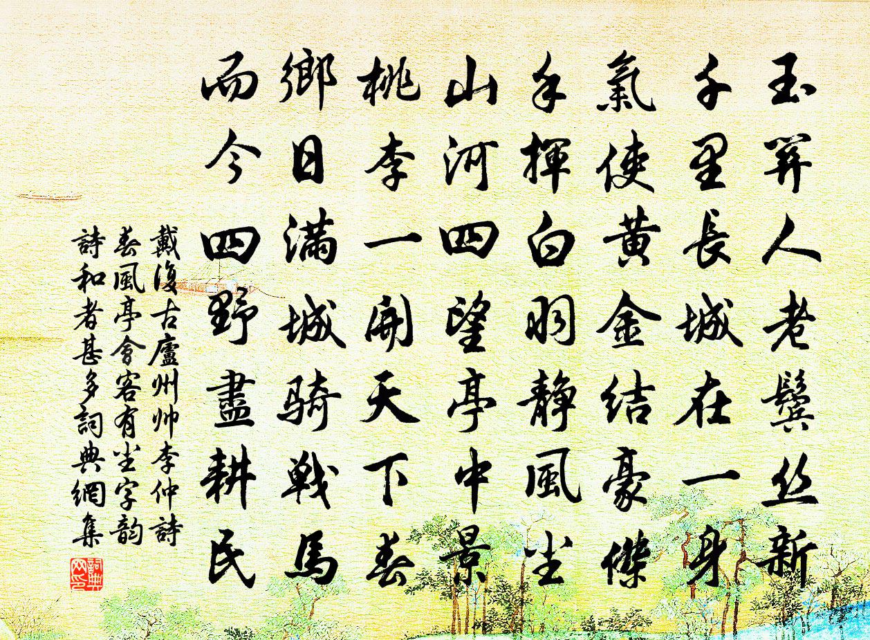 玉關人老鬢絲新,千里長城在一身。氣使黃金結豪傑。