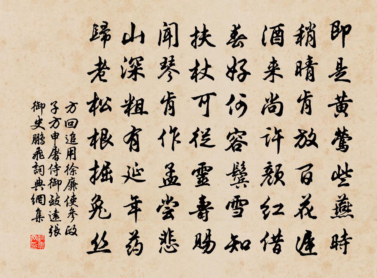 詩詞名句歷史字典書法欣賞書法字典國語詞典說文解字康熙字典古漢語字典標 題 作 者 詩 句 追用徐廉使參政子方申屠侍御致遠張御史鵬飛作者:方回 朝代:宋代原文即是黃鶯些燕時,稍晴肯放百花遲。酒來尚許顏紅借,春好何容鬢雪知。扶杖可從靈壽賜,聞琴肯作孟嘗悲。山深粗有延年藥,歸老松根掘兔絲。詩詞問答問:《追用徐廉使參政子方申屠侍御致遠張御史鵬飛》的作者是誰?答:方回問:該詩寫於哪個朝代?答:宋代書法欣賞追用徐廉使參政子方申屠侍御致遠張御史鵬飛書法作品詩文賞析【原題】:追用徐廉使參政子方申屠侍御致遠張御史鵬飛元日倡酬韻六首詩詞推薦清平樂·秋光燭地陳師道〔宋代〕秋光燭地。簾幕生秋意。露葉翻風驚鵲墜。暗落青林紅子。微行聲斷長廊。熏爐衾換生香。滅燭卻延明月,攬衣先瑞香楊萬里〔宋代〕買斷春光與曉晴,幽香逸艷獨婷婷。齊開忽作欒枝錦,未圻猶疑紫素馨。絕愛小花和月露,折將一朵篸銀瓶。今年四疊劉克莊〔宋代〕愁見當時玉鏡台,返魂無訣可勝哀。暮年尚有餘情在,月下迢迢挈影來。同喻景山游月湖陳宓〔宋代〕兼旬不到月湖來,無數荷花雨里開。燕是舊知頻繞棟,蟬如有意共銜杯。公庭兀坐雖無暇,佳友同攜得幾回。冒雨晚泊白塔橋約幼望吉甫小酌前韻錢時〔宋代〕風吹白浪十分晴,晚泊青溪二月春。千里客心歸最急,可無杯酒喚同人。九日即事呈尤延之楊萬里〔宋代〕昨日茱萸未苦香,今朝籬菊頓然黃。浮英泛蕊多多著,舊酒新醅細細嘗。節里且追千載事,鬢邊管得幾莖霜。正冠頌古一○一首釋子淳〔宋代〕本地靈明無一物,幾人認得黃金骨。扶鍬肩上便行時,大辯從來還若訥。九日舟中望見有美堂上魯少卿飲處以詩戲之蘇軾〔宋代〕指點雲間數點紅,笙歌正擁紫髯翁。誰知愛酒龍山客,卻在漁舟一葉中。西閣珠簾卷落暉,水沉煙斷佩聲微。遙知送蘇屯田廣西轉運王安石〔宋代〕置將從來欲善師,百城蹉跌起毫釐。驅除久費兵符出,按撫紛煩使節移。恩澤易行窮苦後,功名常見急難時。孺文清平樂趙汝茪〔宋代〕錦屏香褪。寒隱輕衫嫩。燕子護泥飛不穩。庭掩百花難認。雙雙繡帶微風。海棠此夜簾櫳。愁損一番寒食,小窗淡謫嶺南道中作李德裕〔唐代〕嶺水爭分路轉迷,桄榔椰葉暗蠻溪。愁沖毒霧逢蛇草,畏落沙蟲避燕泥。五月畬田收火米,三更津吏報潮雞。不堪自齊山借舟泛湖還家曹緯〔宋代〕十里平湖漫不流,晚風吹浪打行舟。定知歸得侵燈火,家在菰蒲最盡頭。句商侑〔宋代〕地俯梅溪新棟宇,源通橘井近煙霞。朝中措周必大〔宋代〕乘成台上曉書雲。黃色映天庭。已謝浮名浮利,也知來應長生。邊亭臥鼓,餘糧棲畝,朝野歡聲。從此四時八節,與夫同詠詩蘇檢〔唐代〕還吳東去過澄城,樓上清風酒半醒。想得到家春已暮,海棠千樹已凋零。和崔若拙四時田家詞四首之三賀鑄〔宋代〕雞聲犬吠遠相望,社酒登槽喚客嘗。曉日晴明陂更闊,風吹蕎麥蜜花香。呈雪竇僧野翁陳著〔宋代〕雨屋又留連,回頭七載前。同游半黃土,百感兩霜顛。睡醒茶為祟,吟清山結緣。他年北窗下,誰復對床眠。詠史詩圯橋胡曾〔唐代〕廟算張良獨有餘,少年逃難下邳初。逡巡不進泥中履,爭得先生一卷書。即事吟邵雍〔宋代〕事到患來頻,何由得任真。就新須果敢,從善莫因循。盜亦自有道,人而或不仁。義緣無定體,安處是行身。偈頌七十八首釋正覺〔宋代〕直下無窠窟,不用求奇特。皓玉本無瑕,雕文喪君德。名句推薦第四橋邊,擬共天隨住。姜夔《點絳唇·丁未冬過吳松作》 人善被人欺,馬善被人騎。佚名《增廣賢文·上集》 多少六朝興廢事,盡入漁樵閒話。張昪《離亭燕·一帶江山如畫》 君子不蔽人之美,不言人之惡。韓非及後人《韓非子·內儲說上七術》 呼兒將出換美酒,與爾同銷萬古愁。李白《將進酒》 春雨樓頭尺八簫,何時歸看浙江潮?蘇曼殊《本事詩十首·選二》 蘭葉春葳蕤,桂華秋皎潔。張九齡《感遇十二首·其一》 寒眼亂空闊,客意不勝秋。楊炎正《水調歌頭·登多景樓》 隔水氈鄉,落日牛羊下,區脫縱橫。張孝祥《六州歌頭·長淮望斷》 此心隨去馬,迢遞過千峰。方乾《送從兄郜 / 韋郜 / 途中別孫璐》