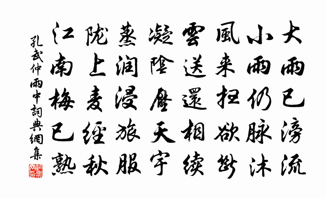 詩詞名句歷史字典書法欣賞書法字典國語詞典說文解字康熙字典古漢語字典標 題 作 者 詩 句 雨中作者:孔武仲 朝代:宋代雨中原文大雨已滂流,小雨仍脈沐。風來掃欲斷,雲送還相續。凝陰壓天宇,蒸潤浸旅服。隴上麥經秋,江南梅已熟。詩詞問答問:雨中的作者是誰?答:孔武仲問:雨中寫於哪個朝代?答:宋代孔武仲雨中書法欣賞雨中書法作品詩詞推薦復聞杜鵑李呂〔宋代〕憶到旴江聞子規,五更自在勸人歸。而今俄起蓴鱸念,不為山禽說是非。題項處士山堂二首陳造〔宋代〕久安楚俗眠雲屋,又向吳儂倒藥囊。出處無心俱樂地,世間何處不山堂。偈釋建〔宋代〕兔馬有角,牛羊無角。絕毫絕厘,如山如岳。針鋒上師子翻身,藕竅中大鵬展翼。等閒突過北俱盧,日月星辰一時奉和晦日幸昆明池應制宋之問〔唐代〕春豫靈池會,滄波帳殿開。舟凌石鯨度,槎拂鬥牛回。節晦蓂全落,春遲柳暗催。象溟看浴景,燒劫辨沉灰。鎬飲今日歌文嘉〔明代〕今日復今日,今日何其少。今日又不為,此事何時了。人生百年幾今日,今日不為真可惜。若言姑待明朝至,明朝啟帳黃滔〔唐代〕得人憎定繡芙蓉,愛鎖嫦娥出月蹤。侍女莫嫌抬素手,撥開珠翠待相逢。代雉朝飛鮑照〔南北朝〕雉朝飛。振羽翼。專場挾雌恃強力。媒已驚。翳又逼。蒿間潛彀盧矢直。刎繡頸。碎錦臆。絕命君前無怨色。握君西塞山二首(今謂之道士磯,即興國軍大冶縣所隸也)王周〔唐代〕西塞名山立翠屏,濃嵐橫入半 * 。千尋鐵鎖無由問,石壁空存道者形。匹婦頑然莫問因,匹夫何去望千春。翻思風州郡樓上書所見邵雍〔宋代〕楊柳垂青帶,風動如飛蓋。危樓思不窮,盡日閒相對。鳥去林自空,雲移山不礙。情隨雙燕還,意與孤鴻會。晚角城歸憩吳竹修家一詩寫懷陳著〔宋代〕去時桃未蕊,歸見石榴花。白首鐙前酒,青山夢裡家。鵑聲心路梗,蚊毒麵皮麻。勞苦書生事,堪嗟老未涯。太平花楊巽齋〔宋代〕紫芝奇樹謾前聞,未若斯花葉氣薰。種向春台豈無象,望中秀色似卿雲。再次韻十首陳造〔宋代〕吳門詩酒伴,入社記吾曾。香篆溫難燼,銅壺冷易冰。賡酬恕吾老,聲價放渠增。衰謝猶回首,思分蔀屋燈。殘句:討情不負齊安郡王禹偁〔宋代〕討情不負齊安郡,杜牧掌年與我齊。試院二首王阮〔宋代〕雨浸霜華冷作秋,廣文官舍益窮愁。夢魂卻似知人意,偏到廬山腳下州。句釋惠崇〔宋代〕鶴傳滄海信,僧和白雲詩。使北二首姜特立〔宋代〕萬里持哀使北芒,偶能成禮報君王。中原舊事成新恨,添得歸來兩鬢霜。雨涼二首呈宗偉范成大〔宋代〕驚雷隱地送涼颸,起舞看山不自持。說與騷人須早計,片雲催雨雨催詩。賢者之孝二百四十首疏受林同〔宋代〕豈如吾父子,歸老故鄉笛。一聽知足誨,欣然從大人。春余遣興元稹〔唐代〕春去日漸遲,庭空草偏長。餘英間初實,雪絮縈蛛網。好鳥多息陰,新篁已成響。簾開斜照入,樹褭遊絲上。絕跡滿庭芳蘇軾〔宋代〕香靉雕盤,寒生冰箸,畫堂別是風光。主人情重,開宴出紅妝。膩玉圓搓素頸,藕絲嫩、新織仙裳。雙歌罷,虛檐名句推薦翠鈿曉寒輕,獨倚鞦韆無力。楊冠卿《如夢令·滿院落花春寂》 解鞍欹枕綠楊橋,杜宇一聲春曉。蘇軾《西江月·頃在黃州》 做弄得、酒醒天寒,空對一庭香雪。張炎《疏影·梅影》 清香隨風發,落日好鳥歸。李白《詠鄰女東窗海石榴》 霜輕未殺萋萋草,日暖初乾漠漠沙。白居易《早冬》 如欲平治天下,當今之世,捨我其誰也。孟子《孟子·公孫丑章句下·第十三節》 卜鄰近三徑,植果盈千樹。孟浩然《田園作》 木從繩則正,後從諫則聖。佚名《尚書·商書·說命上》 風回雲斷雨初晴,返照湖邊暖復明。白居易《南湖早春》 鄉淚客中盡,孤帆天際看。孟浩然《早寒江上有懷 / 早寒有懷 / 江上思歸》