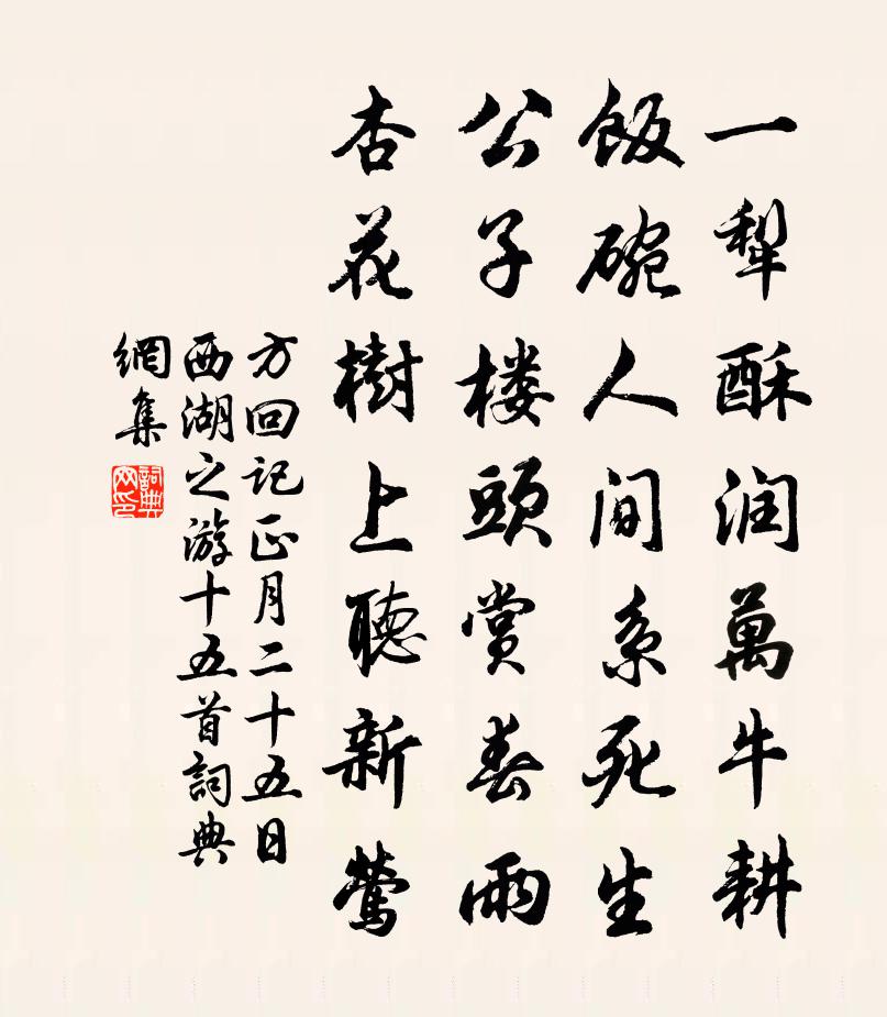 詩詞名句歷史字典書法欣賞書法字典國語詞典說文解字康熙字典古漢語字典標 題 作 者 詩 句 記正月二十五日西湖之游十五首○作者:方回 朝代:宋代原文一犁酥潤萬牛耕,飯碗人間系死生。公子樓頭賞春雨,杏花樹上聽新鶯。詩詞問答問:《記正月二十五日西湖之游十五首○》的作者是誰?答:方回問:該詩寫於哪個朝代?答:宋代書法欣賞記正月二十五日西湖之游十五首○書法作品詩詞推薦和樂天宴李周美中丞宅池上賞櫻桃花劉禹錫〔唐代〕櫻桃千萬枝,照耀如雪天。王孫宴其下,隔水疑神仙。宿露發清香,初陽動暄妍。妖姬滿髻插,酒客折枝傳。同此炭盡地爐危坐至夜分戲作陸游〔宋代〕短景窗易黑,長宵爐少紅。直令貧到骨,未害氣如虹。志士元謀道,儒生敢諱窮。霜嚴雞喔喔,但愧讀書功。鵲橋仙 珊瑚網法書題跋卷九鮮于樞〔元代〕青天無數。白天無數。綠水繞灣無數。灞陵橋上望西川,動不動、八千里路。來時春暮。去時秋暮。歸去又還春暮安素午睡錢時〔宋代〕禾黍秋相近,溪山日自長。午窗千嶂雨,幽夢一簾香。真珠簾(栽竹)王質〔宋代〕翠虬夭嬌拿蒼玉。飛來到、吾廬溪灣山麓。一笑忽相逢,更解包投宿。北池之畔西牆曲,與主人、呼青吸綠。恨我代譚與可謝石大夫鄉飲酒劉宰〔宋代〕大夫舉酒屬青衿,八十衰翁亦許臨。要向席間明厚意,敢辭酒半效狂吟。持身勿使虧名義,學古還須探聖心。元日雷杜甫〔唐代〕巫峽中宵動,滄江十月雷。龍蛇不成蟄,天地劃爭回。卻碾空山過,深蟠絕壁來。何須妒雲雨,霹靂楚王台。再和郭印〔宋代〕我愛希夷子,妙處渾一睡。無心樹勳業,栩栩同污世。夢裡還獨醒,卻笑群兒醉。時事嗔人說,達官從措置。四威儀釋慧空〔宋代〕住,對火浩歌敲火箸。有客來,爐中出煨芋。感舊絕句陸游〔宋代〕紅葉琵琶出嘉州,四弦彈盡古今愁。胡沙漫漫紫塞曉,漢月娟娟青冢秋。游青源二首文天祥〔宋代〕鍾魚閒日月,竹樹老風煙。一徑溪聲滿,四山天影圓。無言都是趣,有想便成緣。夢破啼猿雨,開元六百年。美女篇李覯〔宋代〕繁霜毒春木,花開苦不早。愚夫擇利婚,美女貧中老。曷不冶顏色,門前車為道。閨房有禮文,自衒誰言好。俗態偈頌二十二首釋道生〔宋代〕佛法二字,人人知有。狼毒 * ,那容下口。直饒透出威音前,也是痴狂外邊走。次韻王薦推官見寄蘇轍〔宋代〕可憐衰病孰為媒,私喜鄰邦得俊才。玉案愧無酬錦繡,木瓜卻用報瓊瑰。風流似欲傳諸謝,格律猶應學老梅。始信詠采甘露應詔詩江總〔隋代〕祥露曉氛氳。上林朝晃朗。千行珠樹出。萬葉瓊枝長。徐輪動仙駕。清晏留神賞。丹水波濤泛。黃山煙霧上。風亭架壁許志仁〔宋代〕架壁珍藏萬古書,世間清絕在吾廬。綠瓶香破分家釀,曲圃雲開翦露蔬。白日漸隨秋意短,故人盡向老來疏。今年岩桂二首曾幾〔宋代〕栗玉黏枝細,青雲翦葉齊。團團岩下桂,表表木中犀。江樹風蕭瑟,園花氣慘恓。濃薰不如此,何以慰幽棲。宋頌九首皇祖石介〔宋代〕皇祖龍驤,疇鄧猖狂,元年九月,進叛於揚。皇祖長驅,至揚城隅。四言詩十一首 其八嵇康〔兩漢〕抄抄翔鸞。舒翼太清。俯眺紫辰。仰看素庭。凌躡玄虛。浮沉無形。將游區外。嘯侶長鳴。神□不存。誰與獨征劉昆徐鈞〔宋代〕於菟渡水火回煙,異事情知出偶然。若謂嘉祥關德政,後無可繼是誣天。名句推薦生死有命,富貴在天。佚名《增廣賢文·上集》 以亂攻治者亡,以邪攻正者亡,以逆攻順者亡韓非及後人《韓非子·初見秦》 霸圖今已矣,驅馬復歸來。陳子昂《燕昭王》 夜喧山門店,獨宿不安席。韋應物《聽嘉陵江水聲寄深上人》 故人宿茅宇,夕鳥栖楊園。李白《之廣陵宿常二南郭幽居》 世界微塵里,吾寧愛與憎。李商隱《北青蘿》 使殺生之機,奪予之要在大臣,如是者侵。韓非及後人《韓非子·三守》 非我而當者,吾師也;是我而當者,吾友也。荀子《荀子·修身》 君子藏器於身,待時而動佚名《易傳·繫辭傳下·第五章》 風回小院庭蕪綠,柳眼春相續。李煜《虞美人·風回小院庭蕪綠》