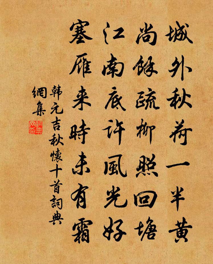 城外秋荷一半黃,尚余疏柳照回塘。江南底許風光好,塞雁來時未有霜。