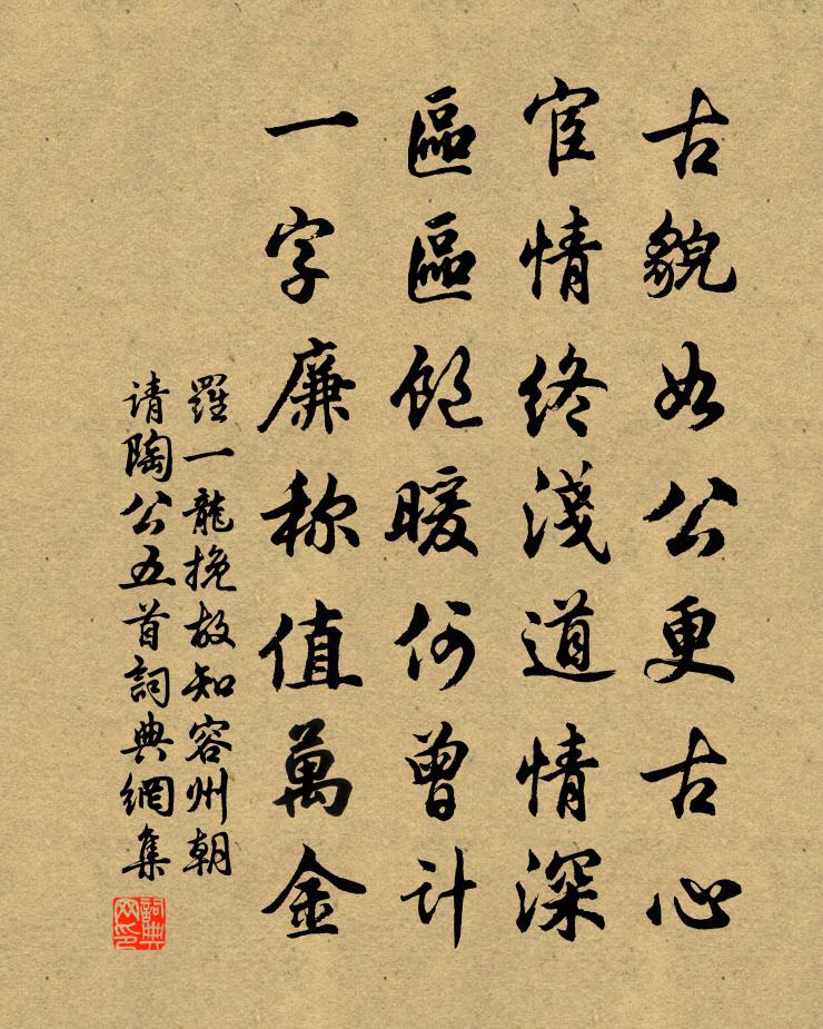 詩詞名句歷史字典書法欣賞書法字典國語詞典說文解字康熙字典古漢語字典標 題 作 者 詩 句 挽故知容州朝請陶公五首作者:羅一龍 朝代:宋代挽故知容州朝請陶公五首原文古貌如公更古心,宦情終淺道情深。區區飽暖何曾計,一字廉稱值萬金。詩詞問答問:挽故知容州朝請陶公五首的作者是誰?答:羅一龍問:挽故知容州朝請陶公五首寫於哪個朝代?答:宋代羅一龍挽故知容州朝請陶公五首書法欣賞挽故知容州朝請陶公五首書法作品詩詞推薦季百般已亥大雨文同〔宋代〕黑雲堆空天地昏,風勢猛惡山嶽撳。怪電燒爇嗔霆喧,鯨海起立星漢翻。玉竿銀索傾瓶盆,誼威怒力凌乾坤。川陸減字木蘭花尹志平〔元代〕頑愚不省。禍福還如身逐影。劫運天災。都是人人心上來。若明此理。視物應當同自己。了見天真。善惡臨時全在謝潘端叔惠紅梅樓鑰〔宋代〕縞裙練帨玉為肌,誰點微頳向北枝。若使羅虬見顏色,定須將此比紅兒。觀所養鸂鶒徐照〔宋代〕一身文采異常流,卻使閒身不自由。永日翠籠相併睡,豈無魂夢到滄州。風流子(聞桂花懷西湖)翁元龍〔宋代〕天闊玉屏空。輕陰弄、淡墨畫秋容。正涼掛半蟾,酒醒窗下,露催新雁,人在山中。又一片,好秋花占了,香換卻送人之吳釋斯植〔宋代〕無心學隱淪,此去向吳津。千古是非地,一燈煙雨村。烽塵連楚戍,榆柳隔淮春。別後新吟句,何人可共論。送元簡上人適越劉禹錫〔唐代〕孤雲出岫本無依,勝境名山即是歸。久向吳門游好寺,還思越水洗塵機。浙江濤驚獅子吼,稽嶺峰疑靈鷲飛。更入漫成二首杜甫〔唐代〕野日荒荒白,春流泯泯清。渚蒲隨地有,村徑逐門成。只作披衣慣,常從漉酒生。眼前無俗物,多病也身輕。江皋送端叔游淮趙汝鐩〔宋代〕堂堂玉立須垂腹,談論逢人見肺肝。手弄七弦琴韻古,腰橫三尺劍光寒。但將計策尋知已,肯學閭閻為覓官。烏幕和林懿仲喜雪韻陳傅良〔宋代〕常暘厥咎何,君相疚朝夕。愧莫慰群黎,淒其望三白。是心與天通,昨夜平地尺。蓑笠在東阡,耰耡在西陌。忍待吳門比月不雨司封使君深閔而精祈俄有佳應謹朱長文〔唐代〕賢守憂勞鬢欲霜,通宵脈沐滿吳疆。五湖水闊魚龍喜,九麴塵清檜柏香。更入高鄉多{左禾右罷}稏,雖當淺處泛豫章巨浸呈陳幼度提乾戴復古〔宋代〕乞得新晴賦晚霞,出門無路欲乘槎。憂風憂雨動經月,足食足衣能幾家。一飯共君烹瓠葉,三杯無處看荷花。自成和張文學投贈劉克莊〔宋代〕身如老桐樹,拱把至於今。閱世已焦尾,無人知苦心。免隨薪爨盡,誤被斧斤尋。曾侍薰風殿,先皇獨賞音。郭熙山水障子劉克莊〔宋代〕高為峰嵐下濤江,極目森秀涵蒼涼。始知著色未造極,台似醜女施鉛黃。驚泉駭石聚幽怪,巨楠窮柏蟠老蒼。鹿門偈頌一百二十三首釋普度〔宋代〕鐵網漫漫面面開,百城幾度去還來。二千年結知誰解,又著三文買草鞋。池上春日林逋〔宋代〕一池春水綠於苔,水上花枝竹間開。芳草得時依舊長,文禽無事等閒來。年顏近老空多感,風雅含情苦不才。獨有詠齋詩李廌〔宋代〕古昔詩客長風騷,雲間野鶴鳴九皋。六丁極天十萬遭,攝提執策窮牛毛。玄珠罔象誰能及,或長壯麗稱雄豪。九原賀皇太子九月四日生辰二首楊萬里〔宋代〕金莖分露與黃花,銀漢非煙作瑞霞。萬國元良當誕節,重輪日月正光華。祖堯父舜真千載,禹子湯孫更一家。清曉酬新安仁孝主簿員興宗〔宋代〕汴水奔流天子都,海涵百穀來群儒。黑笠白袍紛盈衢,清才落筆各有徒。人人懷矛戈戟殳,文陣未戰磨以須。我方羅子琳來就廣漕試予以檄出至西江峽口懷古感曾豐〔宋代〕摹寫閒泉石,雕鎪病肺肝。得無縻歲月,終不補饑寒。上固詔求上,誰將詩得官。何如經學熟,隨計上長安。名句推薦罪己宜苛,人憐不致大害。來俊臣《羅織經·保身卷第七》 舉杯互敬屠蘇酒,散席分嘗勝利茶。 * 《元旦口占用柳亞子懷人韻》 野梅燒不盡,時見兩三花劉基《古戍》 莫莫高山,深谷逶迤佚名《紫芝歌》 故人在其下,塵土相豗蹴。蘇軾《送頓起》 不系雕鞍門前柳,玉容寂寞見花羞,冷風兒吹雨黃昏後。喬吉《春閨怨·不系雕鞍門前柳》 一丈夫兮一丈夫,千生氣志是良圖。李泌《長歌行》 驛路侵斜月,溪橋度曉霜。呂本中《南歌子·驛路侵斜月》 德之不修,學之不講,聞義不能徙,不善不能改,是吾憂也。孔子弟子《論語·述而篇》 雲開汶水孤帆遠,路繞樑山匹馬遲。高適《東平別前衛縣李寀少府 / 送前衛縣李宷少府》