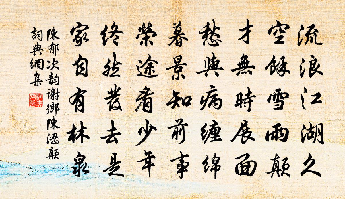- 獨倚闌乾凝望遠。一川菸草平如剪。謝逸《蝶戀花·豆蔻梢頭春色淺》
