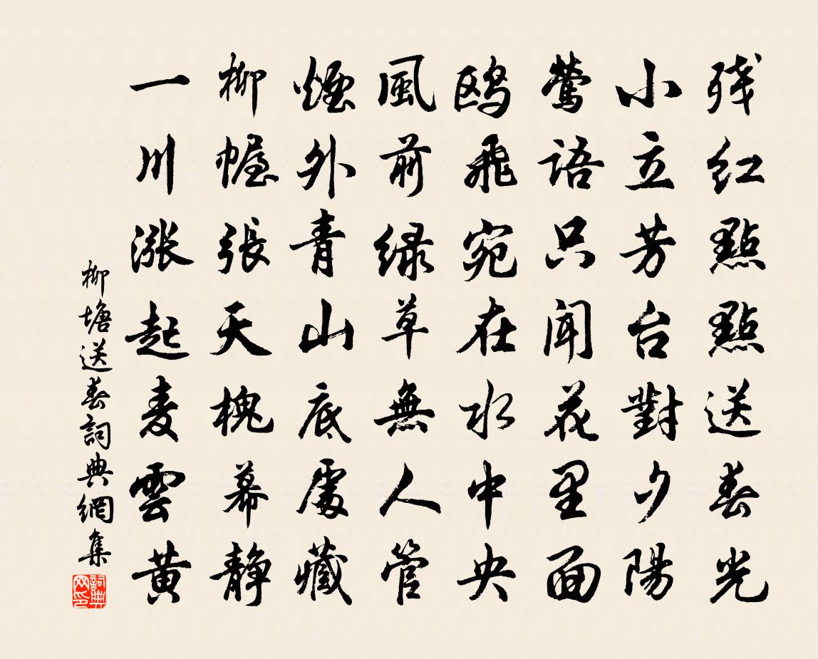 詩詞名句歷史字典書法欣賞書法字典國語詞典說文解字康熙字典古漢語字典標 題 作 者 詩 句 柳塘送春作者:佚名 朝代:宋代柳塘送春原文殘紅點點送春光,小立芳台對夕陽。鶯語只聞花裡面,鷗飛宛在水中央。風前綠草無人管,煙外青山底處藏。柳幄張天槐幕靜,一川漲起麥雲黃。詩詞問答問:柳塘送春的作者是誰?答:佚名問:柳塘送春寫於哪個朝代?答:宋代問:柳塘送春是什麼體裁?答:七律問:佚名的名句有哪些?答:佚名名句大全佚名柳塘送春書法欣賞柳塘送春書法作品詩詞推薦秋夕池上楊億〔宋代〕蓮塘帶戈林,清吹滌煩襟。泉咽猶鳴玉,台傾舊築金。僵桃蟲自蠹,怪石蘚交侵,此夜悲秋客,煙蛩亦伴吟。偈頌一百六十首釋宗杲〔宋代〕二月仲春,久雨不晴。雲門一劄,德非有鄰。歲晚私感宋祁〔宋代〕已嗟官落魄,更值歲崢嶸。一絓區中累,千慚谷口耕。休文偏恨瘦,夷甫太鍾情。借問長安米,侏儒有底榮。蘇幕遮蘇軾〔宋代〕暑籠晴,風解慍。雨後餘清,暗襲衣裾潤。一局選仙逃暑困。笑指尊前、誰向青霄近。整金盆,輪玉筍。鳳駕鸞車西湖林表民〔宋代〕十三樓寺朝餐飯,六一泉亭晚舉觴。千古湖山難模處,淡煙微雨更斜陽。釣台詩范仲淹〔宋代〕漢包六合岡英豪。一個冥鴻惜羽毛。世祖功臣三十六,雲台爭似釣台高。雜言同用離騷體送張評事襄陽覲省權德輿〔唐代〕黯離堂兮日晚,儼壺觴兮送遠。遠水霽兮微明,杜蘅秀兮白芷生。波泫泫兮煙冪冪,凝暮色於空碧。紛離念兮隨君釣台連文鳳〔宋代〕諸將驅馳尺寸功,先生來此坐清風。漢家天地間身外,嚴瀨煙波落照中。片石粼粼年歲晚,一絲裊裊利名空。笑余食角黍懷江陵項安世〔宋代〕經年不食三閭餌,一日相逢似故人。旋剝青菰香滿手,試餐黃顆軟粘唇。蔗漿下箸甘無敵,昌本浮杯小作巡。正是採桑子晏幾道〔宋代〕非花非霧前時見,滿眼嬌春。淺笑微顰,恨隔垂簾看未真。殷勤借問家何處,不在紅塵。若是朝雲,宜作今宵夢裡答微之裴淑〔唐代〕侯門初擁節,御苑柳絲新。不是悲殊命,唯愁別近親。黃鶯遷古木,朱履從清塵。想到千山外,滄江正暮春。因省風俗,與從侄成緒游山水,中道先歸寄示韋應物〔唐代〕累宵同燕酌,十舍攜征騎。始造雙林寂,遐搜洞府秘。群峰繞盤郁,懸泉仰特異。陰壑雲松埋,陽崖煙花媚。每慮送退齋先生歸武夷林若存〔宋代〕書院新鰲峰,五觀祠學宮,馬邵獨避席,將無道不同。專專論的派,此理誰當窮。獨學無師友,前儒議溫公。準繩又即事四首劉克莊〔宋代〕鷹已離韛馬釋驂,弇州西畔大槐南。酢梅難比奉宸杏,病橘本非供御柑。怕向道旁逢醉尉,底須帳里著髯參。細聽馮當可游龍鶴山有詩贈安道人用韻二首郭印〔宋代〕一到仙山眼自明,前身彷佛記曾經。真人眇忽在何許,更隨藜杖緣青冥。如老堂吳芾〔宋代〕少年有志覓封侯,老去知非萬事休。薄有田園能自適,不妨賣劍買黃牛。奉和夏日晚景應詔楊師道〔唐代〕輦路夾垂楊,離宮通建章。日落橫峰影,雲歸起夕涼。雕軒動流吹,羽蓋息回塘。剃草生還綠,殘花落尚香。青岩自遣四首張耒〔宋代〕是非得失一區區,蚊蚋啾啾共一壺。不學退之求羽翼,惟憑一夢到華胥。再答吳仲登三絕釋寶曇〔宋代〕芰荷如屋藕如船,聞道江山似輞川。中有平章雲月手,殷動招我爾來前。青雲乾呂王履貞〔唐代〕異方占瑞氣,乾呂見青雲。表聖興中國,來王謁大君。迎祥殊大樂,葉慶類橫汾。自感明時起,非因觸石分。映霄名句推薦夫愛人者,人必從而愛之;利人者,人必從而利之;惡人者,人必從而惡之;害人者,人必從而害之。墨子《墨子·15章 兼愛(中)》 萬事一身傷老矣,戎葵凝笑牆東。陳與義《臨江仙·高詠楚詞酬午日》 淮南秋雨夜,高齋聞雁來。韋應物《聞雁》 野梅燒不盡,時見兩三花劉基《古戍》 玉漏銀壺且莫催,鐵關金鎖徹明開。崔液《上元夜六首·其一》 又似賈客蜀道間,千鐸萬磬鳴空山牛殳《琵琶行》 錦江春色來天地,玉壘浮雲變古今。杜甫《登樓》 行路難!行路難!多歧路,今安在?李白《行路難三首》 一枝紅杏出牆頭,牆外行人正獨愁。吳融《途中見杏花》 共說春來春去事,多時。一點愁心入翠眉。晏幾道《南鄉子·花落未須悲》