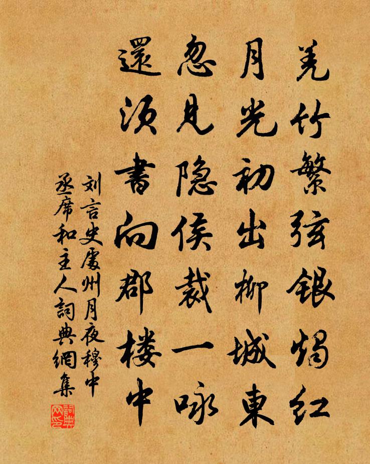詩詞名句歷史字典書法欣賞書法字典國語詞典說文解字康熙字典古漢語字典標 題 作 者 詩 句 處州月夜穆中丞席和主人作者:劉言史 朝代:唐代處州月夜穆中丞席和主人原文羌竹繁弦銀燭紅,月光初出柳城東。忽見隱侯裁一詠,還須書向郡樓中。詩詞問答問:處州月夜穆中丞席和主人的作者是誰?答:劉言史問:處州月夜穆中丞席和主人寫於哪個朝代?答:唐代問:處州月夜穆中丞席和主人是什麼體裁?答:七絕劉言史處州月夜穆中丞席和主人書法欣賞處州月夜穆中丞席和主人書法作品注釋全唐詩:卷468-47詩詞推薦淳熙己酉上巳前一日蚤與遂昌縣尉葉禾晚與弟喻良能〔宋代〕曲溝流水綠蜿蜒,正值春風上巳天。不是永和東道主,一觴亦復會群賢。雞鳴關李石〔宋代〕關路入雲平,泥塗自送迎。書生無馬癖,客子效雞鳴。登綺霞亭王秬〔宋代〕危亭臨霽景,金碧迥紛紛。天映中原氣,山橫萬古雲。夕陽寒未斂,孤鶩遠猶聞。俯仰懷前哲,清樽為苾芬。和同年李子西通判楊萬里〔宋代〕走馬看花拂綠楊,曲江同賞牡丹香。向來年少今俱老,君拜監州我作郎。北闕小遲蒼玉佩,南征聊制芰荷裳。病身仲舅敷文閣學士汪公輓詞樓鑰〔宋代〕籍甚牢之舅,難追宅相風。惟公能愛我,獨我最知公。潭府書無繼,西州事已空。形容盡心力,庶或慰幽宮。次韻李參政秋懷十絕魏了翁〔宋代〕書棚尚有送春詩,由見秋風滿範圍。夜雨床頭多釀酒,天邊一舸有人歸。御仙花楊巽齋〔宋代〕不逐凡花逞艷嬌,移要上苑獨清高。君王曾選裝金帶,侈錫持荷耀紫袍。夜興戲作陸游〔宋代〕遙夜寂無嘩,江城鼓屢撾。傍牆行踸踔,脫帽發鬖鬖。詩和玲瓏韻,燈開頃刻花。會心有佳處,不寐到啼鴉。鹽商婦白居易〔唐代〕昨夜霜一降,殺君庭中槐。乾葉不待黃,索索飛下來。憐君感節物,晨起步前階。臨風踏葉立,半日顏色低。西望次韻胡庭芳別考亭夫子祠下汪炎昶〔宋代〕與易俱胩無何鄉,紫陽風采獨堂堂。伊洛諸老前慷慨,字落琬琰嗅有香。餘或闖首藩籬傍,占辭象例終茫洋。公剪浣溪沙(許南叔席上)向子諲〔宋代〕百斛明珠得翠蛾。風流徹骨更能歌。碧雲留住勸金荷。取醉歸來因一笑,惱人深處是橫波。酒醒情味卻知么。和翁子雅陳宓〔宋代〕函丈論文仆屢更,夜深相對眼偏青。曾無取次人敲戶,只有殷勤月到庭。享太廟樂章。保大舞郭子儀〔唐代〕於穆文考,聖神昭彰。簫勺群慝,含光遠方。萬物茂遂,九夷賓王。愔愔雲韶,德音不忘。句朱翌〔宋代〕蘼蕪敷綠葉,系出蛾眉陰。新春詞鄭獬〔宋代〕晴暉散入鳳凰樓,一桁朱簾不下鉤。漢殿鬧簪雙彩燕,並和春色上釵頭。九日戴復古〔宋代〕醉來風帽半欹斜,風度他鄉對菊花。最苦酒徒星散後,見人兒女倍思家。送孫二王維〔唐代〕郊外誰相送,夫君道術親。書生鄒魯客,才子洛陽人。祖席依寒草,行車起暮塵。山川何寂寞,長望淚沾巾。挽李尚書母太淑人黃榦〔宋代〕少壯聞忠教,生平閱險夷。篆煙長寂寞,騶從任驅馳。塵俗渾無染,湖山每自怡。儒冠慚佛學,列婦勝男兒。次韻蔚上人見寄戴表元〔宋代〕流落誰相憶,山林蔚講師。玄機魂夢接,詩力鬢毛知。舟去須尋處,書來不記時。君看東海月,今夜亦追隨。讀古劍和尚語送是藏主婦常州釋雲岫〔宋代〕金緘鋒底鴛鴦走,玉線蹊中白鷺飛。遠遠洞庭三萬頃,春波無限綠漪漪。名句推薦莫見乎隱,莫顯乎微,故君子慎其獨也。子思《禮記·中庸》 千里稻花應秀色,五更桐葉最佳音。曾幾《蘇秀道中》 秋木萋萋,其葉萎黃,有鳥處山,集於苞桑。王昭君《怨詞》 萋萋芳草小樓西,雲壓雁聲低。劉基《眼兒媚·秋思》 西北望鄉何處是,東南見月幾回圓。白居易《八月十五日夜湓亭望月》 天清一雁遠,海闊孤帆遲。李白《送張舍人之江東》 對此懷素心,千里共明月德隱《新秋晚眺》 一疑一信相參勘,勘極而成知者,其知始真。洪應明《菜根譚·概論》 櫪馬苦踡跼,籠禽念遐征。張九齡《秋晚登樓望南江入始興郡路》 無花無酒過清明,興味蕭然似野僧。王禹偁《清明》