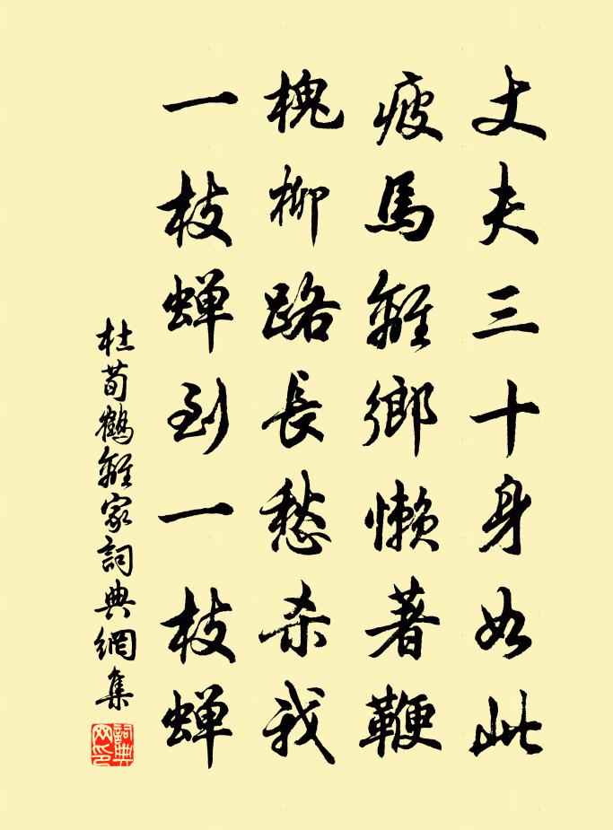 丈夫三十身如此,疲馬離鄉懶著鞭。槐柳路長愁殺我,一枝蟬到一枝蟬。