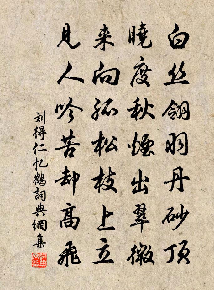 詩詞名句歷史字典書法欣賞書法字典國語詞典說文解字康熙字典古漢語字典標 題 作 者 詩 句 憶鶴作者:劉得仁 朝代:唐代憶鶴原文白絲翎羽丹砂頂,曉度秋煙出翠微。來向孤松枝上立,見人吟苦卻高飛。詩詞問答問:憶鶴的作者是誰?答:劉得仁問:憶鶴寫於哪個朝代?答:唐代劉得仁憶鶴書法欣賞憶鶴書法作品注釋全唐詩:卷545-37詩詞推薦送王西樞出鎮鄭圃八首之三賀鑄〔宋代〕公論由來重,高懷此去輕。吾非厚知己,感嘆此蒼生。畫堂春(上老母壽)張孝祥〔宋代〕蟠桃一熟九千年。仙家春色無邊。書堂日暖卷非煙。晝永風妍。看取蔬封湯沐,何妨頻棹觥船。方瞳綠髮對儒仙。十疊劉克莊〔宋代〕珠樹無多攀不已,珊瑚有盡采無窮。海神抗訴天公怒,似怕龍宮寶藏空。阮郎歸(春雨)蔣元龍〔宋代〕小池芳草綠初勻。柳寒眉尚顰。東風吹雨細於塵。一庭花臉皴。鶯共蝶,怨還嗔。眼前無好春。這般天氣煞愁人。偈頌一百三十六首釋惟一〔宋代〕我與黃面老漢,有千古不忘之恨,甚欲爛槌一頓。今日因甚放過,老不以筋力為能。樂隱蘇泂〔宋代〕橘隱仙人是乃翁,幾年涵養在其中。商顏不出渾無事,安得開禧第一功。和學士秋懷一十五首李彌遜〔宋代〕旋落檐花夜正喧,參橫斗轉有更傳。了無人跡妨真夢,枕簟同參一味禪。月中炬火發仙山驛,小睡射亭五首楊萬里〔宋代〕長庚初讓月先行,不料姮娥也世情。趣駕冰輪渡銀浦,亂拋玉李擲長庚。延平次趙糾曹韻十四首熙春台陳宓〔宋代〕我乘凋瘵後,未省見花開。安得一千里,同攜登此台。浪淘沙(十月十九夜賞菊)葛勝仲〔宋代〕我愛菊花枝。浥露偏宜。旋移佳種一年期。照眼黃金三徑爛,可但東籬。秋老摘花吹。敢恨開遲。只愁一夜便香衰觀溪漲鄭剛中〔宋代〕入夏天不雨,溪流僅成派。一放漲梅霖,拍岩輒澎湃。沖犯無堤防,奔騰起湍瀨。鷗鷺驚以翔,蝦魚鼓而快。聒耳游靈岩劉過〔宋代〕風露悽然八月秋,瘦藤扶我到山頭。僧居突兀飛鴻上,人跡依稀任鹿游。舊事已空流水在,閒情都付落花休。越王次韻張秘校喜雪三首黃庭堅〔宋代〕巷深朋友稀來往,日晏兒童不掃除。雪裡正當梅臘盡,民飢可待麥秋無。寒生短棹誰乘興,光入疏欞我讀書。官冷客有遺子以假山石盆池者聞陳元發有石菖蒲作秦觀〔宋代〕瑟瑟風漪心為青,更窺崷崒眼增明。可憐一片江山樣,只欠菖蒲十數莖。南征彭秋宇〔宋代〕聖皇神武志規恢,南國胡為貢未來。銅柱地荒雲隔斷,珠崖天盡雁飛回。秋風曾見秦師出,曉日今聞漢詔哀。中國漁父岑參〔唐代〕扁舟滄浪叟,心與滄浪清。不自道鄉里,無人知姓名。朝從灘上飯,暮向蘆中宿。歌竟還復歌,手持一竿竹。竿頭次韻伯田見酬四首方回〔宋代〕久缺箋筒到霅濱,相逢依舊氣如春。深藏尺璧元無價,時擊圓蓍尚有神。桑梓兵戈三峽路,衣冠文物五朝人。片時一百五歌張耒〔宋代〕山民歲時事莽鹵,猶知拜掃一百五。平明士女出城闉,黃土岡前列尊俎。箬包粉餌蒸野蔬,富家烹羊貧薦魚。日暮齊天樂(賦橙)史達祖〔宋代〕犀紋隱隱鶯黃嫩,籬落翠深偷見。細雨重移,新霜試摘,佳處一年秋晚。荊江未遠。想橘友荒涼,木奴嗟怨。就說張以詩捲來再用韻謝之趙蕃〔宋代〕絕嘆風流不可追,賴聞難弟更能詩。半生求識終無遇,一見於今已後期。昔在蠻荊孰疆理,後來秦漢始津涯。征南名句推薦文豈有常體,但以有體爲常李大師、李延壽《南史·列傳·卷三十二》 一去二三里,煙村四五家。邵雍《山村詠懷》 陌上花開蝴蝶飛,江山猶是昔人非。蘇軾《陌上花三首》 淮南皓月冷千山,冥冥歸去無人管。姜夔《踏莎行·自沔東來》 近寒食人家,相思未忘苹藻香。史達祖《壽樓春·尋春服感念》 何嘗見明鏡疲於屢照,清流憚於惠風。劉義慶《世說新語·言語》 手種黃柑二百株,春來新葉遍城隅。柳宗元《柳州城西北隅種柑樹》 料得年年腸斷處,明月夜,短松岡。蘇軾《江城子·乙卯正月二十日夜記夢》 與朋友交,言而有信。孔子弟子《論語·學而篇》 遠信入門先有淚,妻驚女哭問何如。元稹《得樂天書》