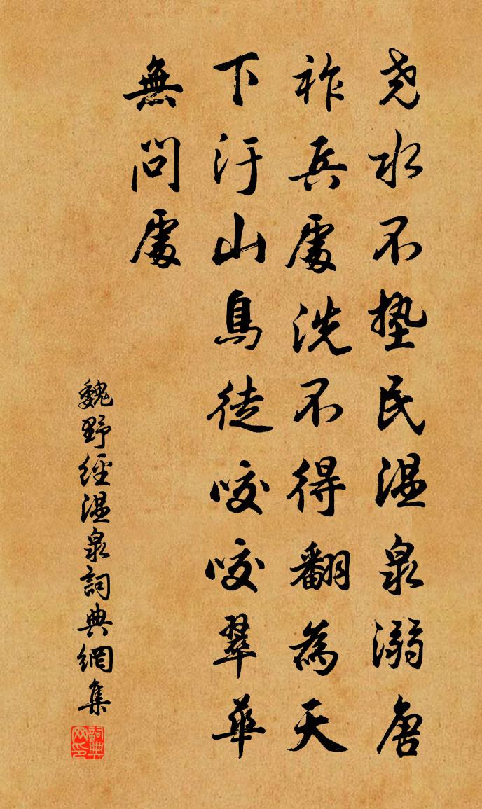 詩詞名句歷史字典書法欣賞書法字典國語詞典說文解字康熙字典古漢語字典標 題 作 者 詩 句 經溫泉作者:魏野 朝代:宋代經溫泉原文堯水不墊民,溫泉溺唐祚。兵處洗不得,翻為天下汙。山鳥徒咬咬,翠華無問處。詩詞問答問:經溫泉的作者是誰?答:魏野問:經溫泉寫於哪個朝代?答:宋代魏野經溫泉書法欣賞經溫泉書法作品詩詞推薦杜鵑杜牧〔唐代〕杜宇竟何冤,年年叫蜀門?至今銜積恨,終古吊殘魂。芳草迷腸結,紅花染血痕。山川盡春色,嗚咽復誰論?歸朝歡(別憶)嚴仁〔宋代〕朱戶綠窗深窈窕。閃閃華旗紅乾小。相逢斜柳絆輕舟,渚香不斷苹花老。西風吹夢草。題詩未了還驚覺。獨傷心,北樓三首宋庠〔宋代〕危檻倚孤城,風襟俗慮醒。天高鴻類扎,雲散日如萍。疊巘斜銜岫,回川曲抱汀。騷愁千古地,椒醑吊遺靈。憶舊遊彭元遜〔宋代〕記新樓試酒,上客回車,初識能歌。幾許憐才意,覺援琴意動,授簡情多。青鸞晝下縹緲,煙霧隔輕羅。還自有人霜天曉角(和中齋九日)劉辰翁〔宋代〕騎台千騎。有菊知何世。想見登高無處,淮以北、是平地。老來無復味。老來無復淚。多謝白衣迢遞,吾病矣、不宴周皓大夫光福宅 座上作。白居易〔唐代〕何處風光最可憐?妓堂階下砌台前。軒車擁路光照地,絲管入門聲沸天。綠蕙不香饒桂酒,紅櫻無色讓花鈿。野人清平樂·淒淒切切納蘭性德〔清代〕淒淒切切,慘澹黃花節。夢裡砧聲渾未歇,那更亂蛩悲咽。塵生燕子空樓,拋殘弦索床頭。一樣曉風殘月,而今觸旅興(二首)劉基〔明代〕其 一寒燈耿幽暮,蟲鳴清夜闌。起行望青天,明月在雲端。美人隔千里,山河淼漫漫。玄雲翳崇岡,白露雕芳蘭送強甫赴惠安六言十首劉克莊〔宋代〕村叟昔嘗為宰,溪民今未忘吾。汝父德薄勿效,前有子野易□。奉使自藍田玉山南行張九齡〔唐代〕征驂入雲壑,始憶步金門。通籍微軀幸,歸途明主恩。匪唯徇行役,兼得慰晨昏。是節暑雲熾,紛吾心所尊。海縣游武擔山袁說友〔宋代〕叟邪歌漫遏行雲,抔土千年幾晝曛。石鑒可磨人不見,東西台下淚泉聞。過平輿懷李子先時在并州黃庭堅〔宋代〕前日幽人佐吏曹,我行堤草認青袍。心隨汝水春波動,興與並門夜月高。世上豈無千里馬,人中難得九方臯。酒船小兒入城陸游〔宋代〕小兒破帽出求師,老父寒爐夜畫詩。不耐青燈寫孤影,聊呼薄酒慰長飢。我今僅守詩書業,汝勿輕捐少壯時。但恨夏四月渴雨恐害布種代鄉鄰作插秧歌陸游〔宋代〕浸種二月初,插秧四月中,小舟載秧把,往來疾於鴻。吳鹽雪花白,村酒粥面濃,長歌相贈答,宛轉含豳風。日暮錢使君知原生辰陳棣〔宋代〕天眷中興瑞玉麟,果聞崧岳為生申。逢迎聖主千年運,領略東君五日春。濟世豐功銘鼎鼐,傳家清德冠簪紳。仙風鄰人自金仙觀移竹李遠〔唐代〕移居新竹已堪看,劚破莓苔得幾竿。圓節不教傷粉籜,低枝猶擬拂霜壇。牆頭枝動如煙綠,枕上風來送夜寒。第一題西林壁蘇軾〔宋代〕橫看成嶺側成峰,遠近高低各不同。不識廬山真面目,只緣身在此山中。次韻感懷程公許〔宋代〕綠水油油記插秧,轉頭風露稻花香。秋來田井熙春書,畫手難為顧長康。自笑汪元量〔宋代〕釋氏掀天官府,道家隨世功名。俗子執鞭亦貴,書生無用分明。題清頭陀白居易〔唐代〕頭陀獨宿寺西峰,百尺禪庵半夜鍾。煙月蒼蒼風瑟瑟,更無雜樹對山松。名句推薦同聲則異而相應,意合則未見而相親戴聖《大戴禮記·保傅第四十八》 白日麗飛甍,參差皆可見。謝朓《晚登三山還望京邑》 坑灰未冷山東亂,劉項原來不讀書。章碣《焚書坑》 采采黃金花,何由滿衣袖。杜甫《九日寄岑參》 桐葉晨飄蛩夜語。旅思秋光,黯黯長安路。陸游《蝶戀花·桐葉晨飄蛩夜語》 君問歸期未有期,巴山夜雨漲秋池。李商隱《夜雨寄北》 鳥啼官路靜,花發毀垣空。張繼《清明日自西午橋至瓜岩村有懷》 風起,雪飛炎海變清涼。蘇軾《定風波·南海歸贈王定國侍人寓娘》 忽見陌頭楊柳色,悔教夫婿覓封侯。王昌齡《閨怨》 四寸之管無當,必不滿也。授官、予爵、出祿不以功,是無當也。商鞅《商君書·靳令》